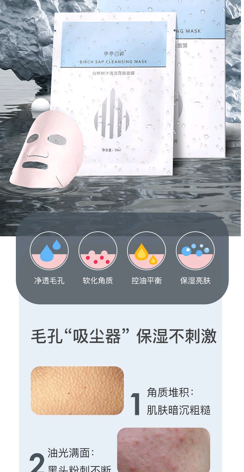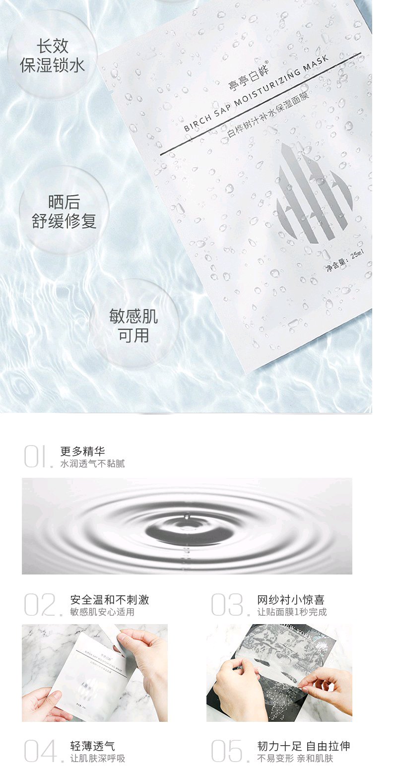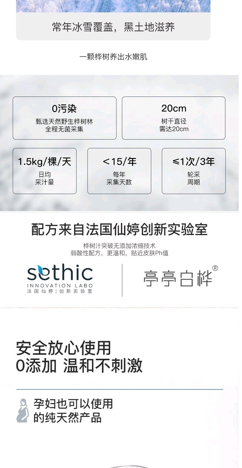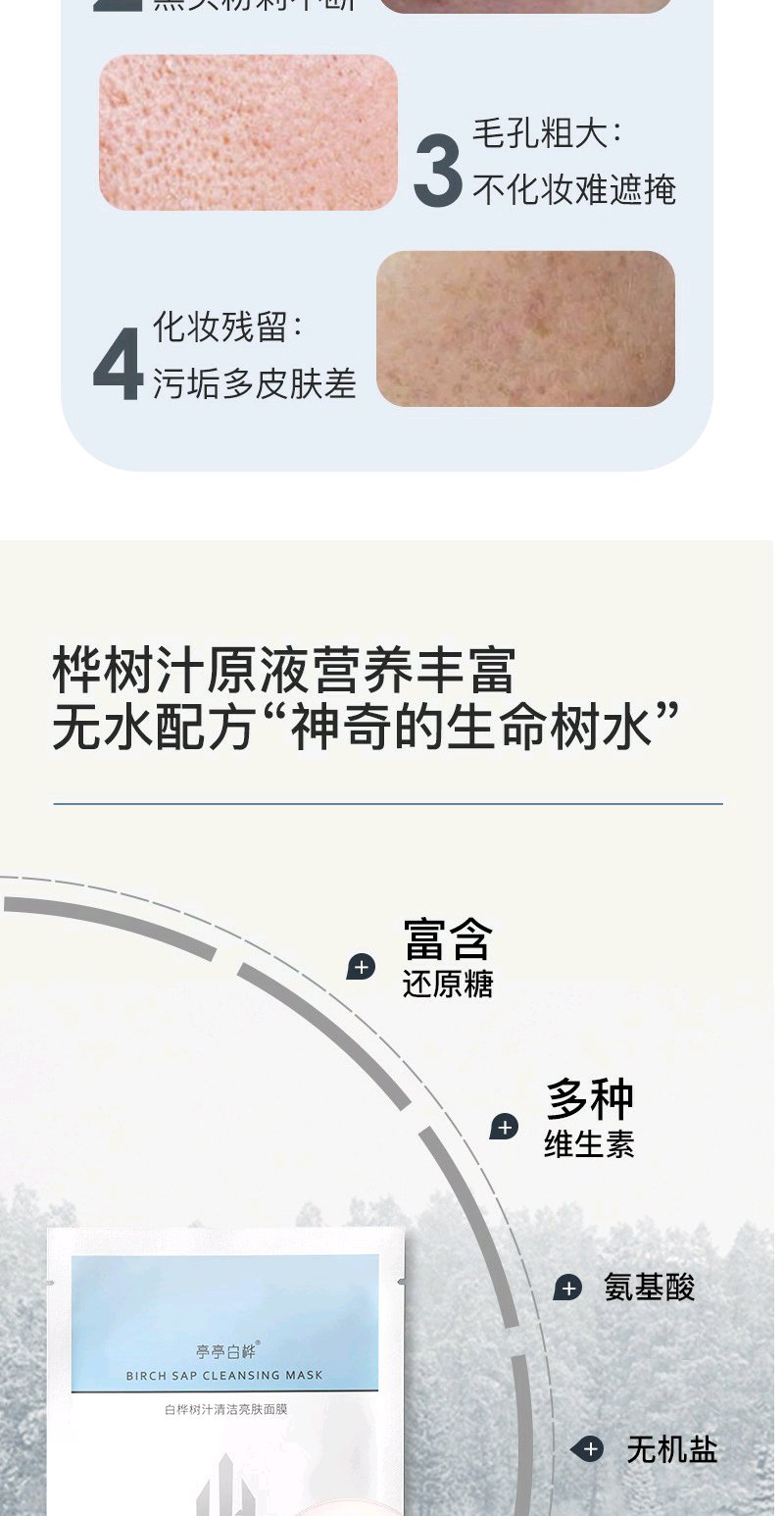【不含水的面膜】亭亭白桦天然桦树汁原液面膜补水面膜*2+清洁面膜*1补水清洁组合装补水修护