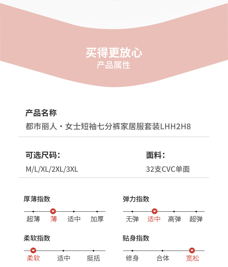 都市丽人女士棉质短袖套装薄32支CVC单面会员精选短袖类LHH2H8