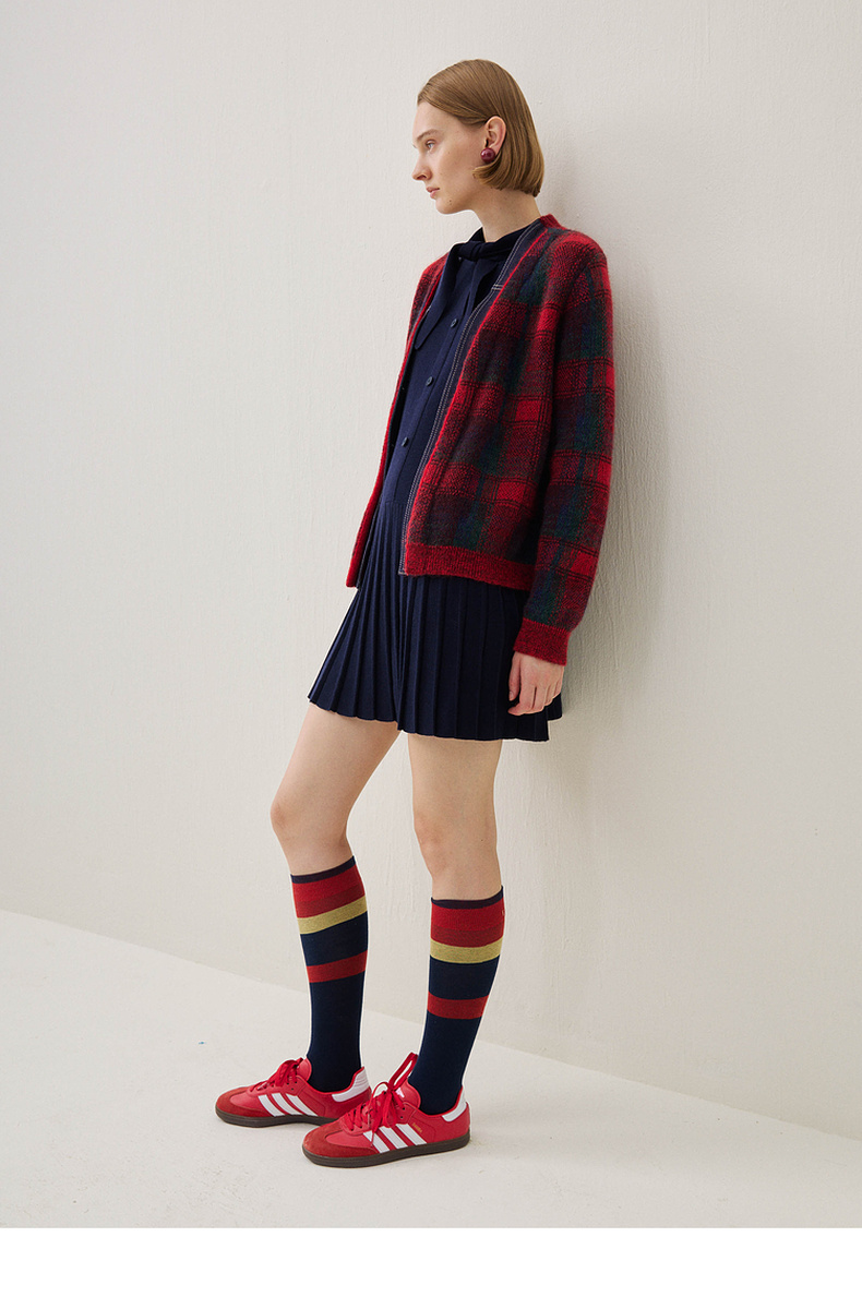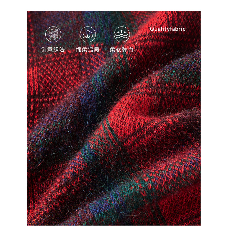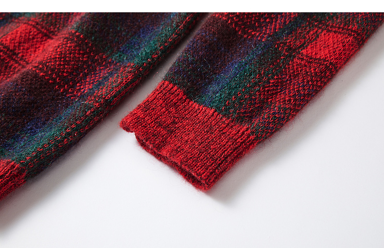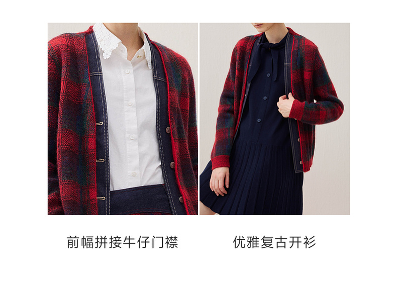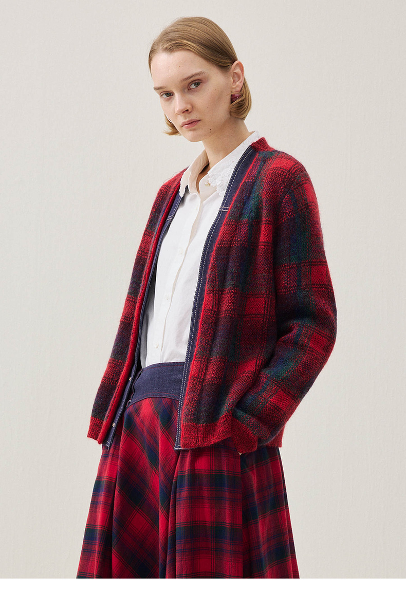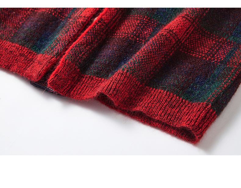 谜底针织开衫长袖2025冬季新品时髦百搭红黑格子毛衫女254MZ1861