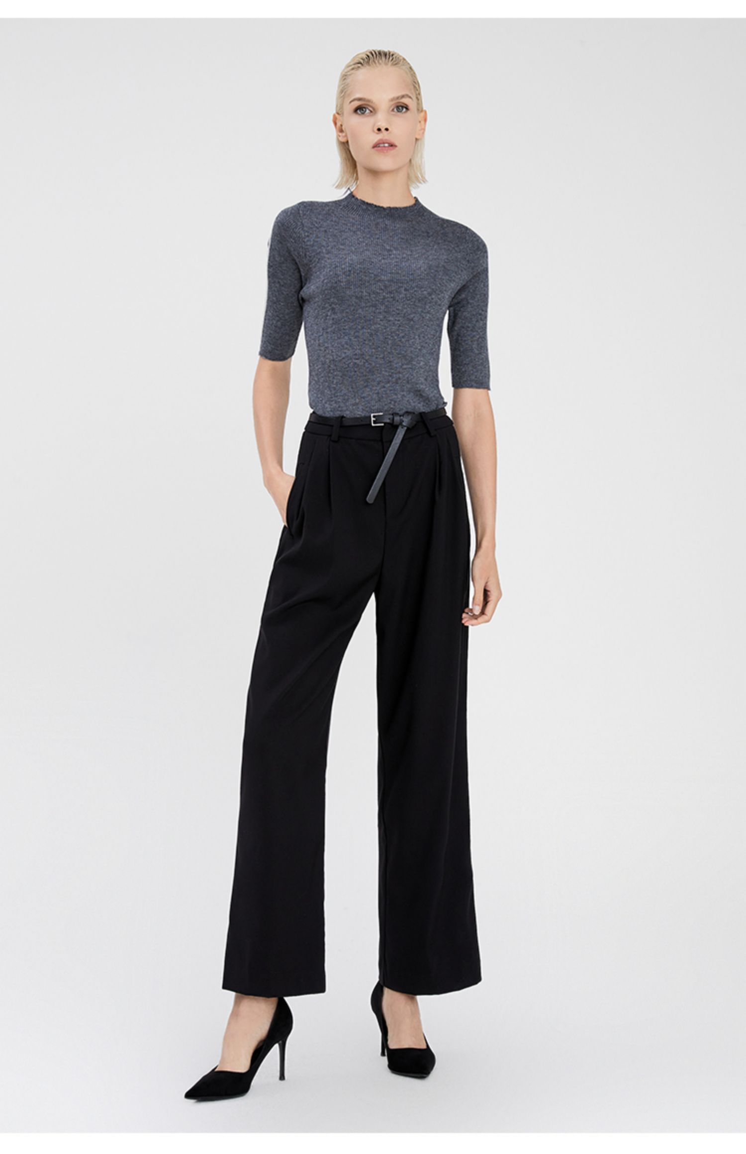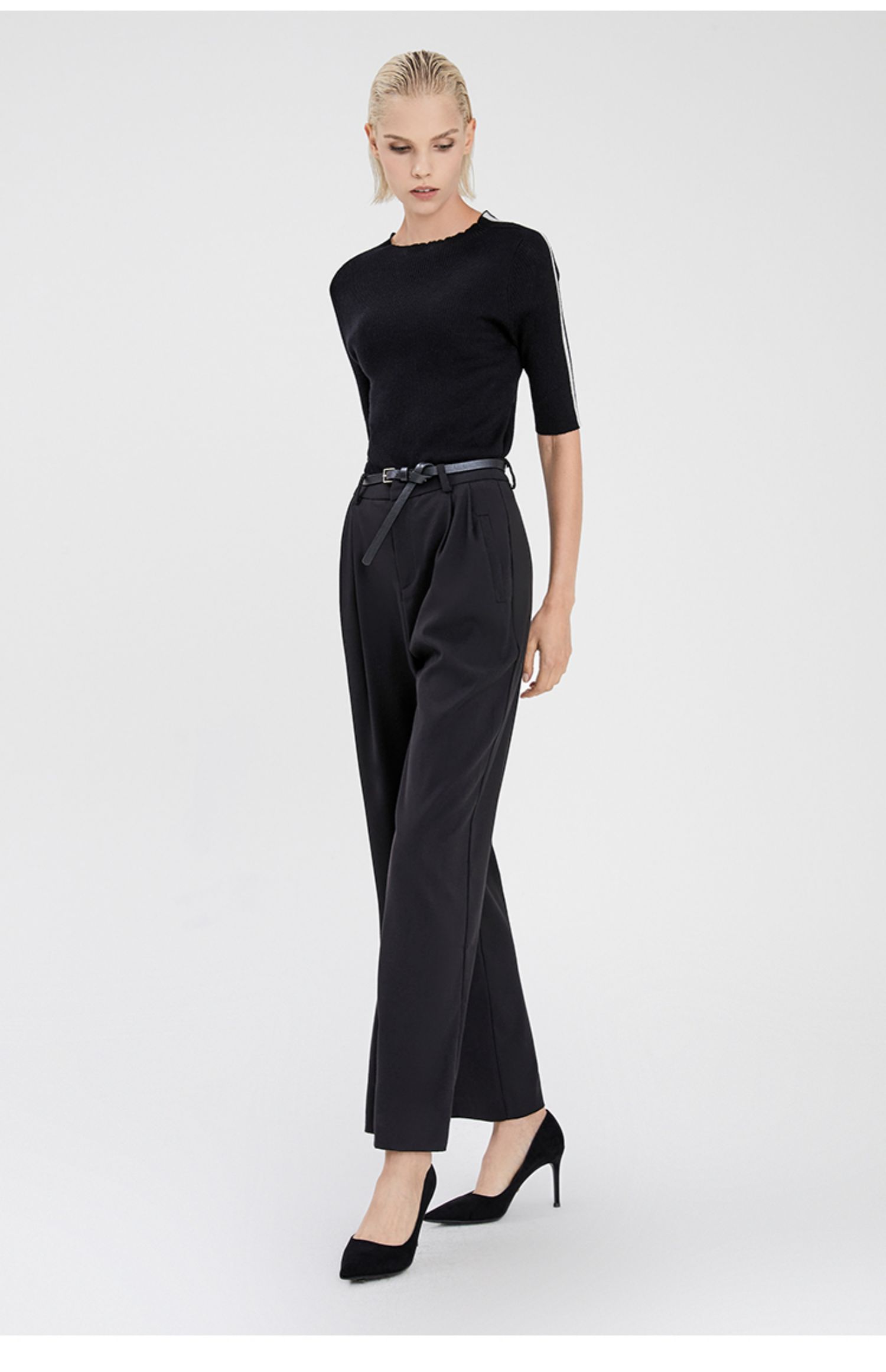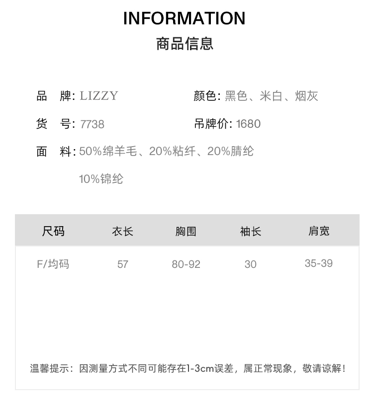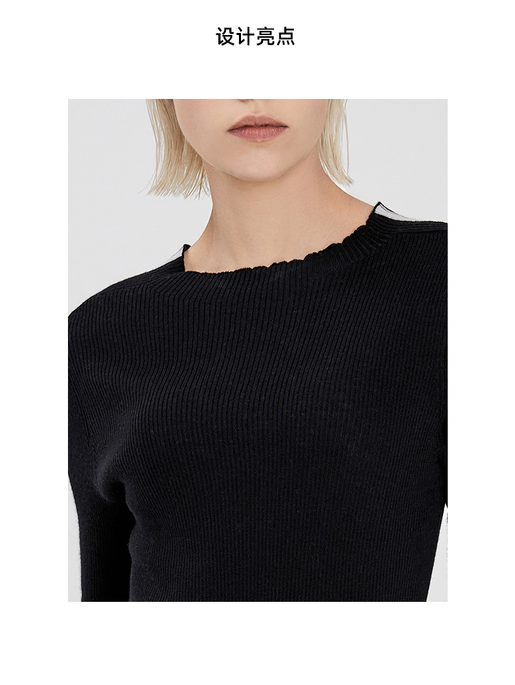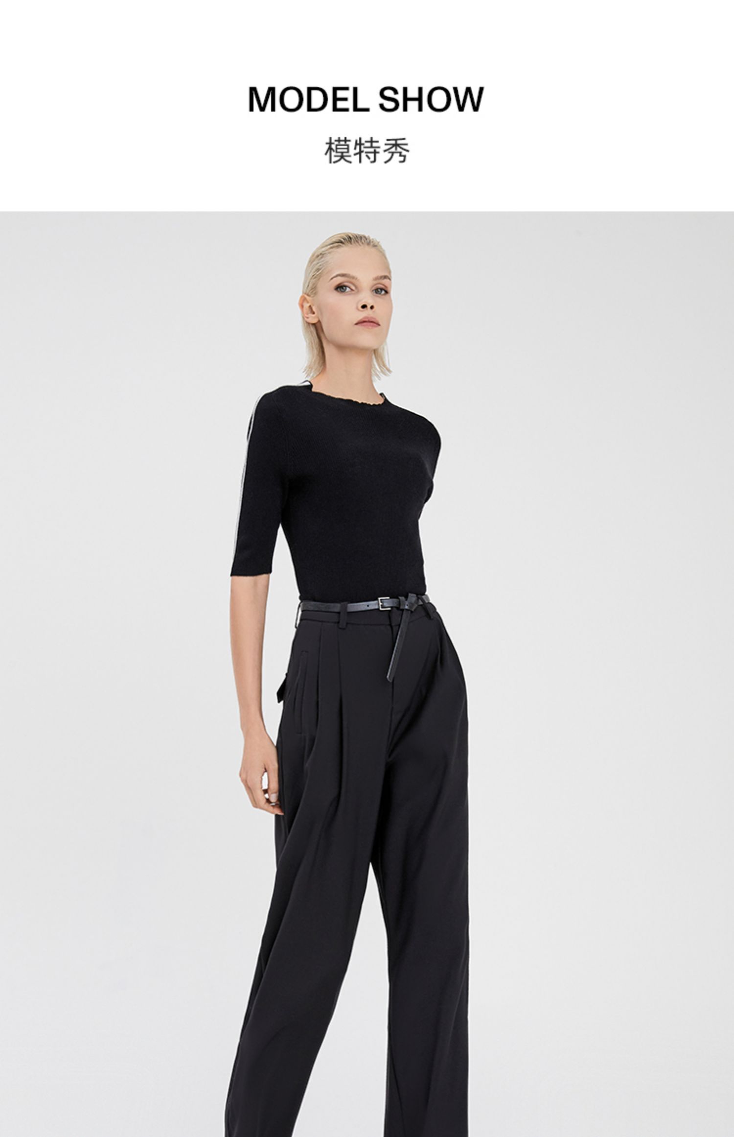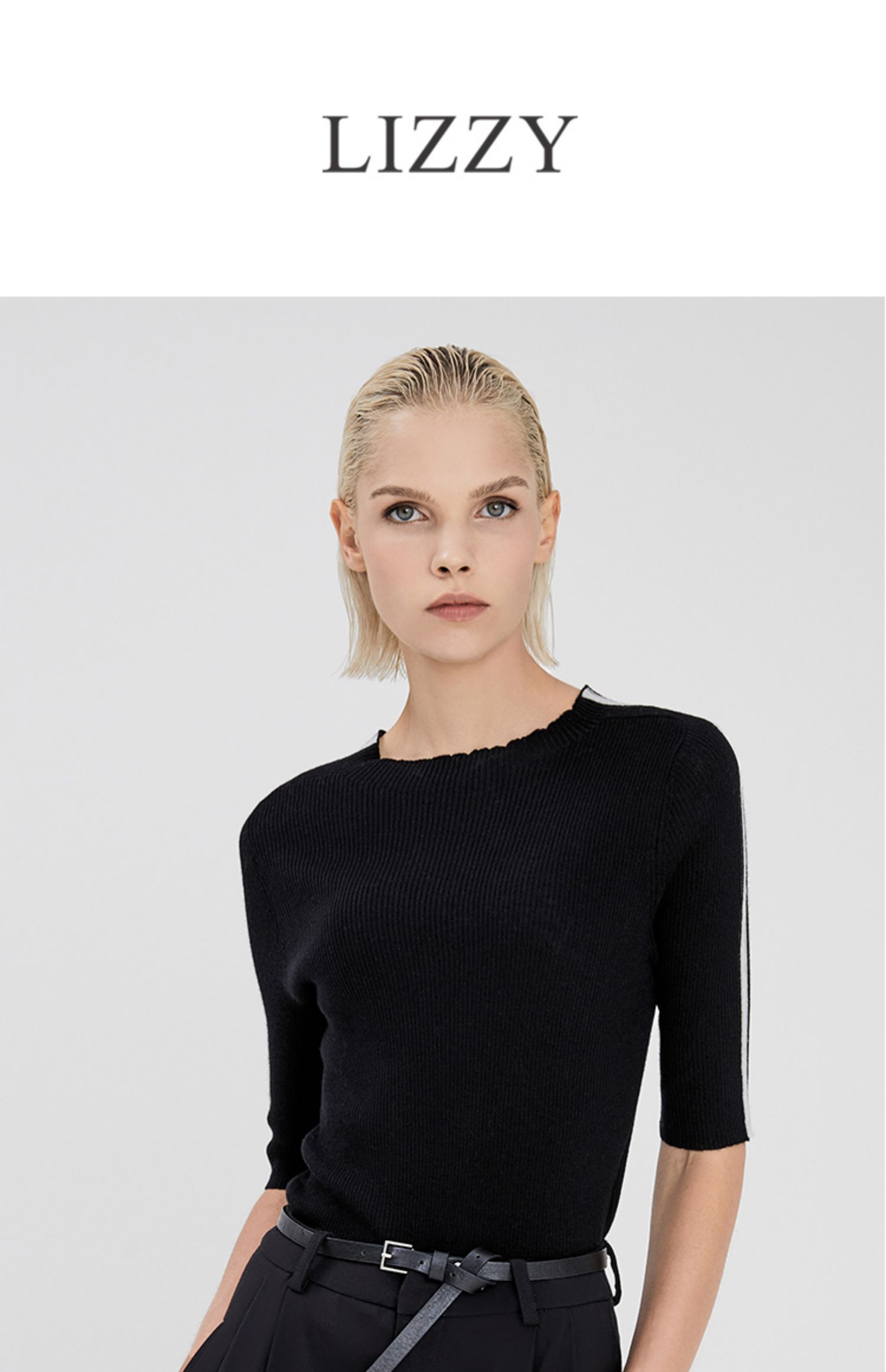 LIZZY早秋圆领五分袖修身打底针织衫套头短款毛衣女7738