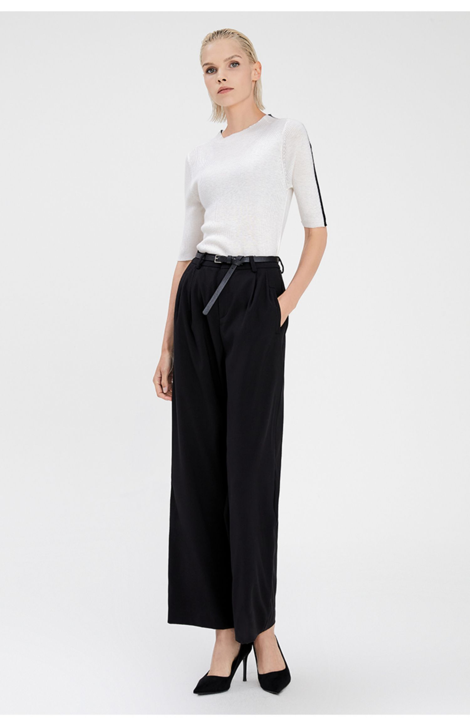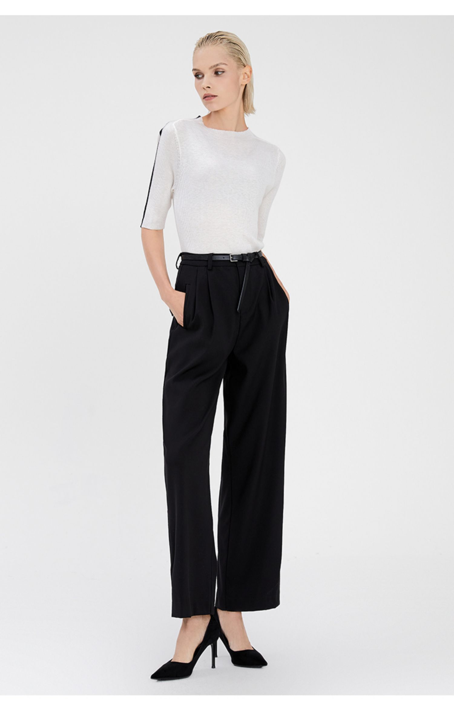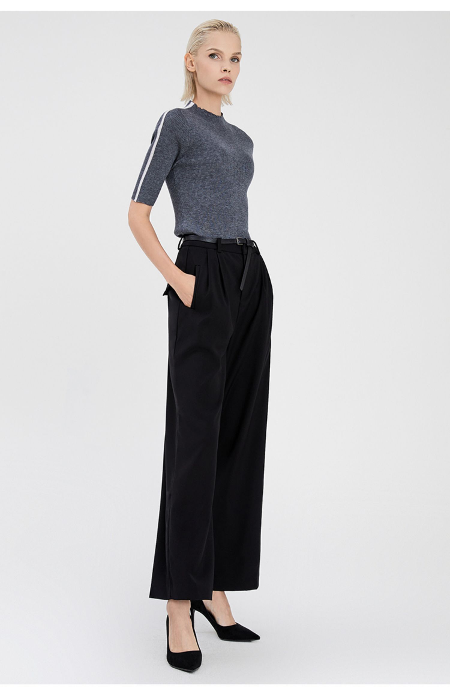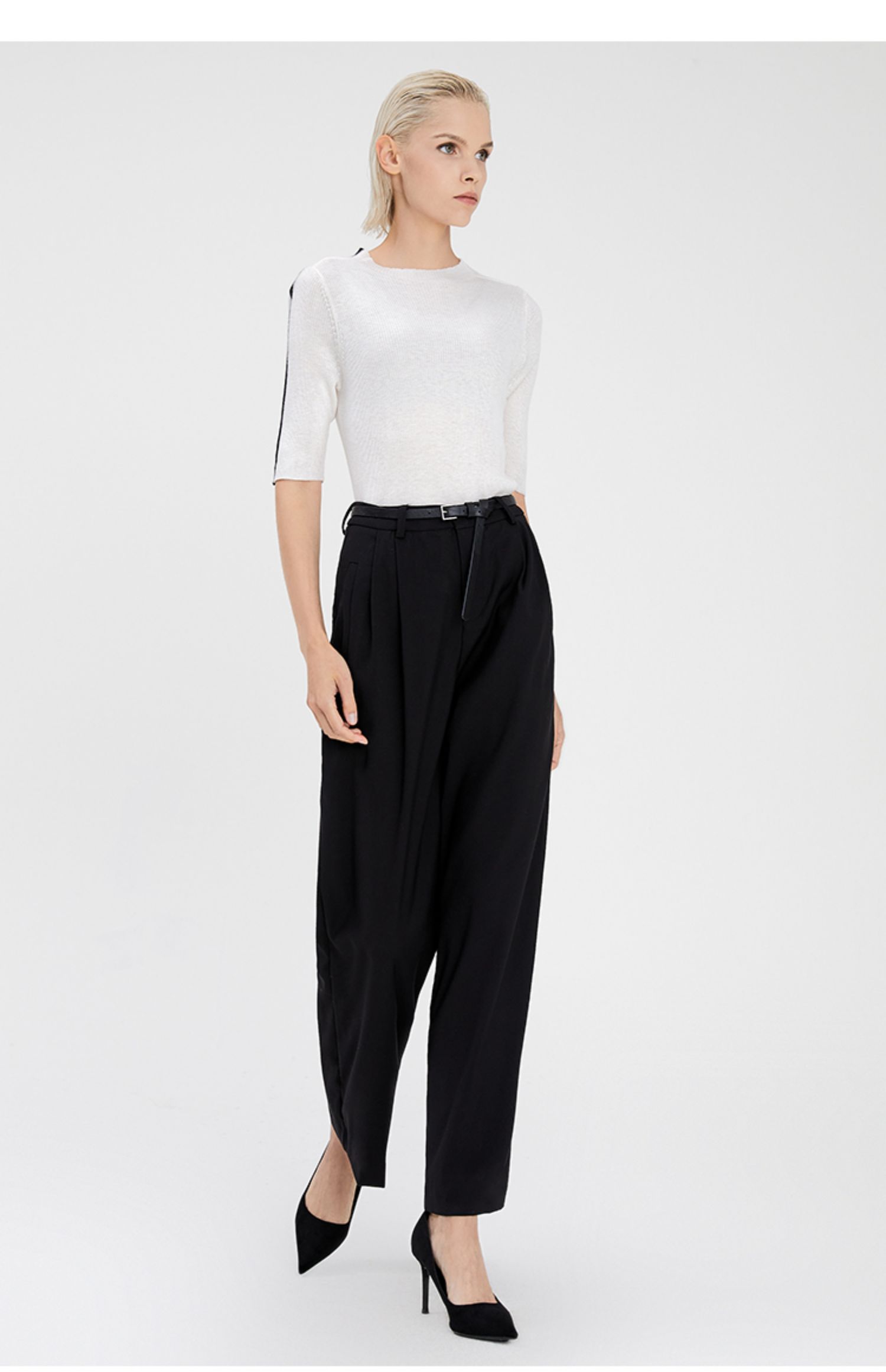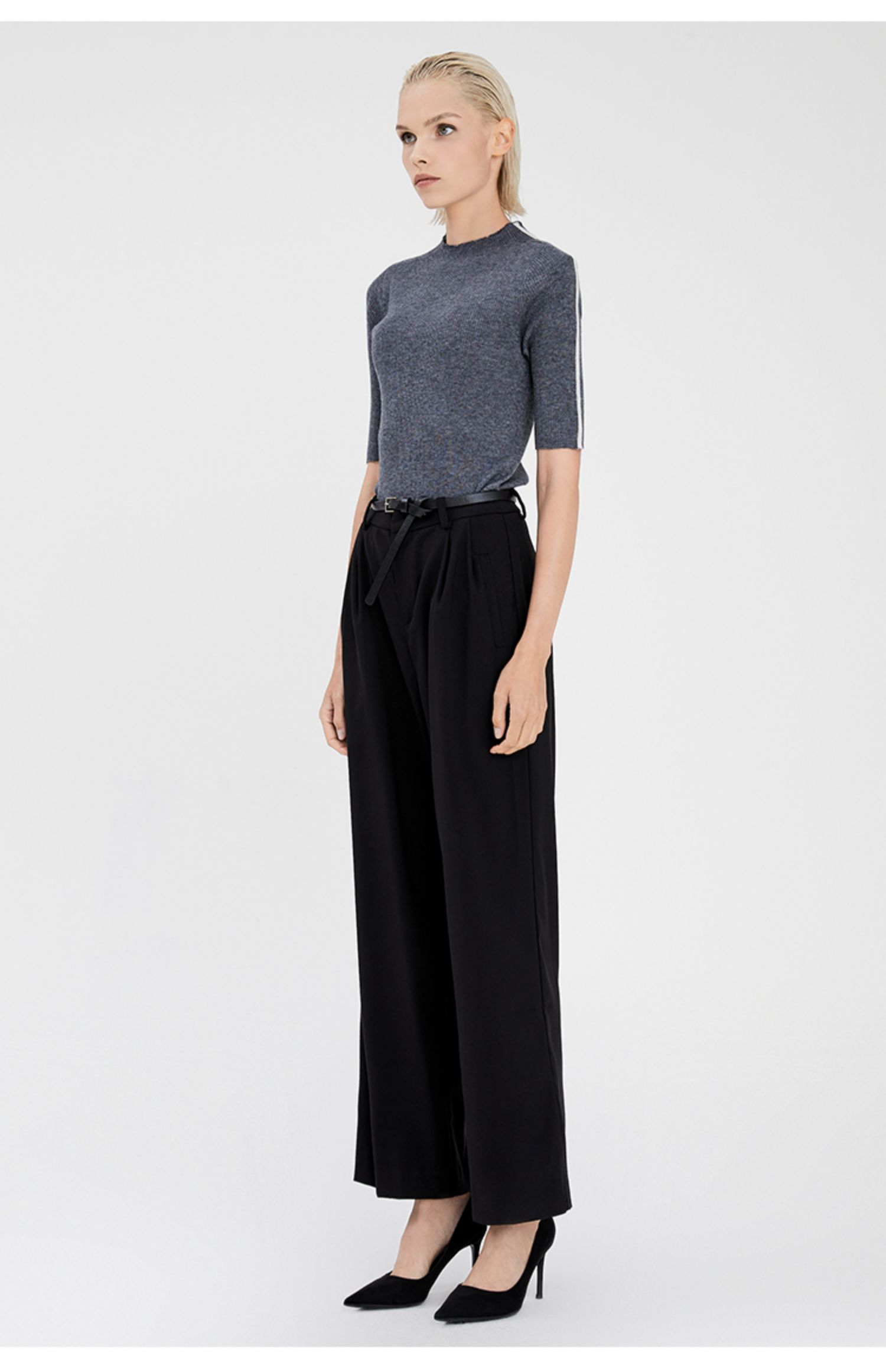 LIZZY早秋圆领五分袖修身打底针织衫套头短款毛衣女7738