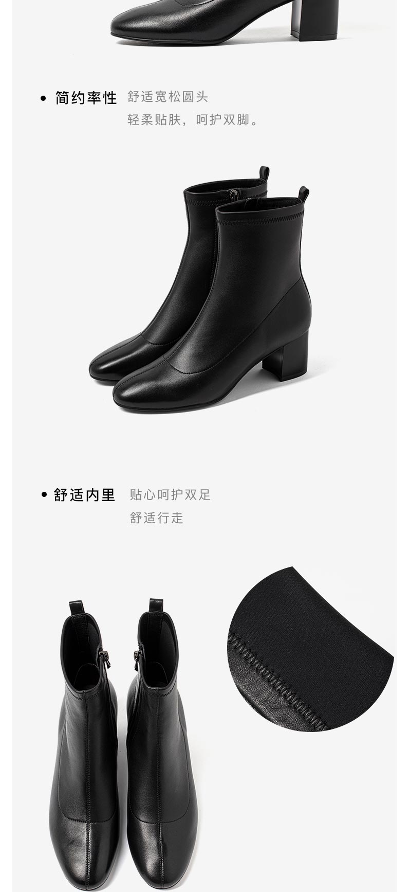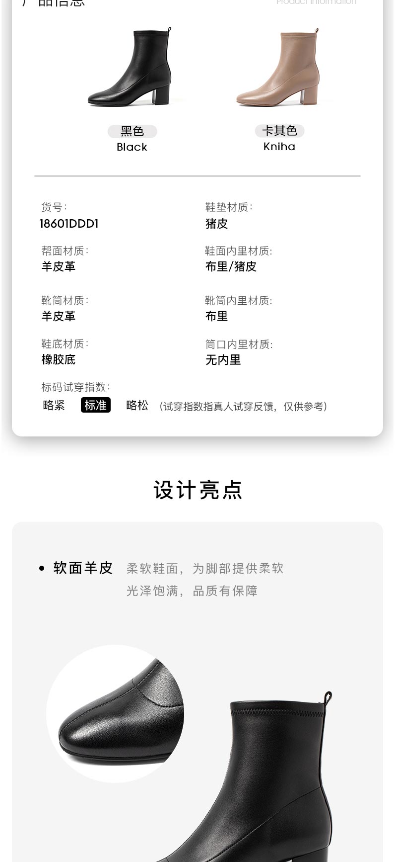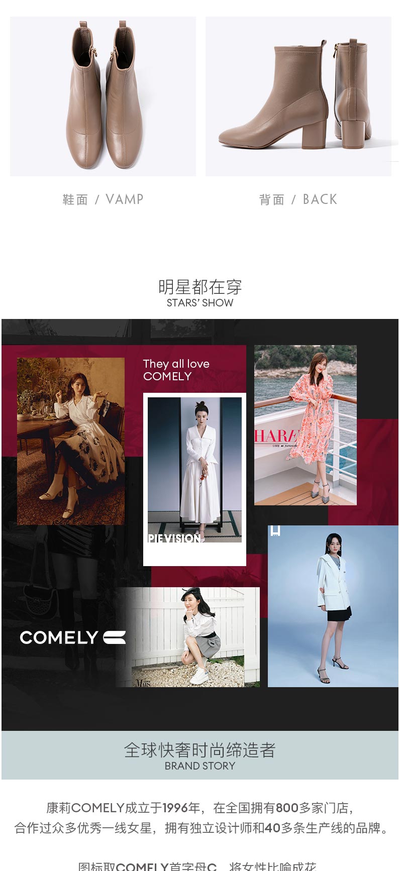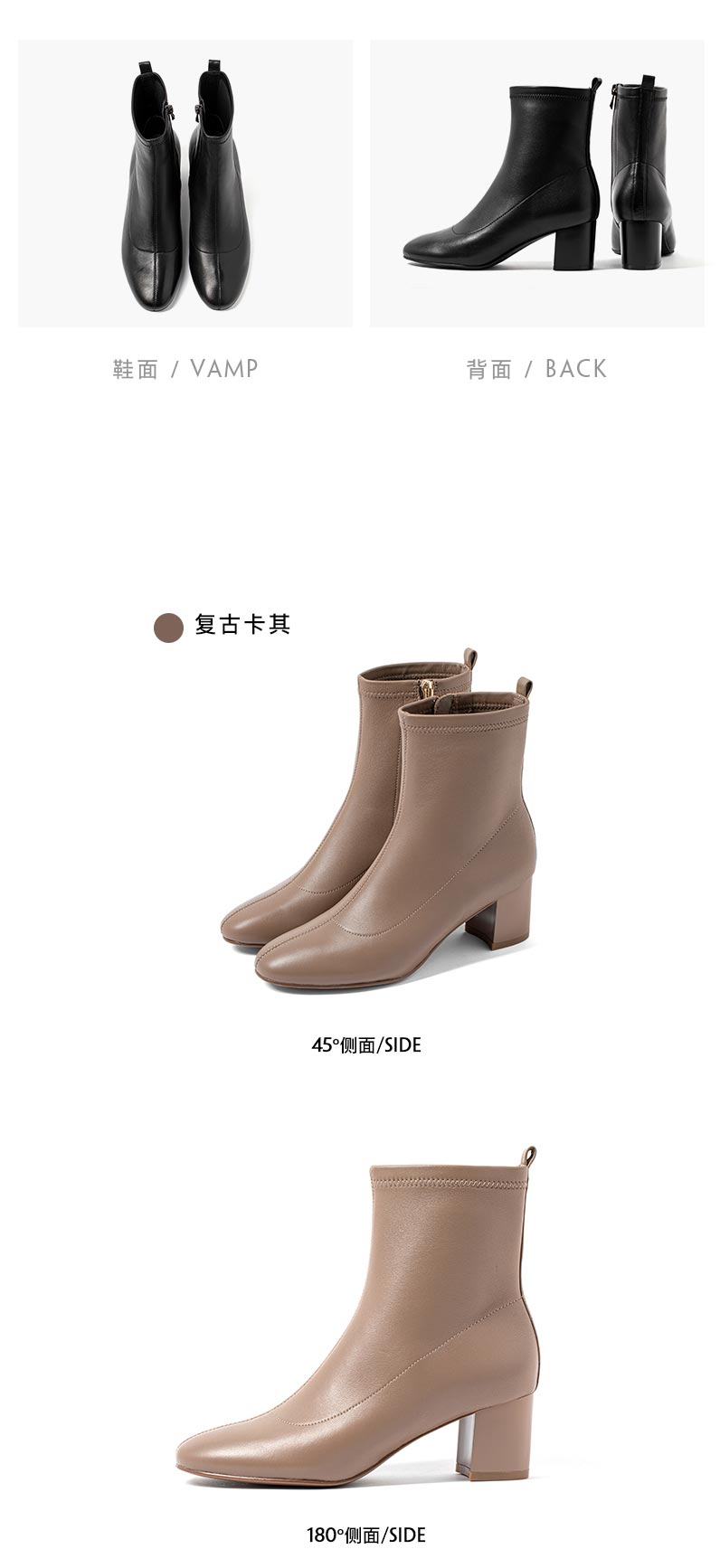 康莉时装靴女 2021年冬季新款软羊皮复古圆头高跟短靴KYQ18601DU01DD1