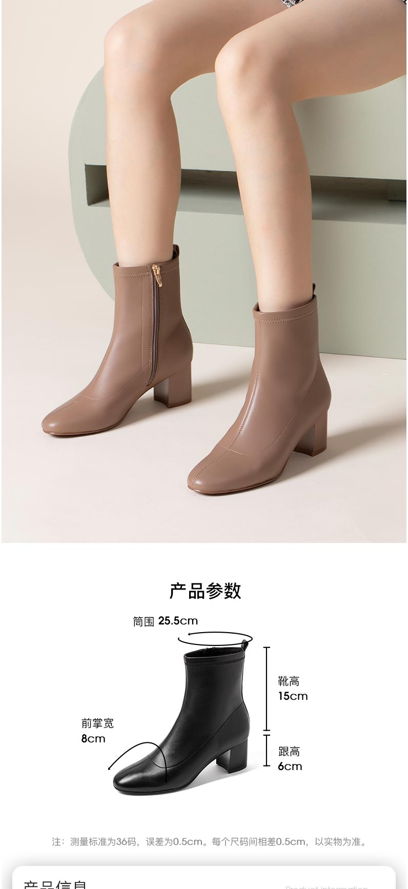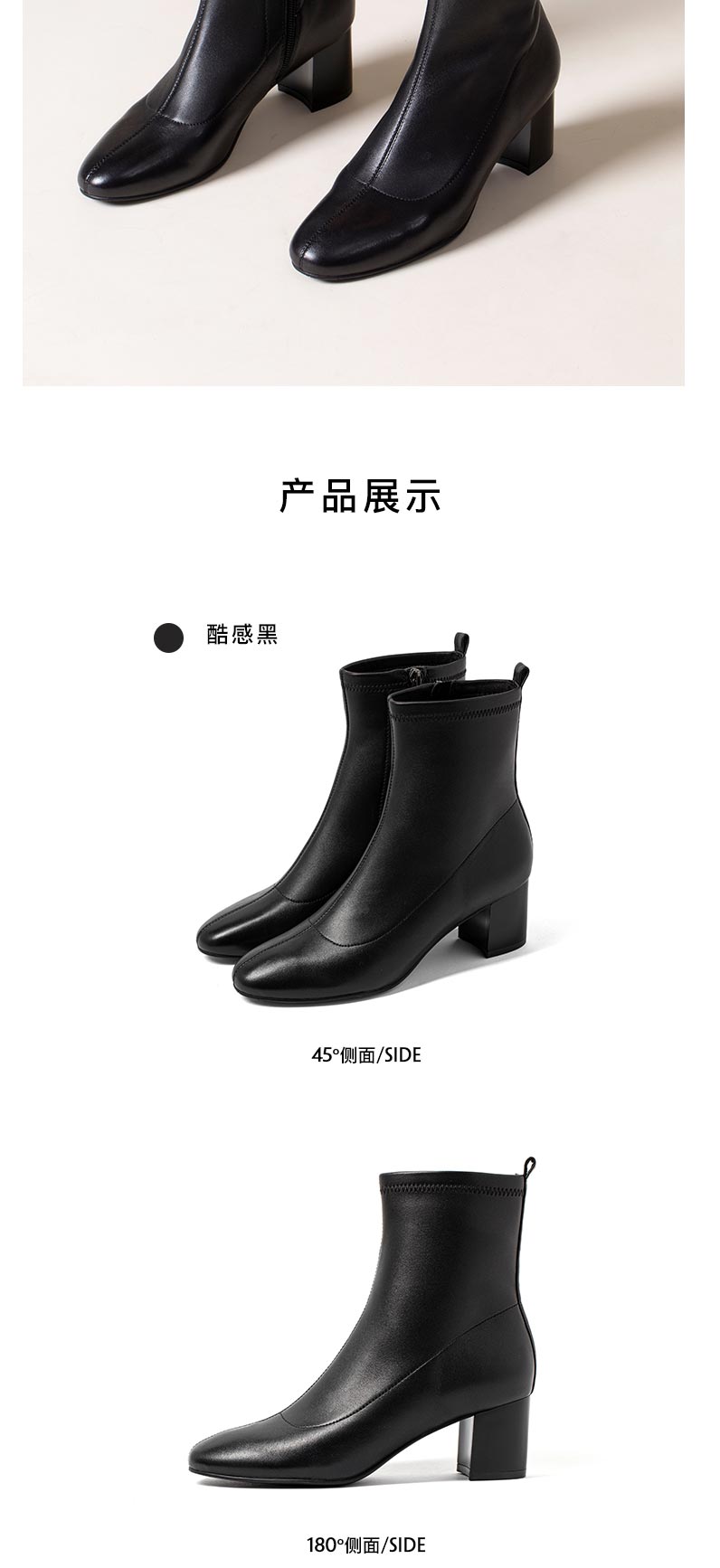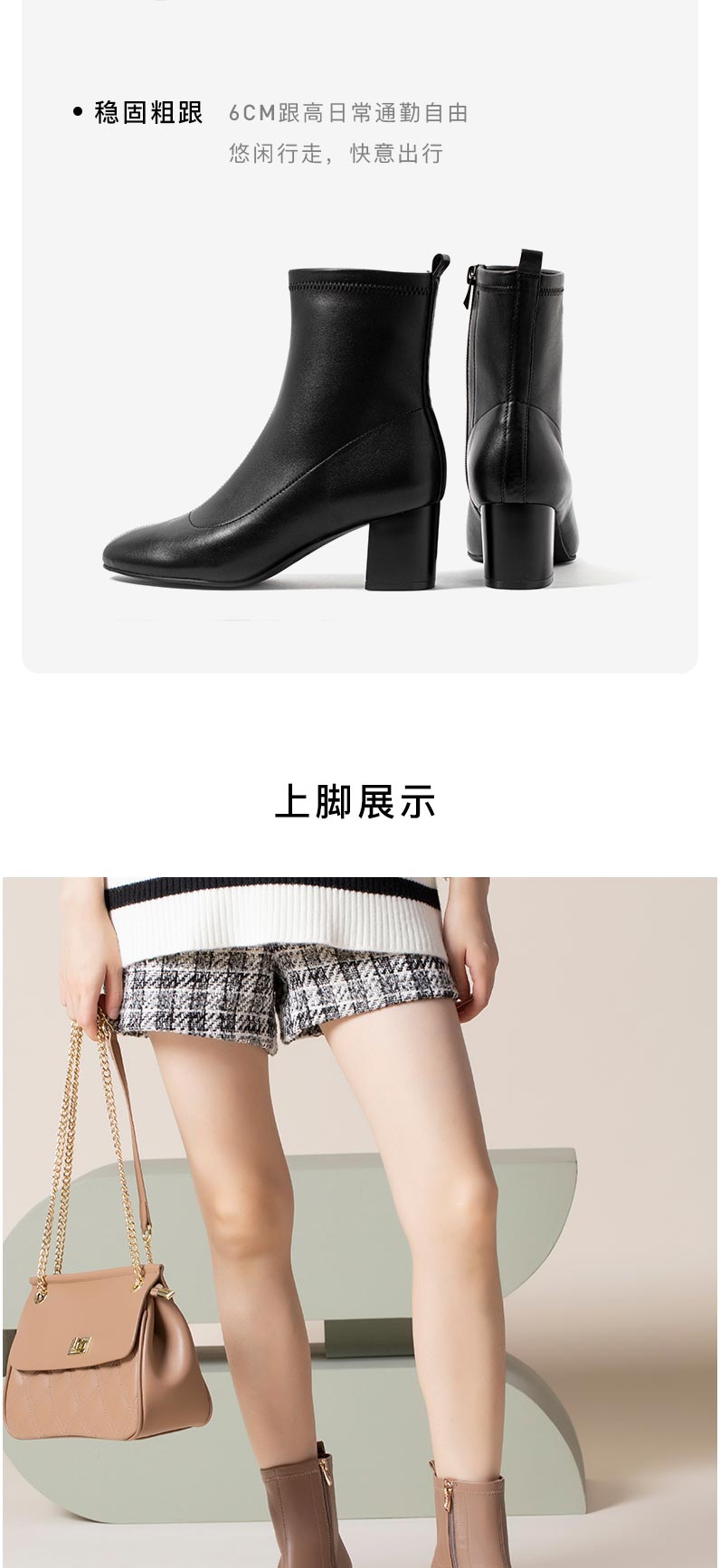 康莉时装靴女 2021年冬季新款软羊皮复古圆头高跟短靴KYQ18601DU01DD1