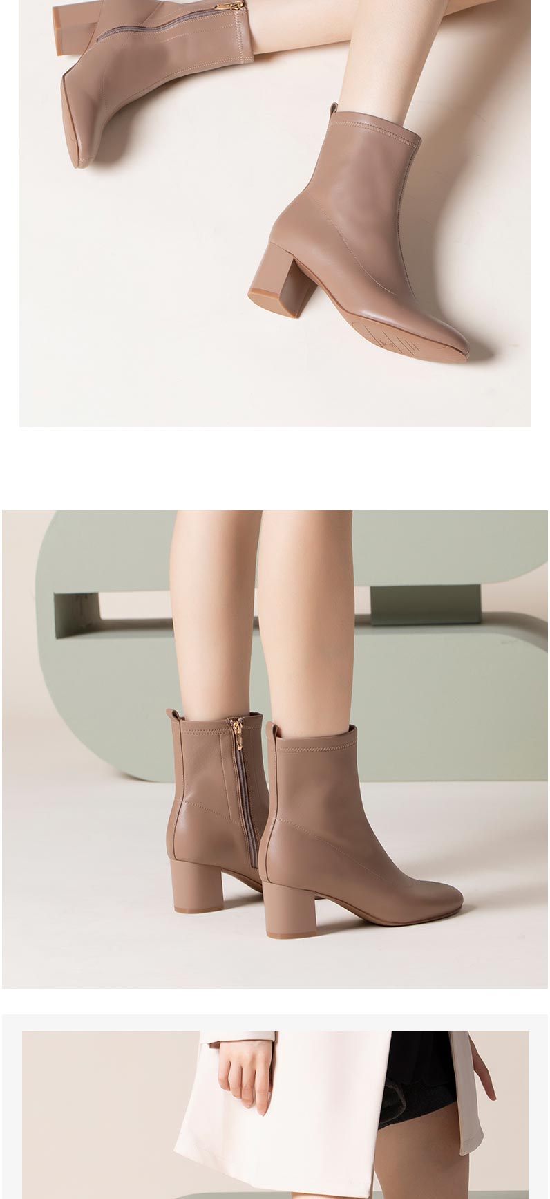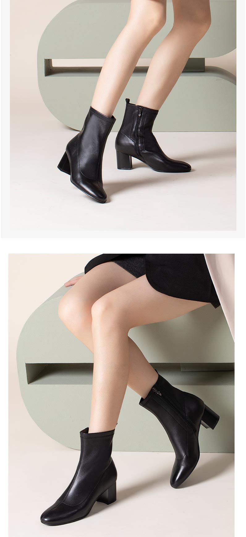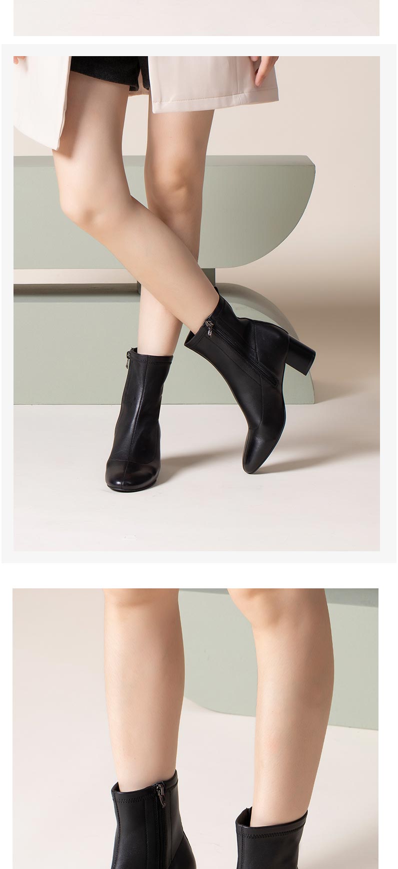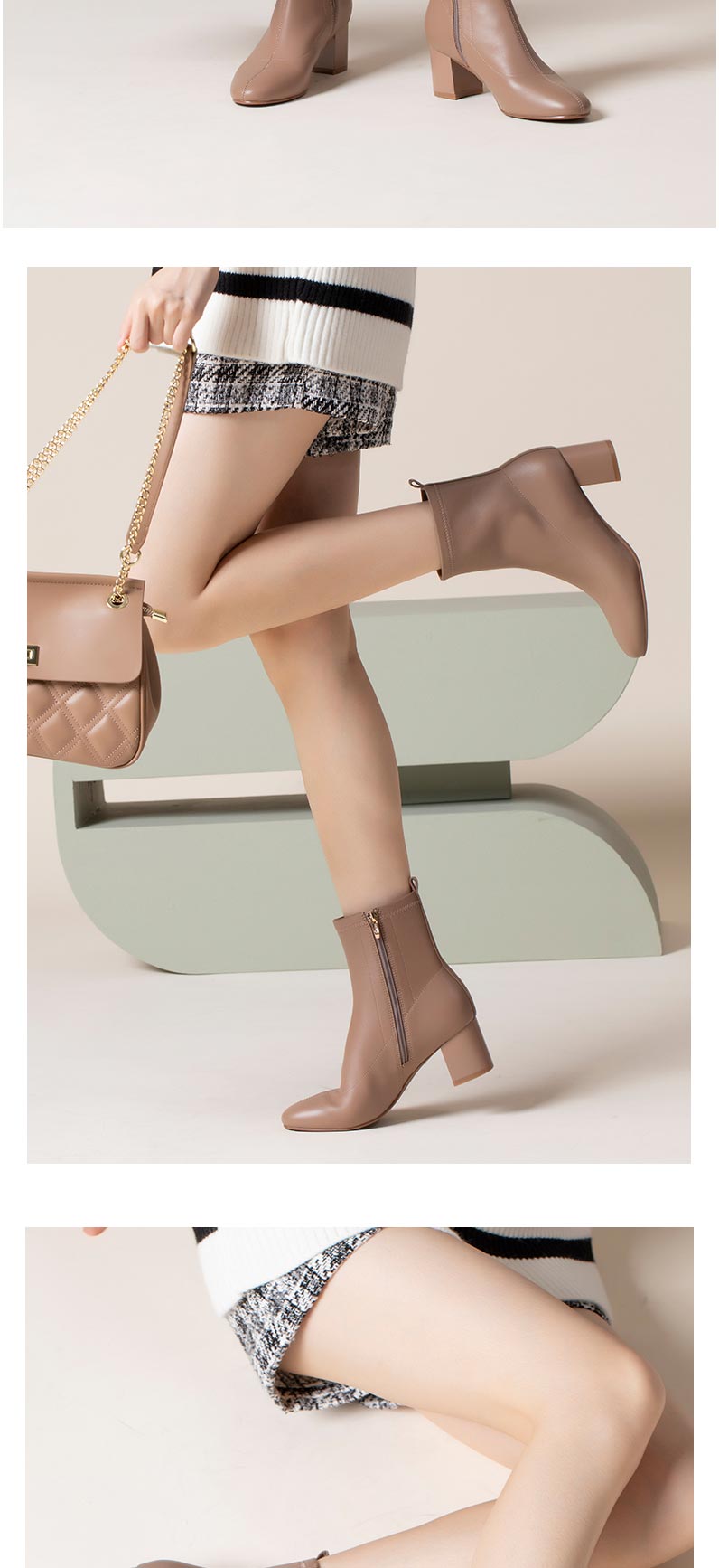 康莉时装靴女 2021年冬季新款软羊皮复古圆头高跟短靴KYQ18601DU01DD1