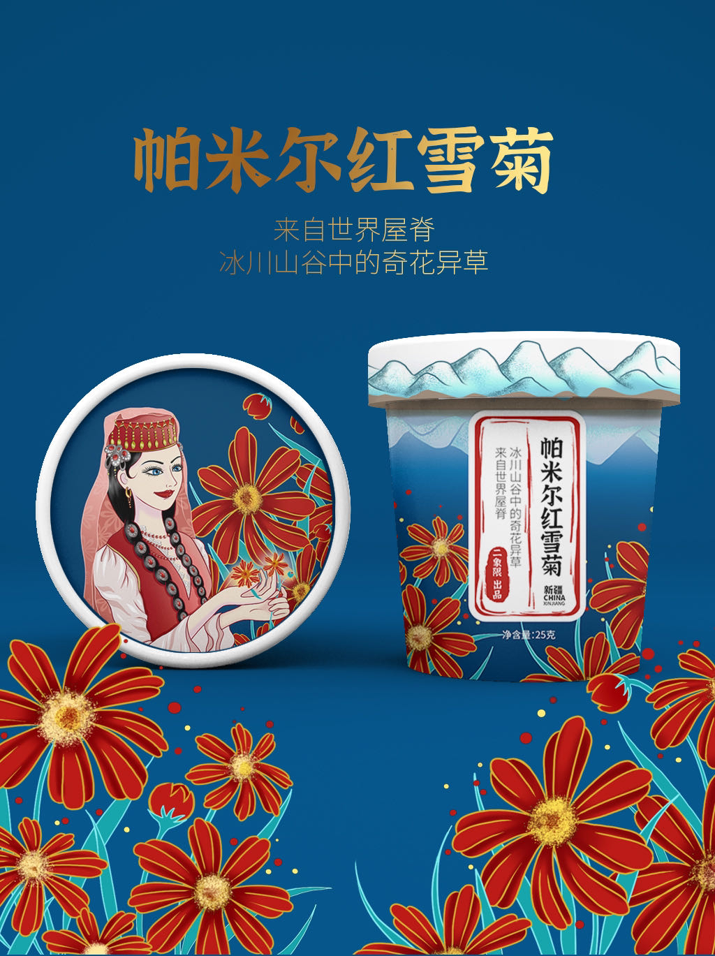 ❺特殊属性:由于红雪菊生长于寒风冷冽,超强紫外线的帕米尔高原,导致其花叶极其娇嫩薄弱,晾干以后,稍加外力碰触,叶易掉花叶,品控系数之难,实属罕见。所以,从世界屋脊帕米尔高原运输下来,再进行分装和罐装,难免掉落花叶,自然属性如此,大家悉知。