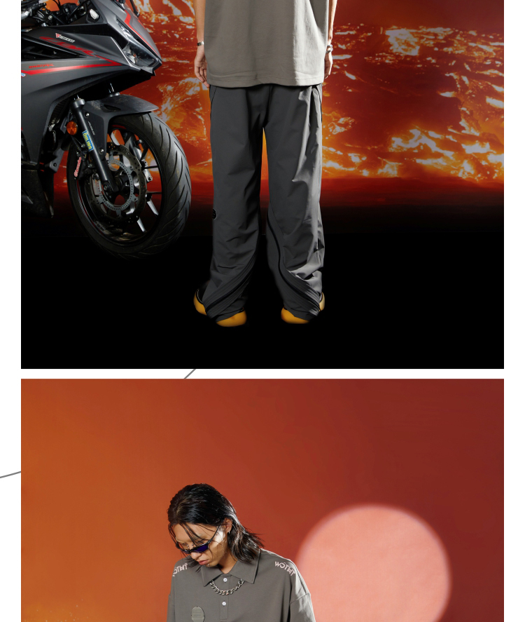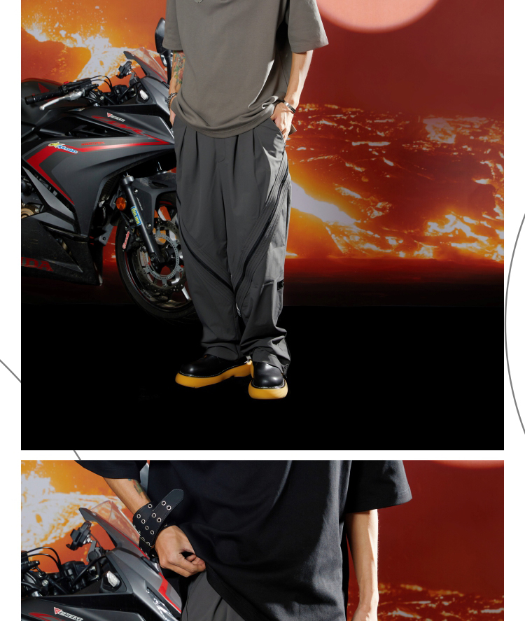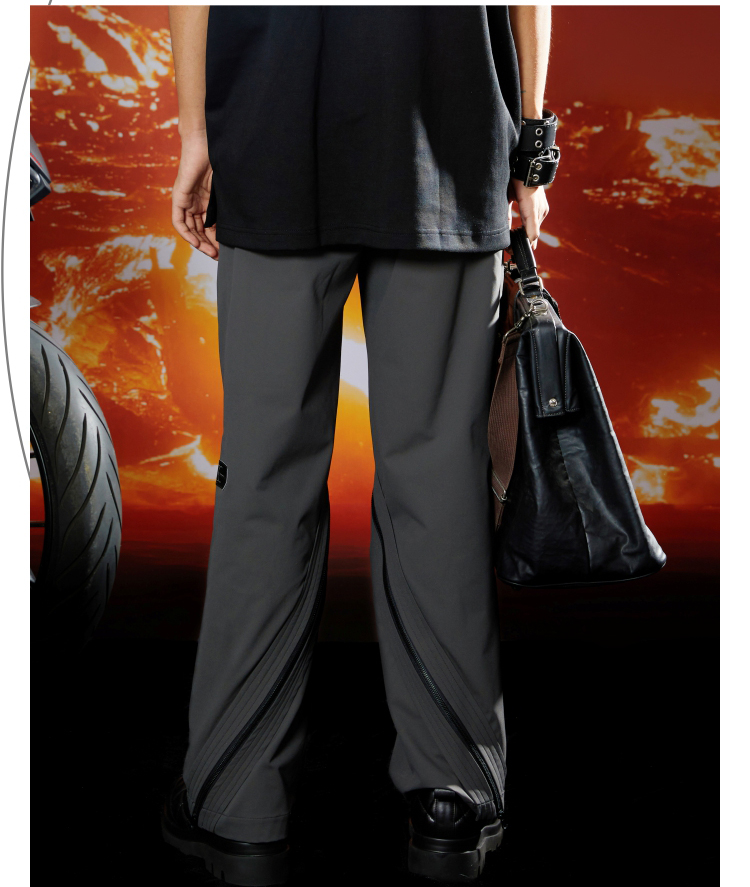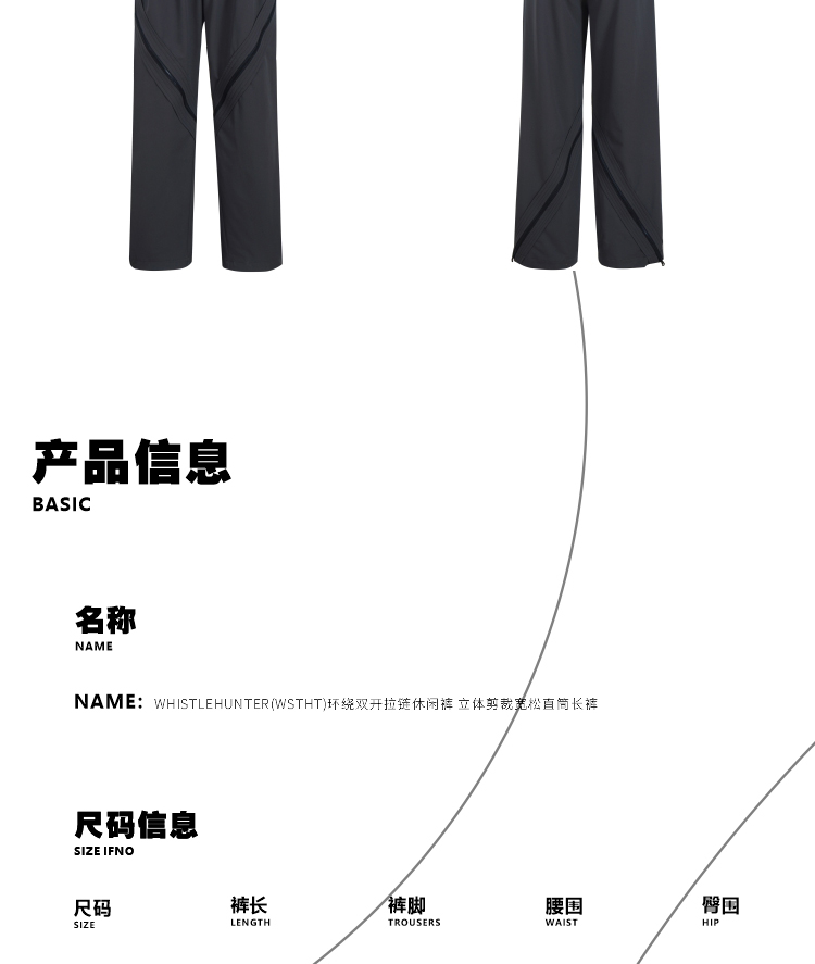WHISTLEHUNTER(WSTHT)环绕双开拉链休闲裤 立体剪裁宽松直筒长裤