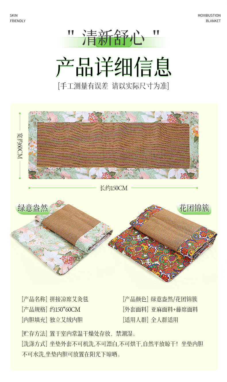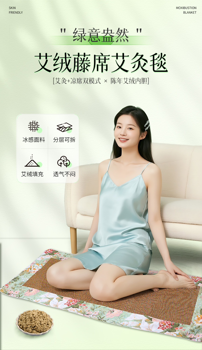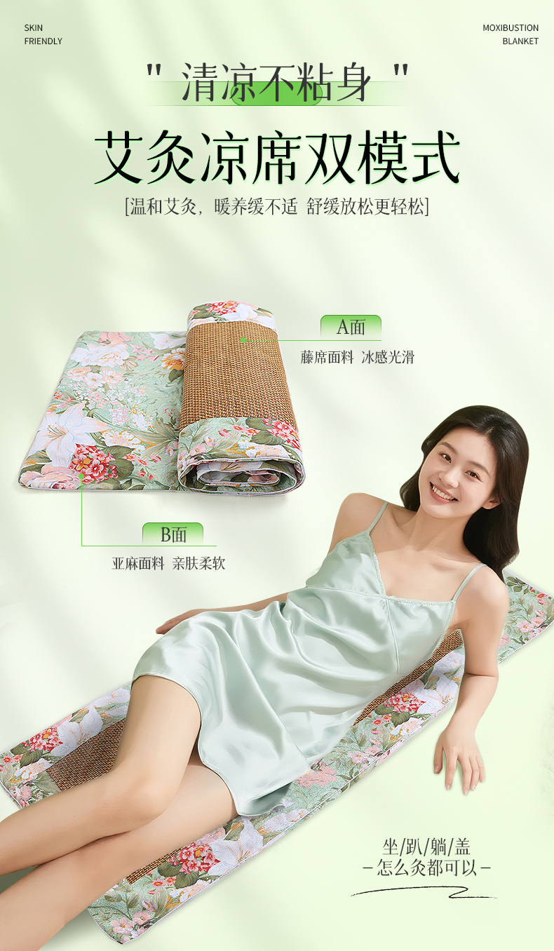 艾草凉席垫凉席艾灸毯家用全身灸艾绒垫透气舒适