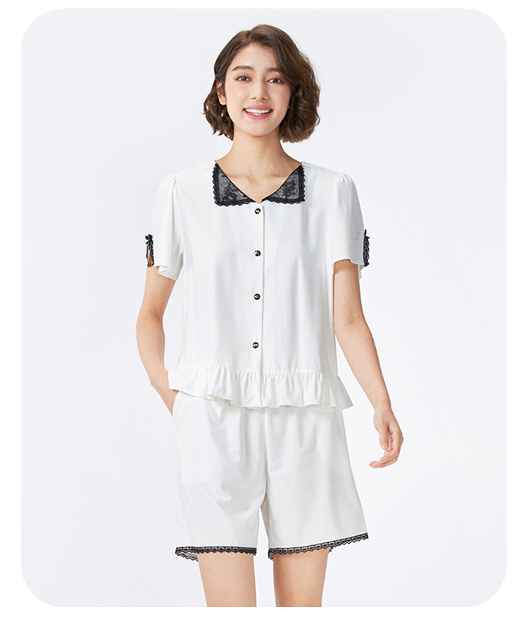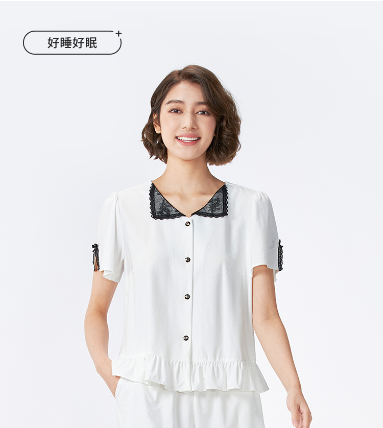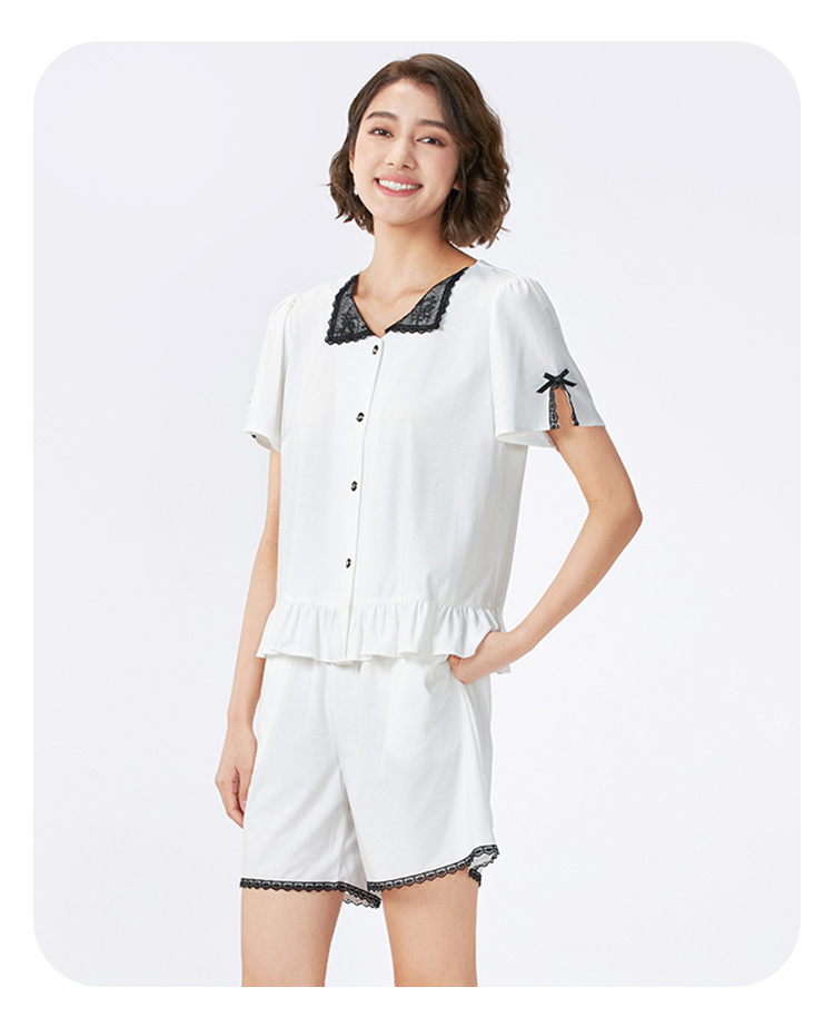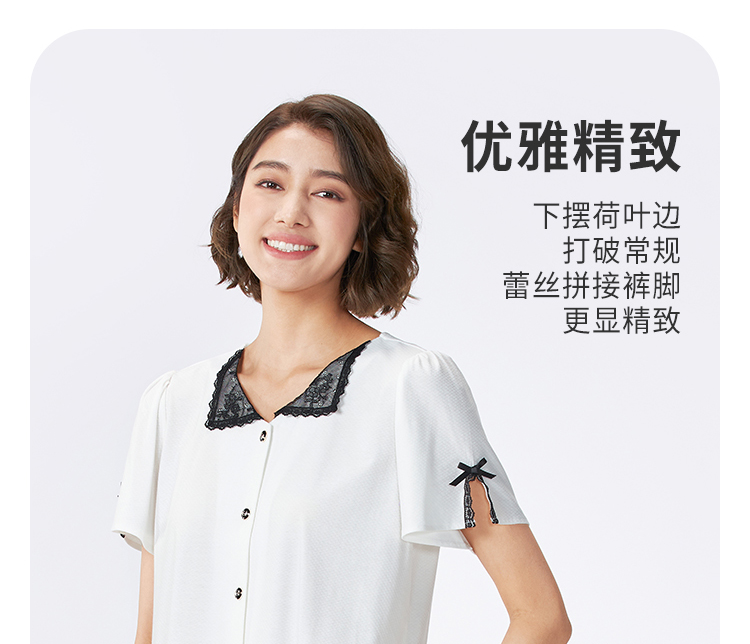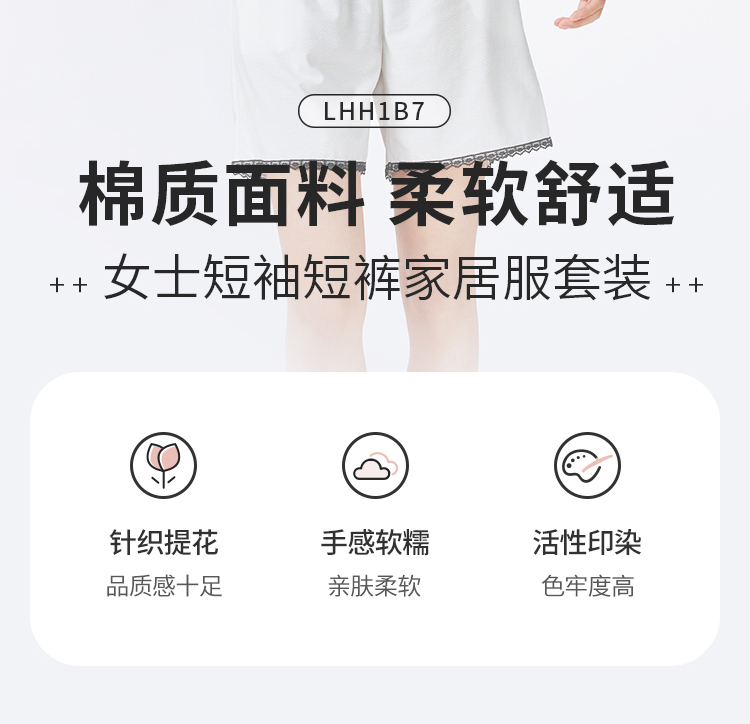 都市丽人女士正价棉质短袖套装薄针织提花好睡好眠短袖类LHH1B7