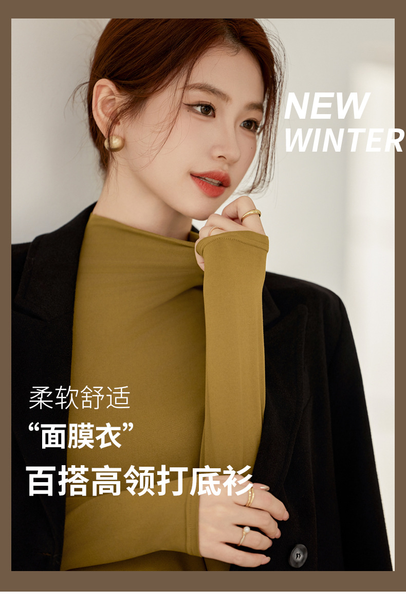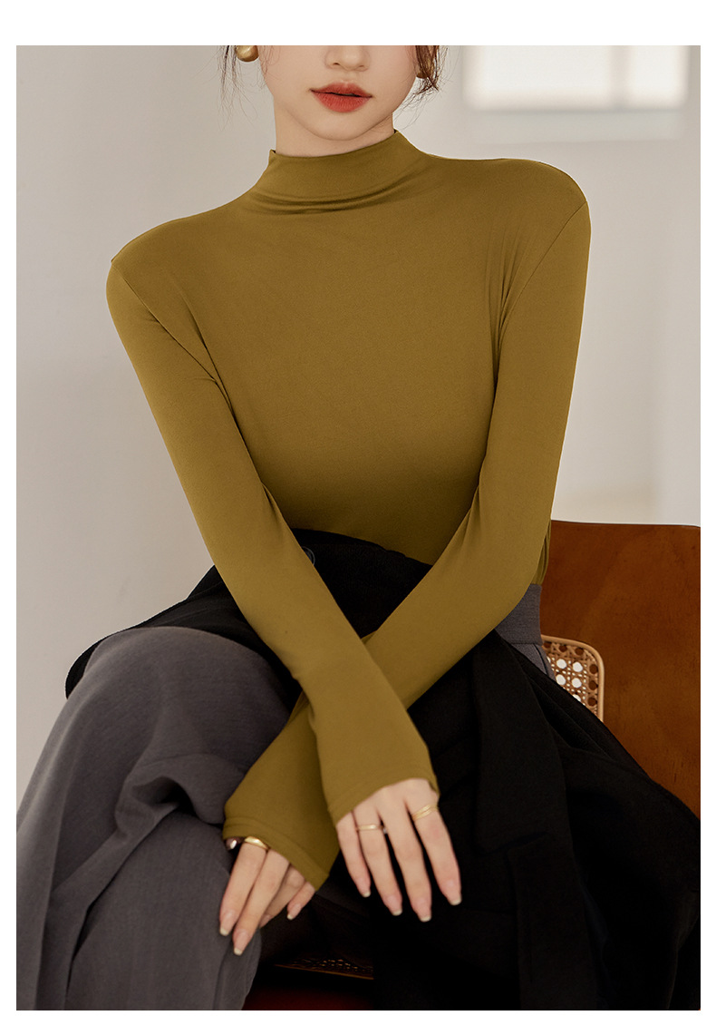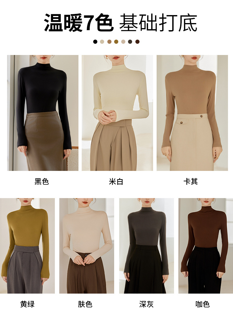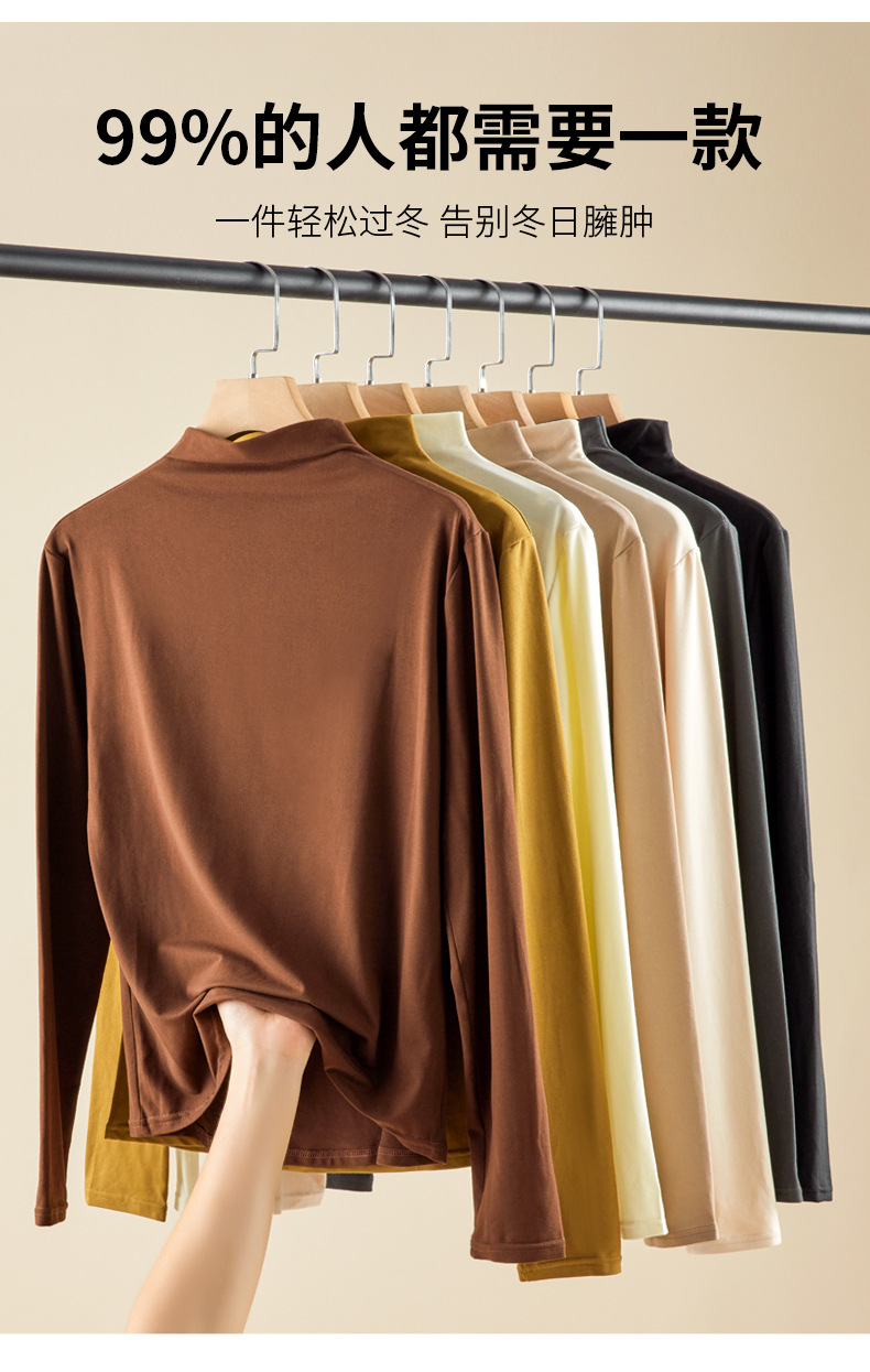买一送一任选2件半高领打底衫女长袖秋冬新款立领纯色内搭T恤打底秋衣上衣女T桖衫