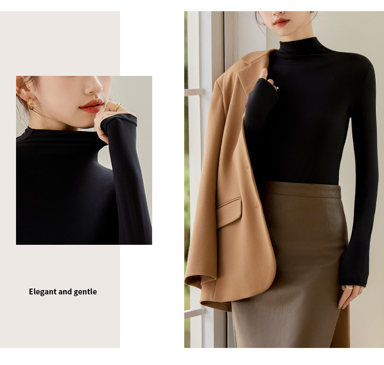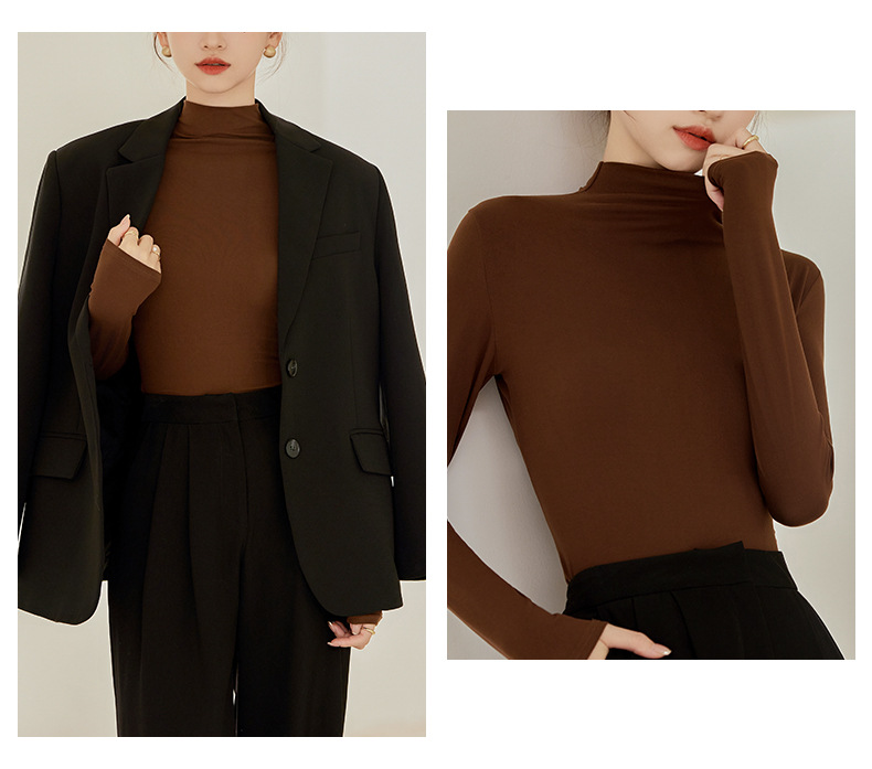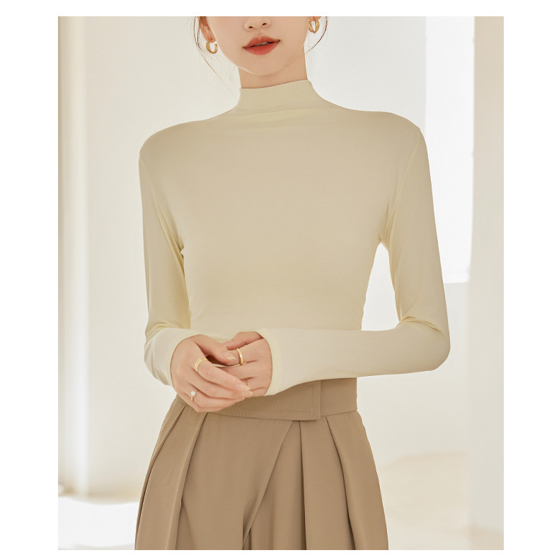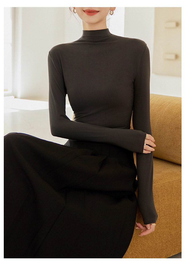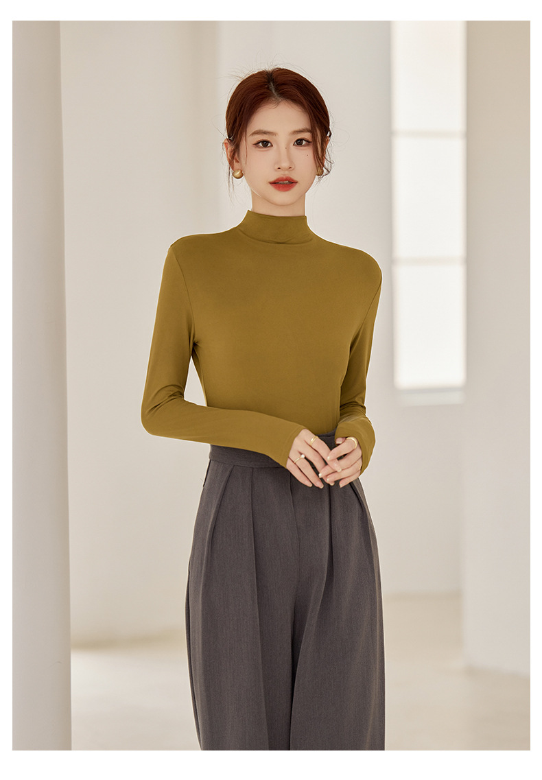买一送一任选2件半高领打底衫女长袖秋冬新款立领纯色内搭T恤打底秋衣上衣女T桖衫