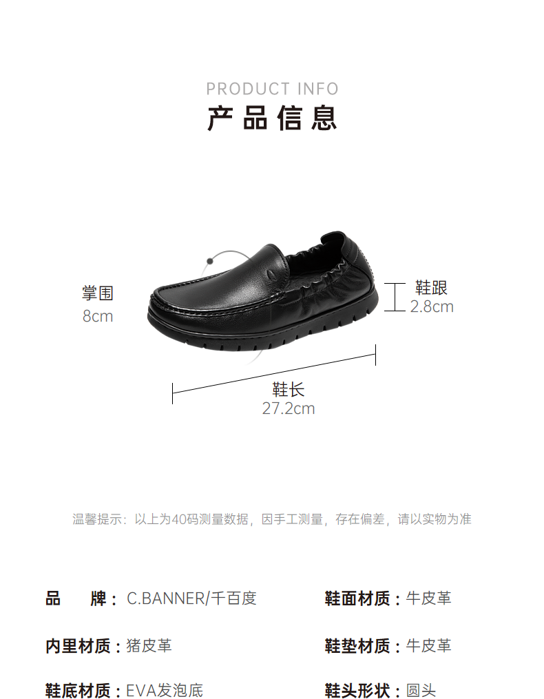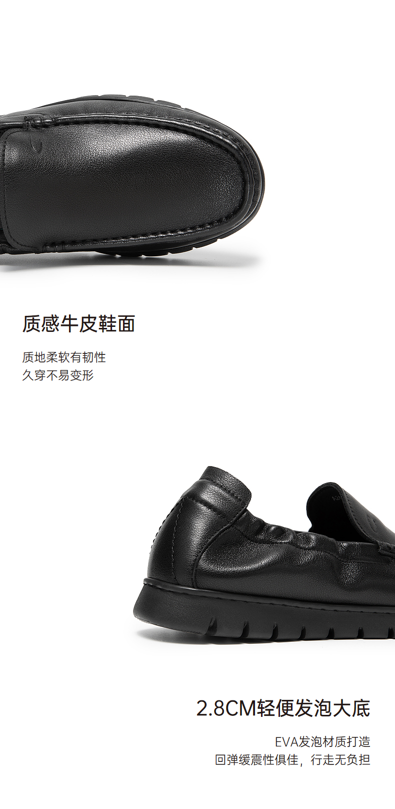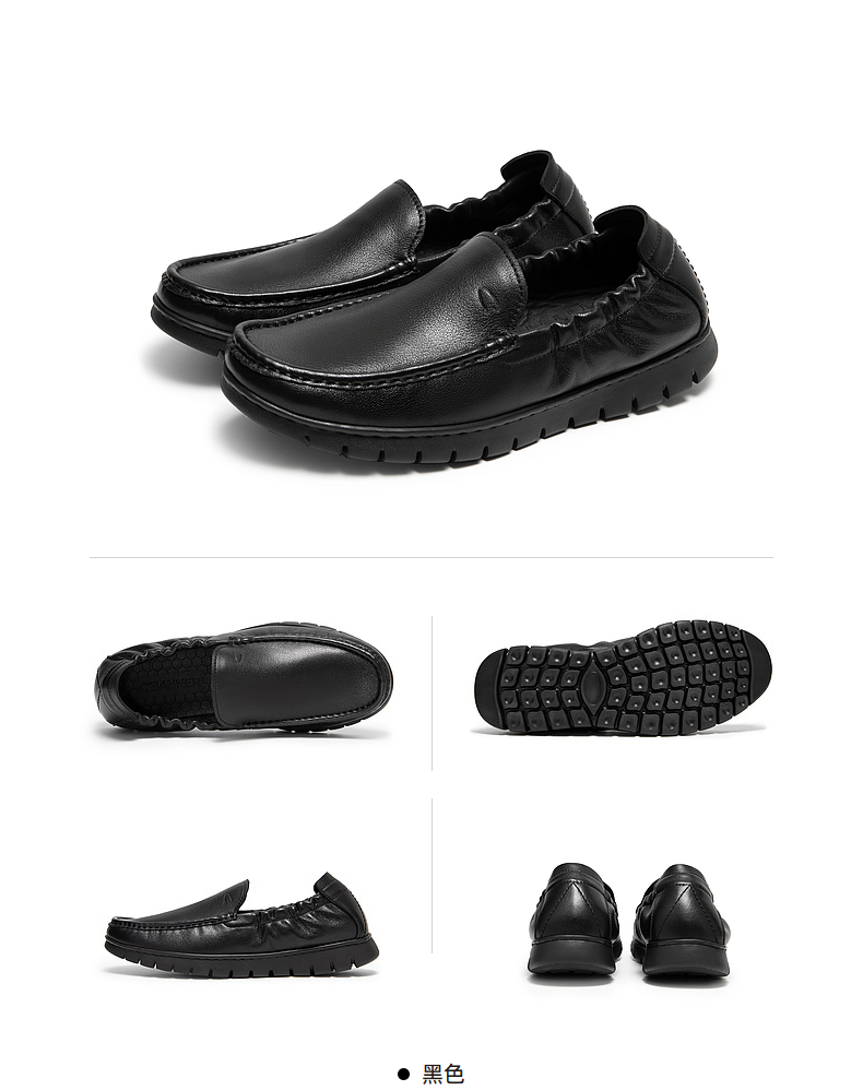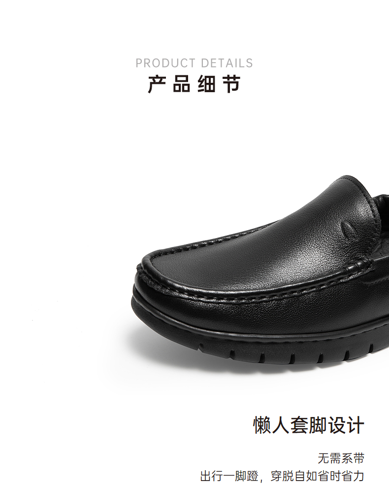 千百度男鞋一脚蹬皮鞋秋季男士商务真皮休闲皮鞋黑色通勤A24454020