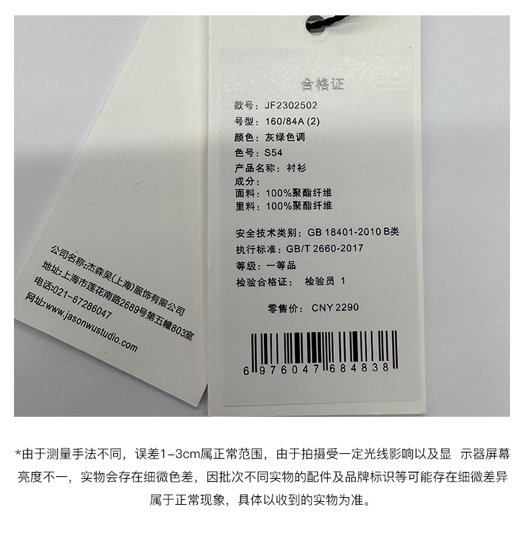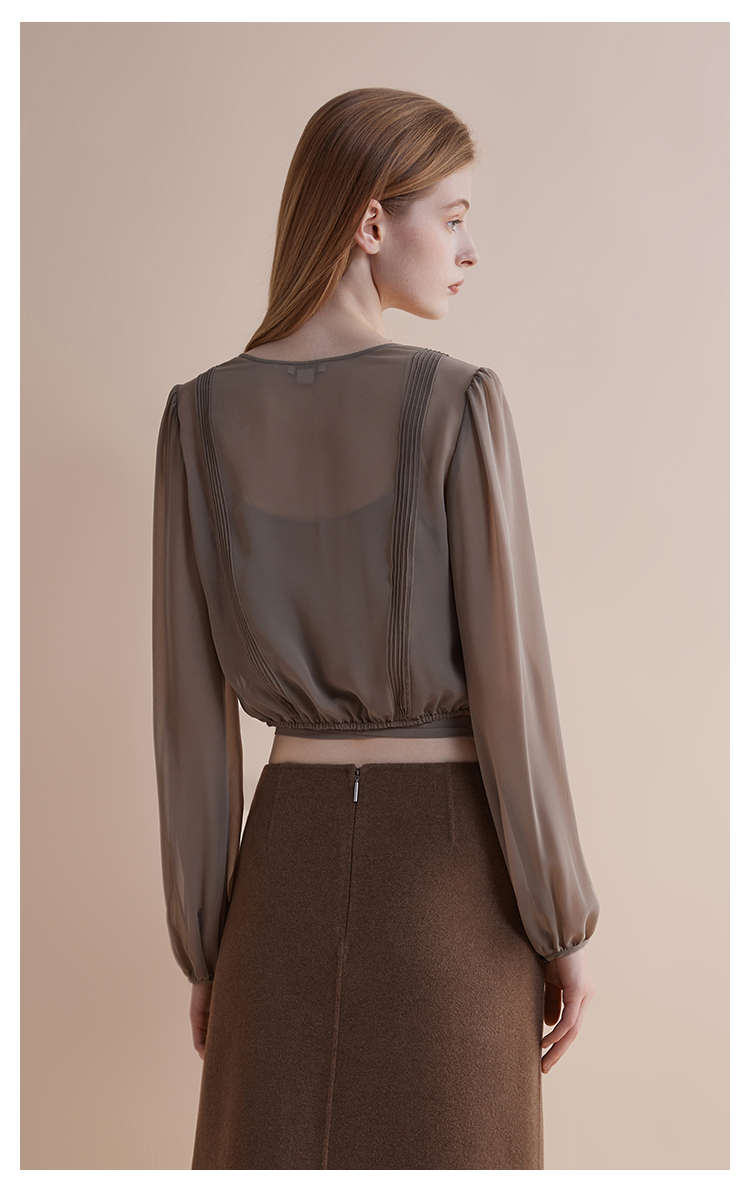 【JASON WU】春夏新款通勤休闲百搭羊毛抽皱宽松中长上衣衬衣衬衫