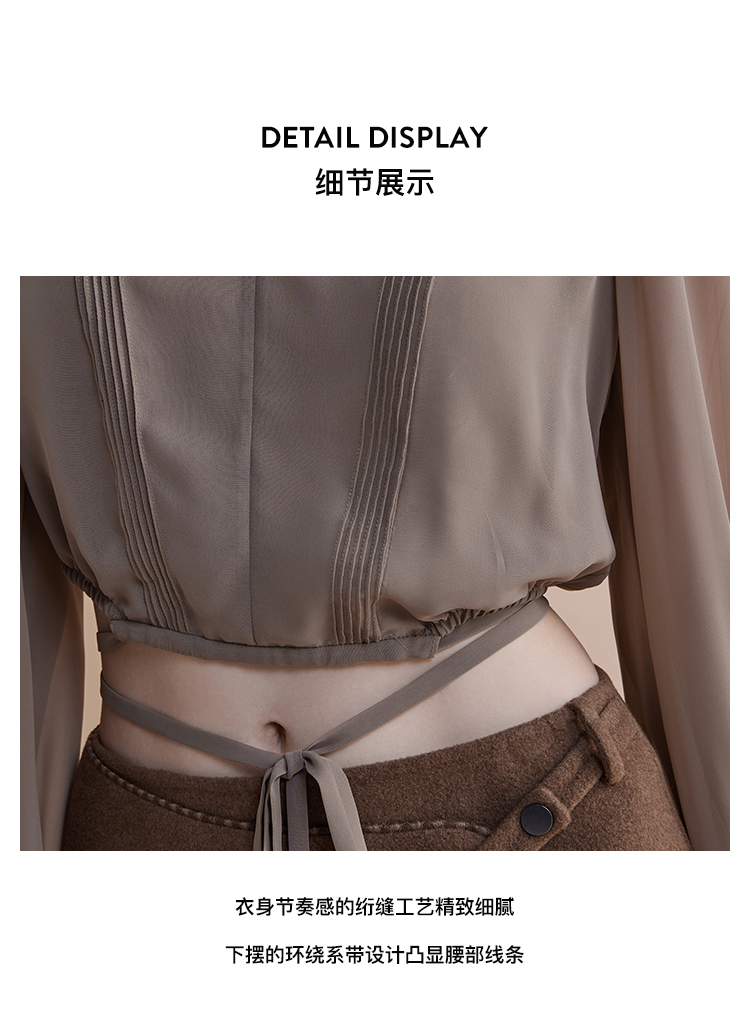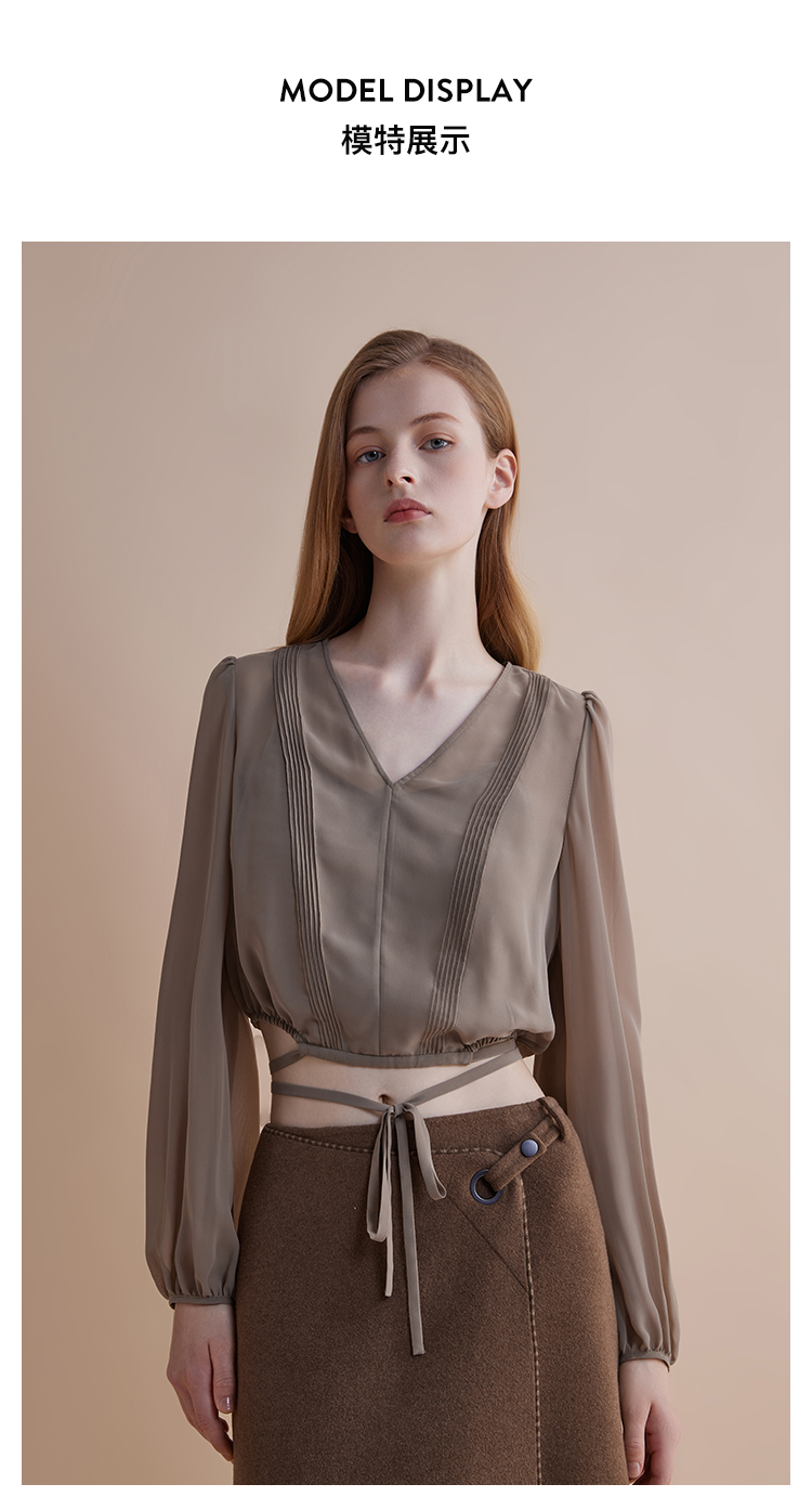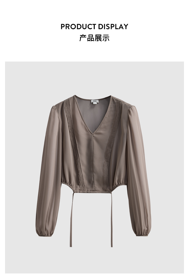 【JASON WU】春夏新款休闲V领系带通勤宽松简约设计上衣衬衣衬衫