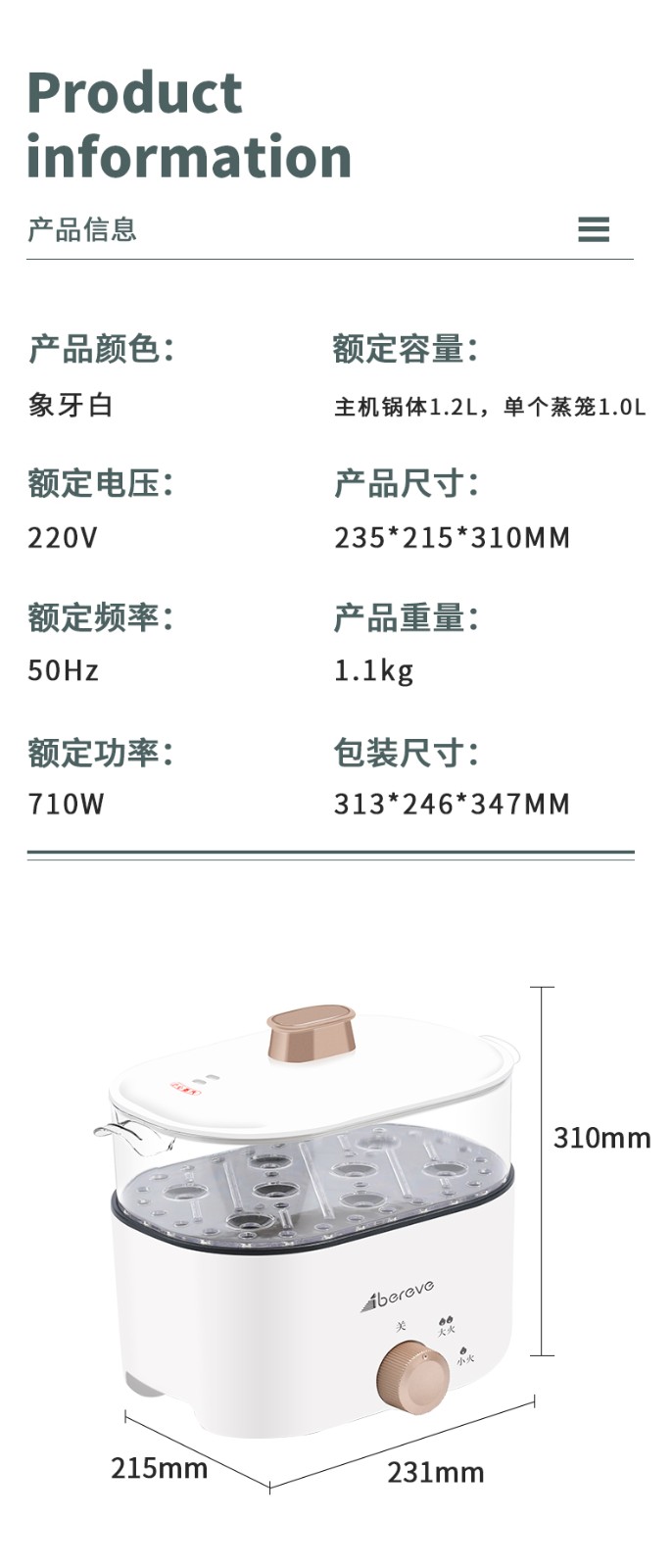 艾贝丽 | 多功能电蒸锅ABL-DZG01小家电