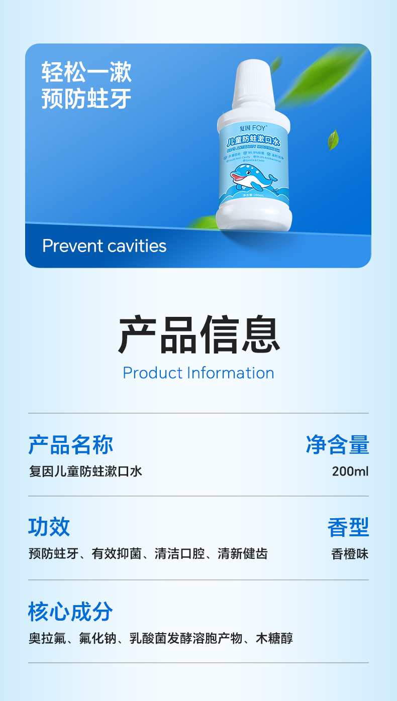 复因FOY儿童防蛀漱口水200ml 多重防蛀 儿童专研温和不刺激
