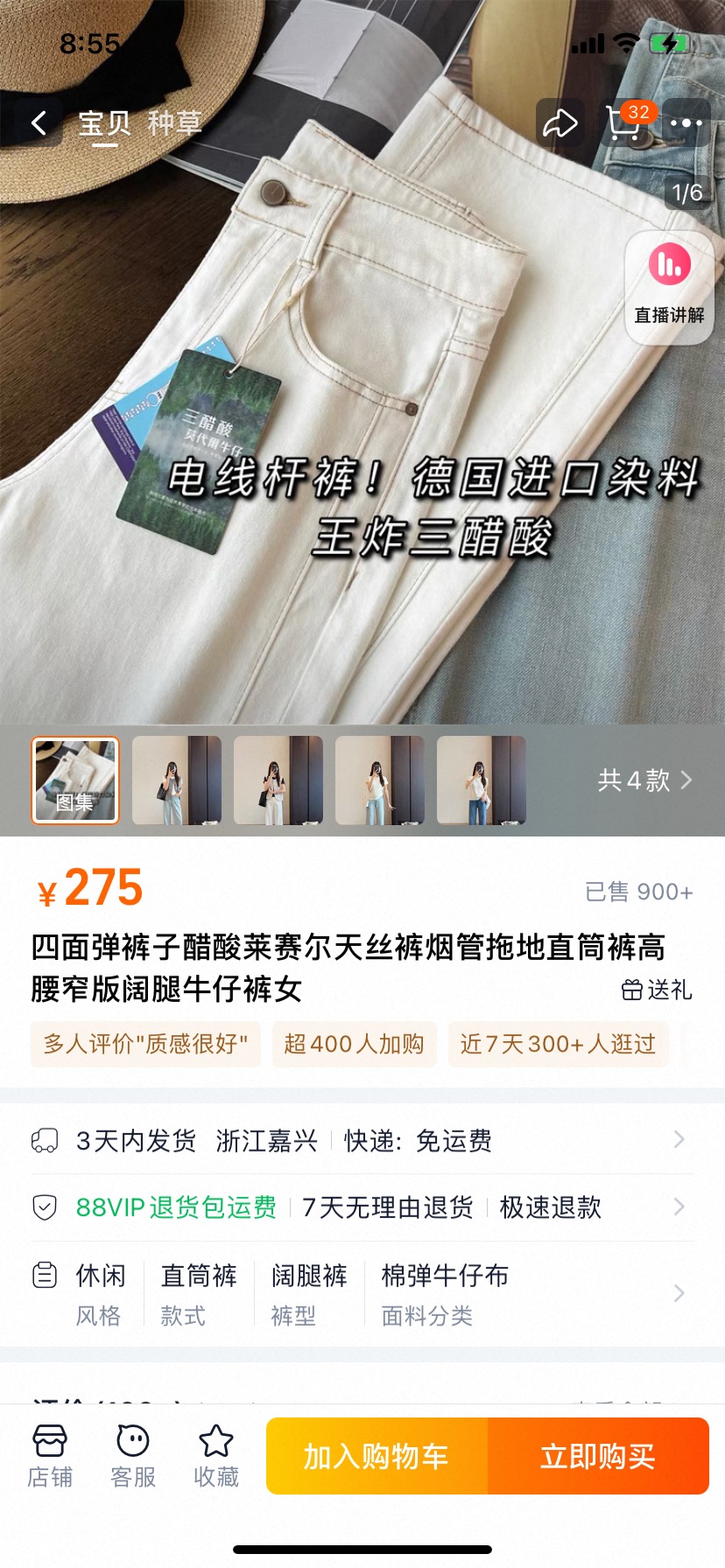 💰88元包邮, 【3637】天花板 三醋酸莫代尔 腰窄版阔腿牛仔裤 大店275元 牛仔裤工厂家的清仓款 只有53条 这款的版型 显高、显瘦、显直的Buff叠满!! 梨形姐妹也能穿出电线杆般细直效果~