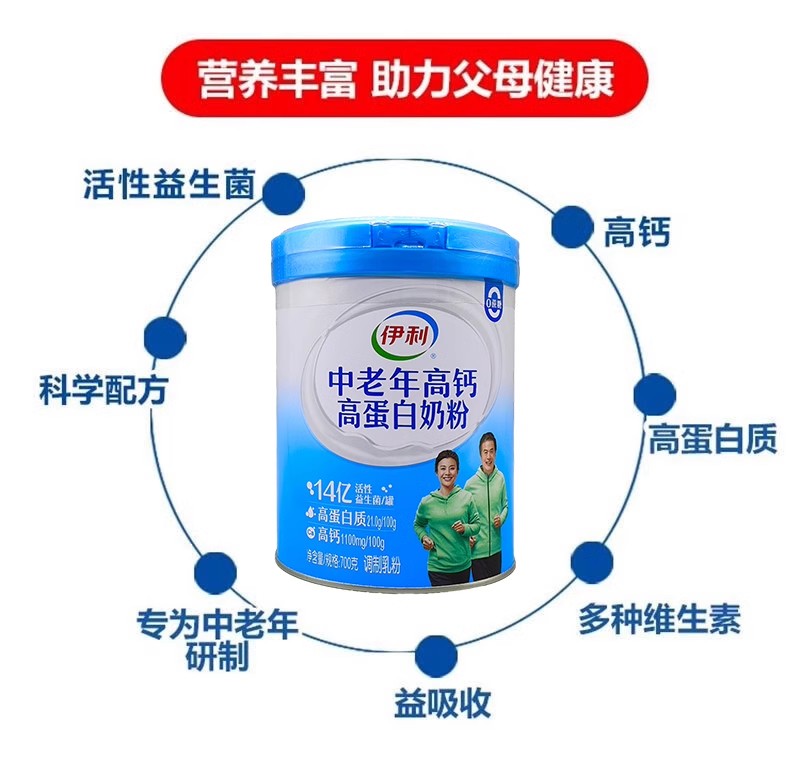 伊利700g厅 中老年高钙高蛋白奶粉