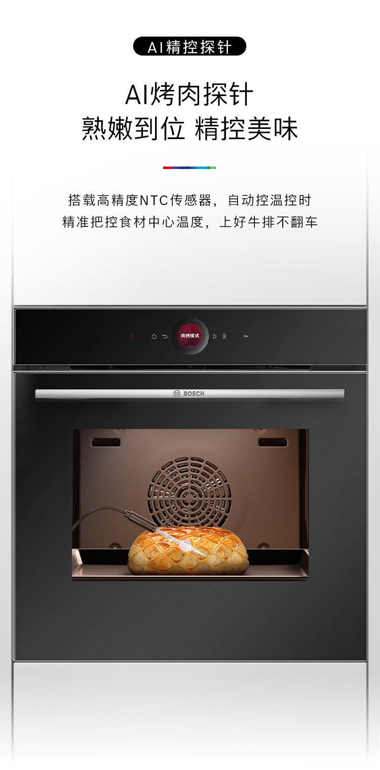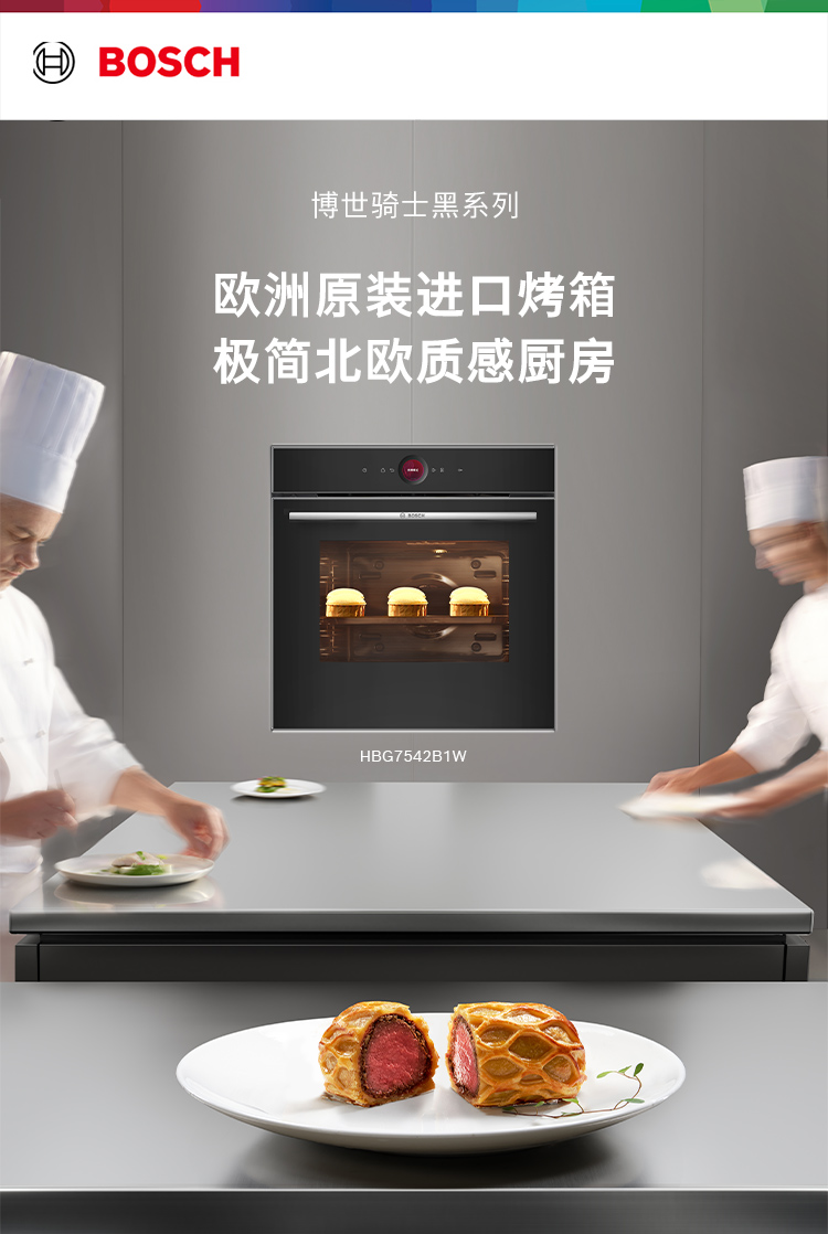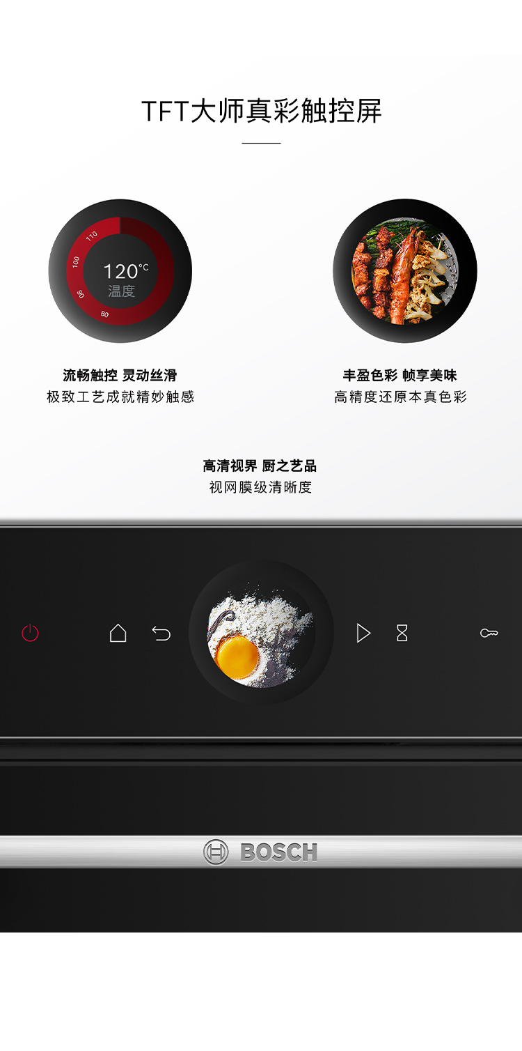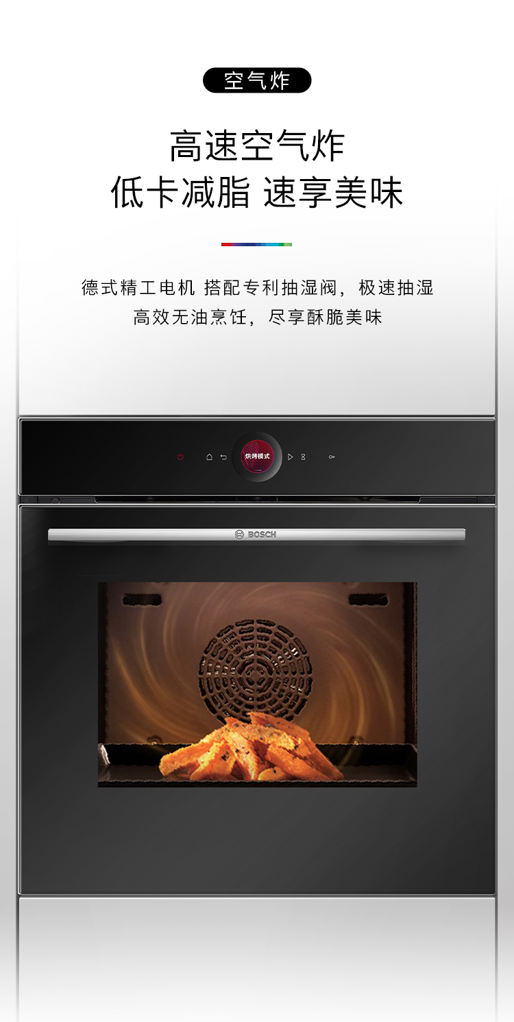 博世(BOSCH)灵感厨房系列嵌入式电烤箱德国进口厨房家用71L大容量彩屏3D热风20 个自动程序 HBG7542B1W