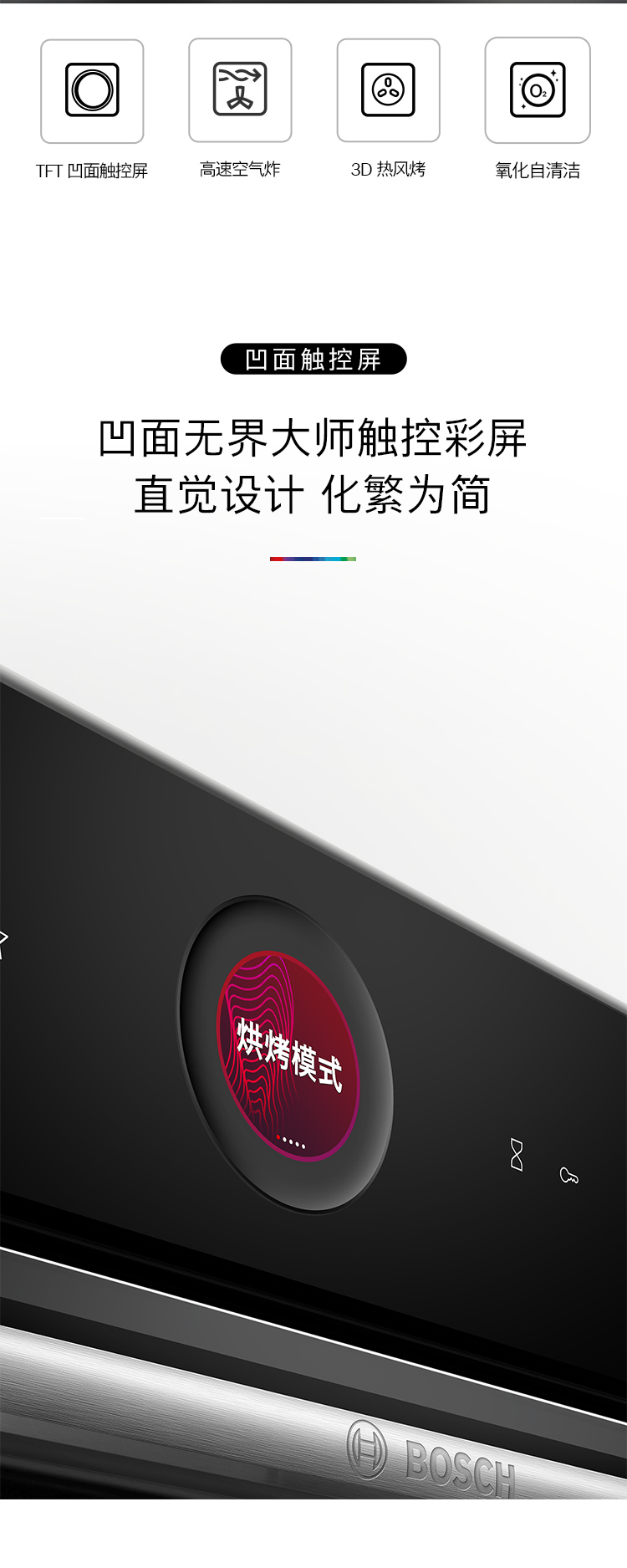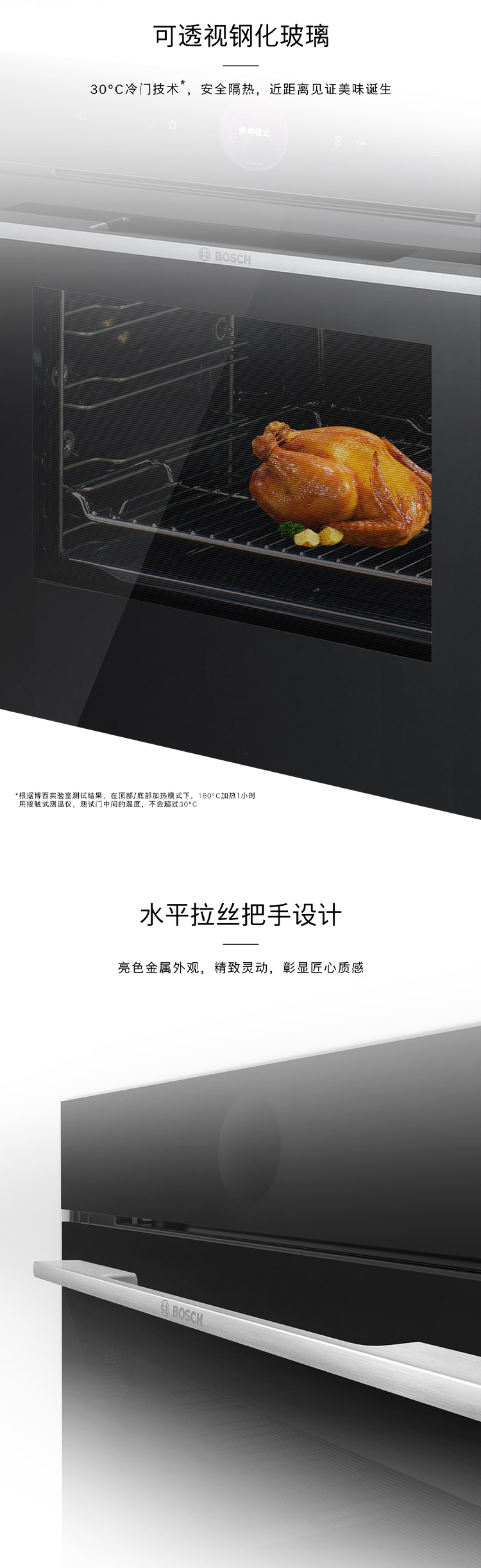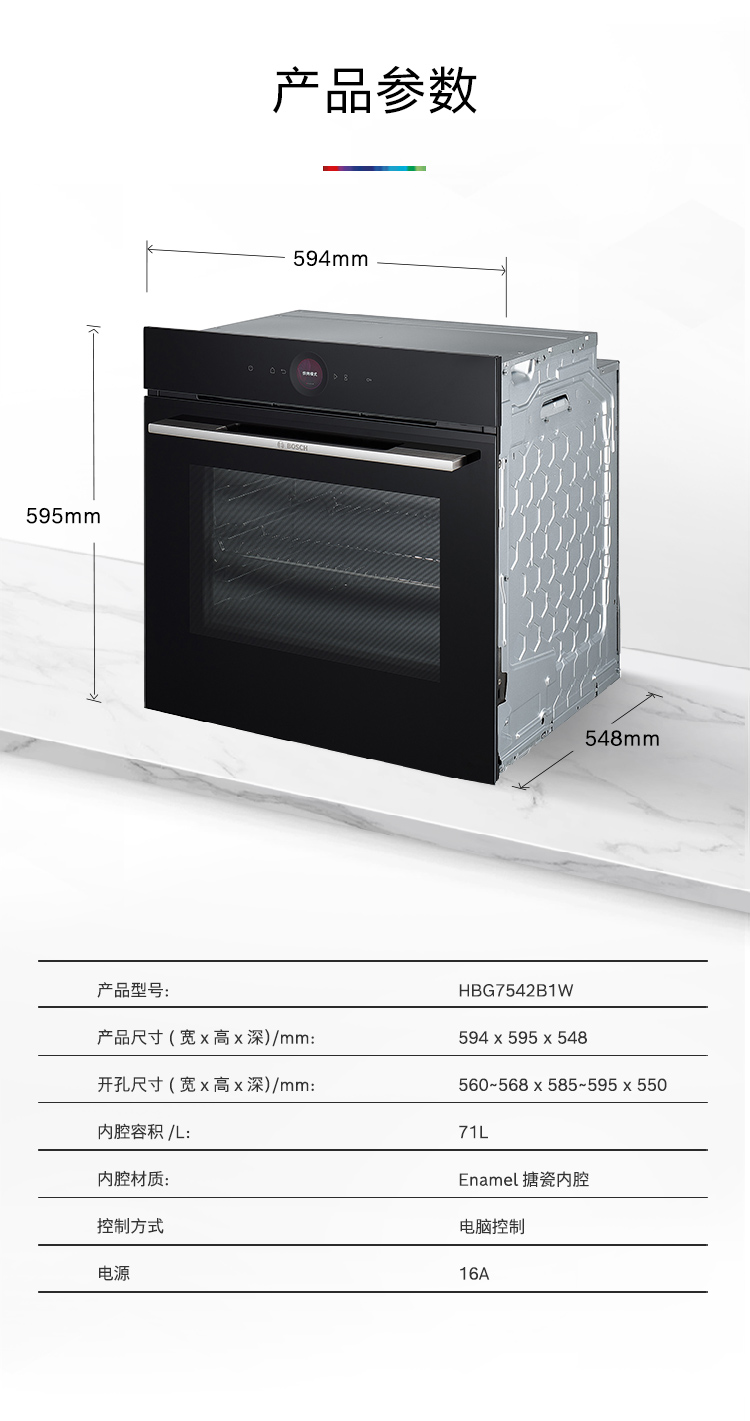 博世(BOSCH)灵感厨房系列嵌入式电烤箱德国进口厨房家用71L大容量彩屏3D热风20 个自动程序 HBG7542B1W
