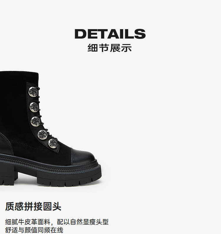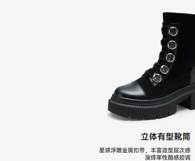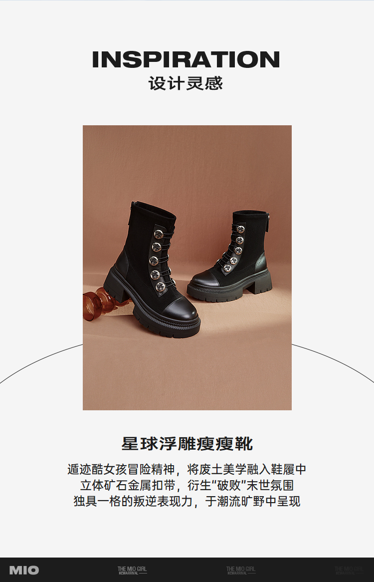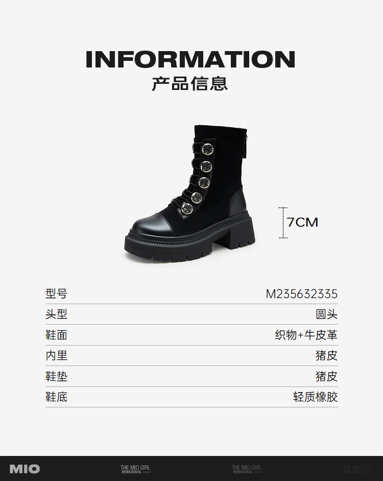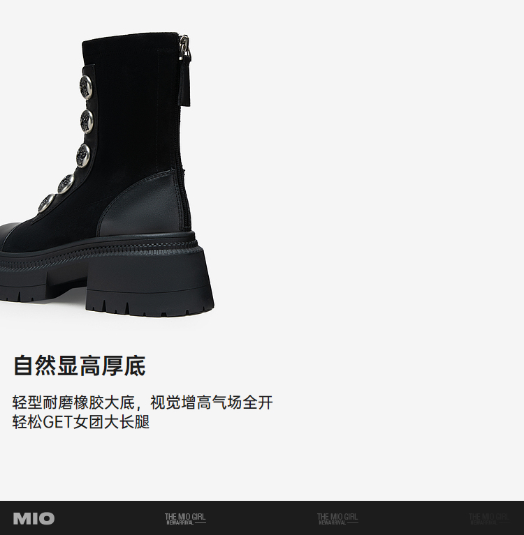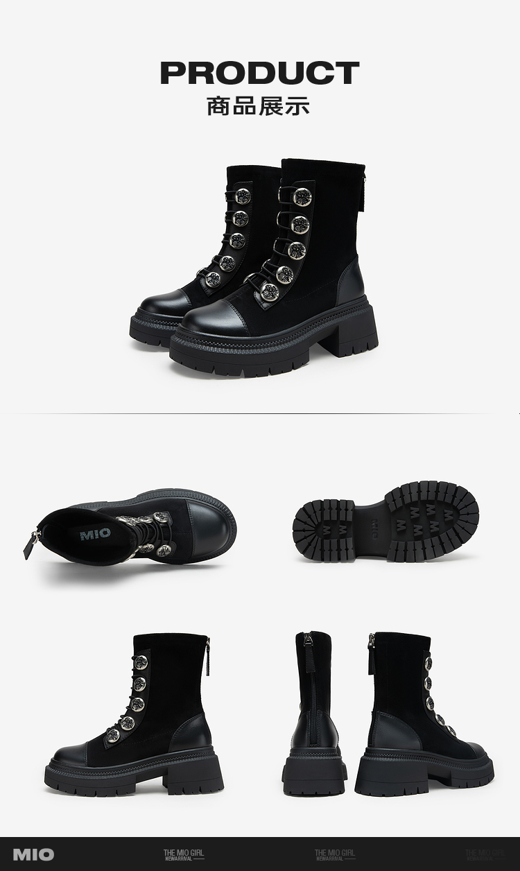 MIO米奥冬季圆头高跟中筒瘦瘦靴金属扣带酷感厚底马丁靴女M235632335