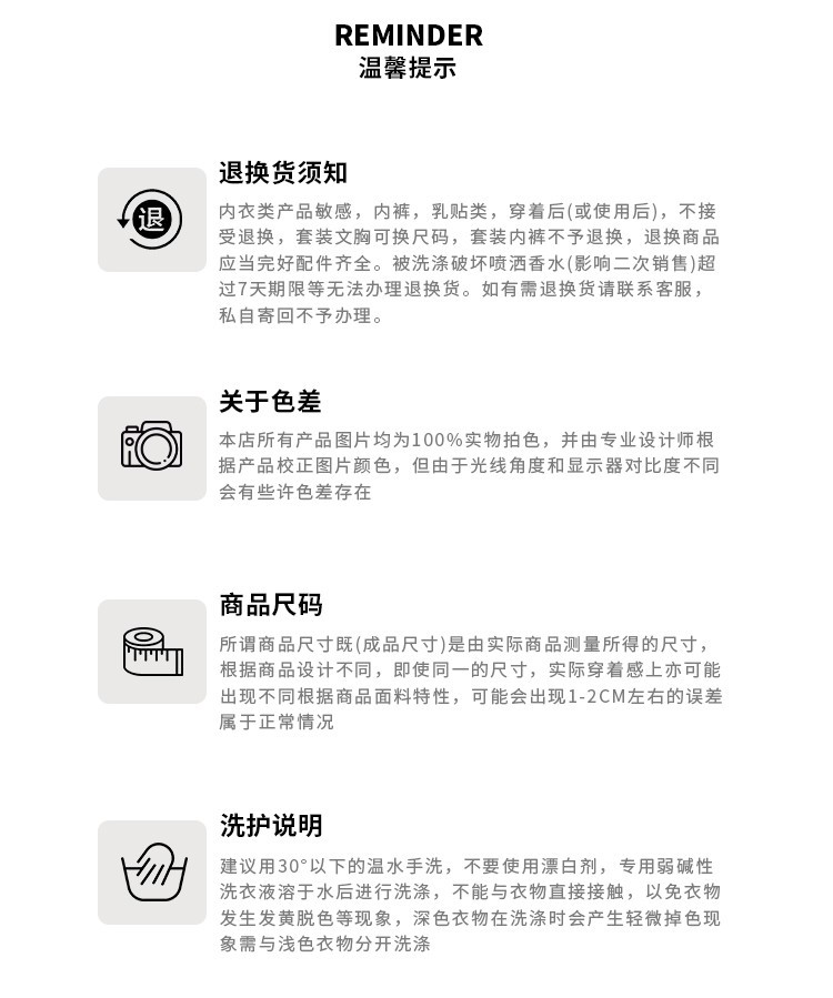 售后:内衣贴身物品未洗过穿过支持7天无理由退换货。