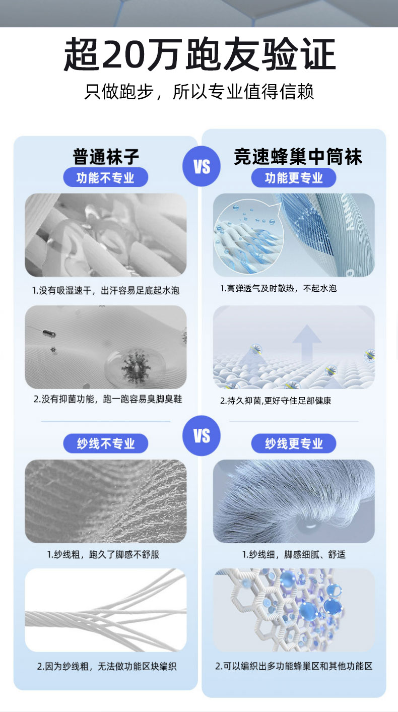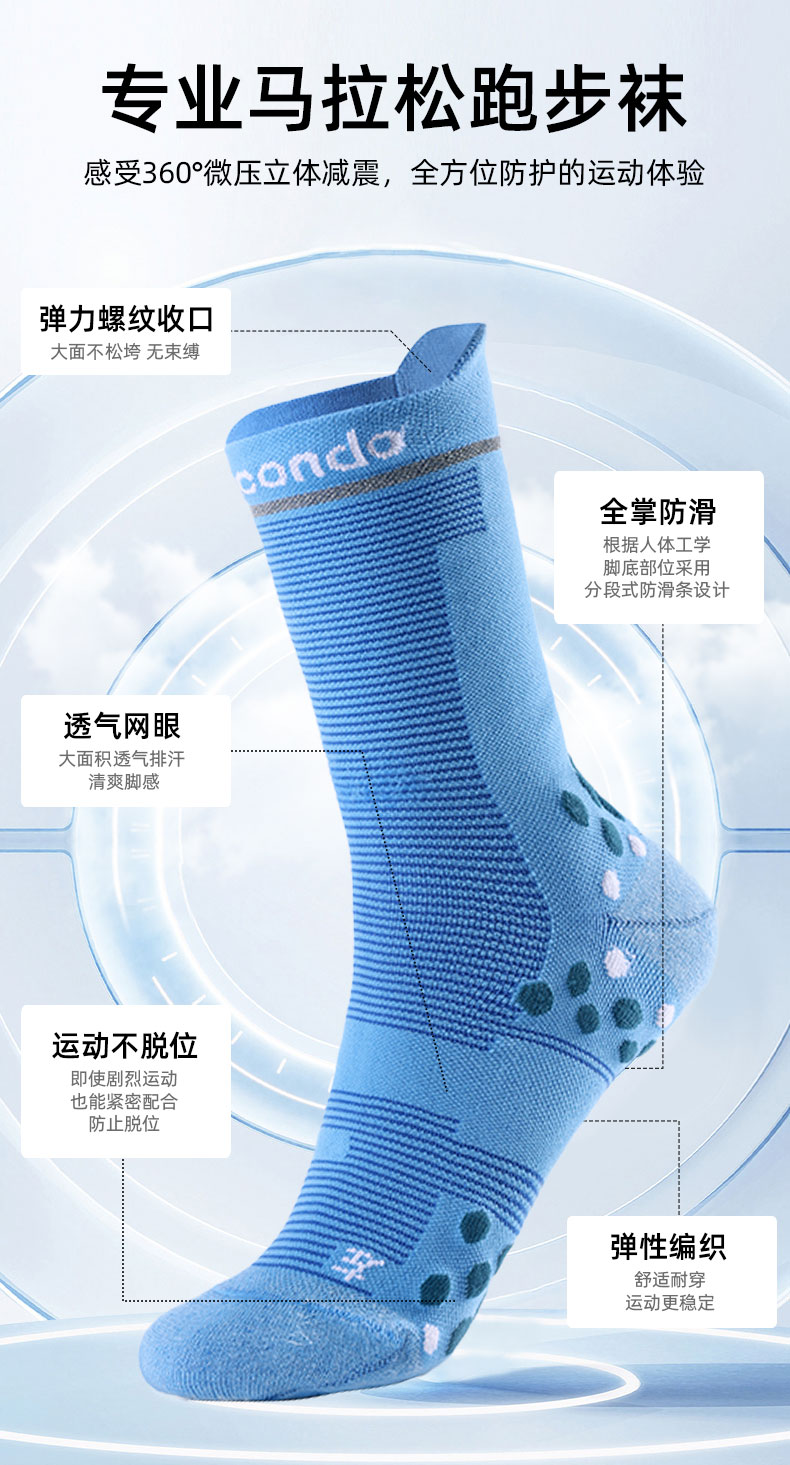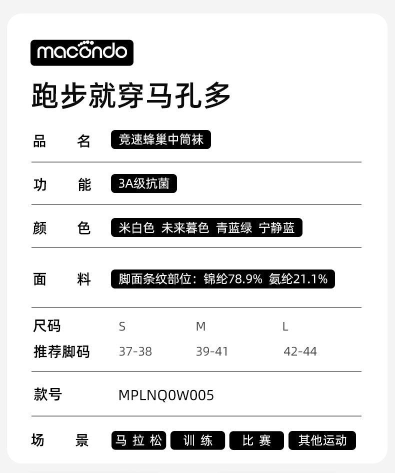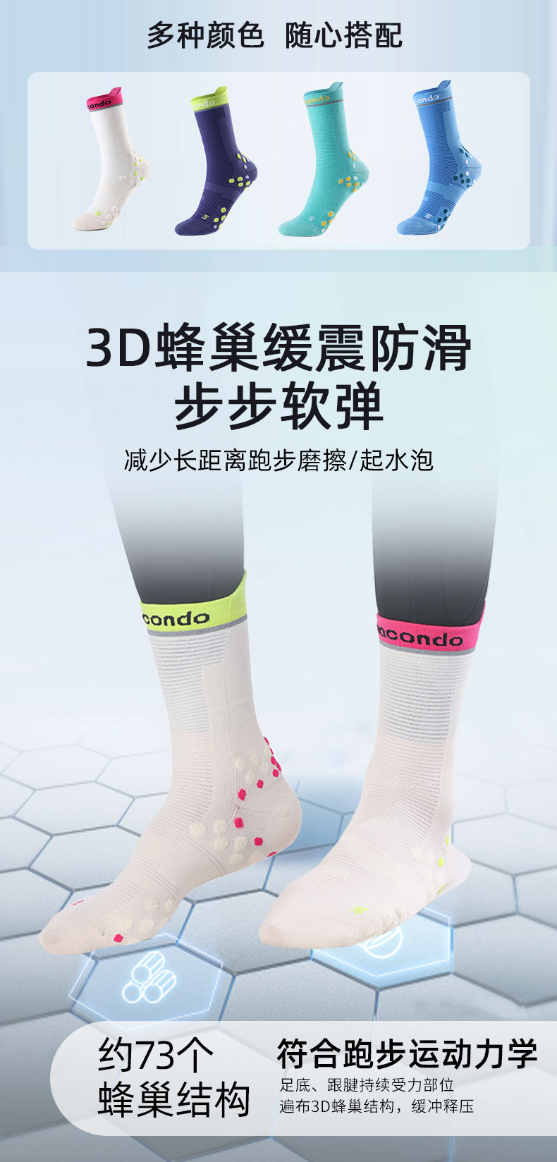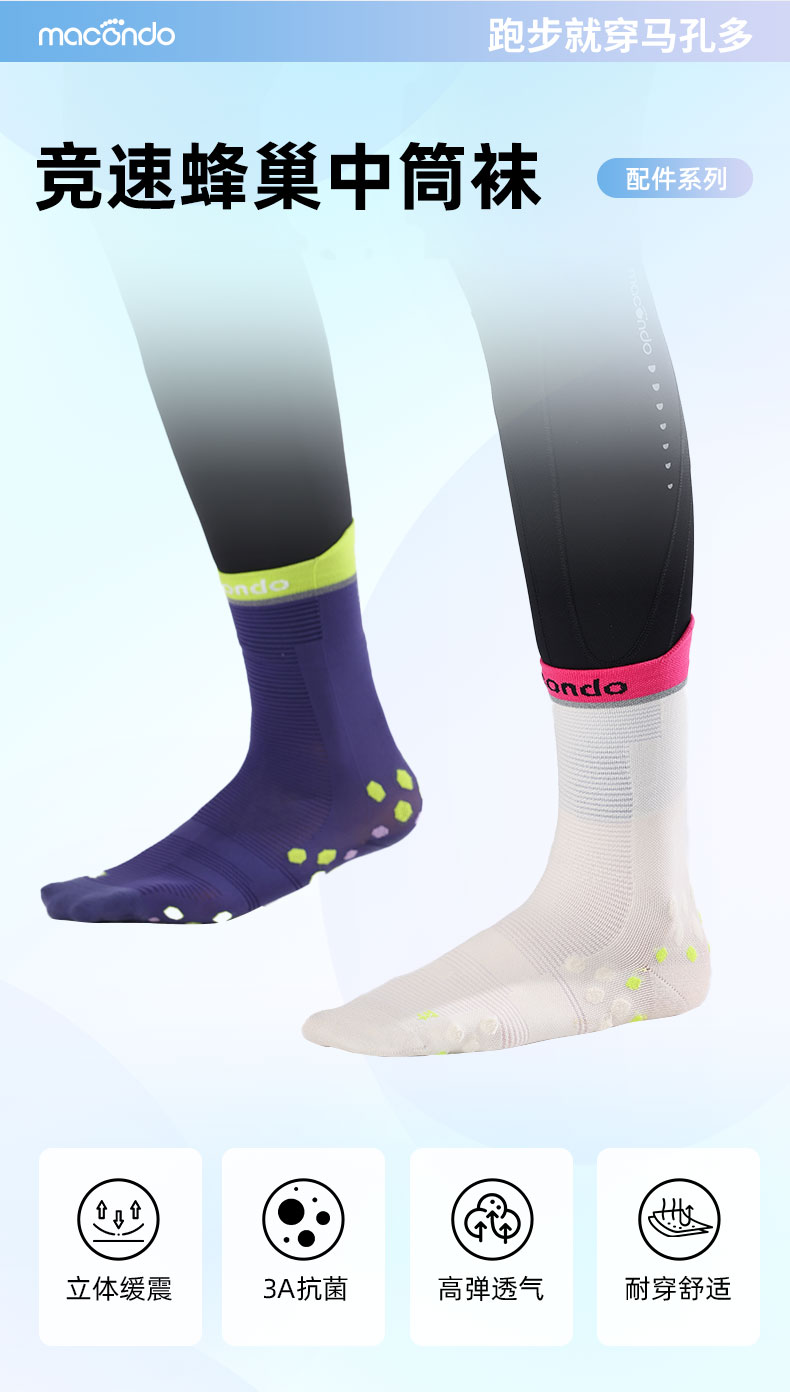 马孔多男女竞速蜂巢中筒袜 3D蜂巢缓震防滑 无骨缝合 业运动纱线 3A级抗jun【99元2双】