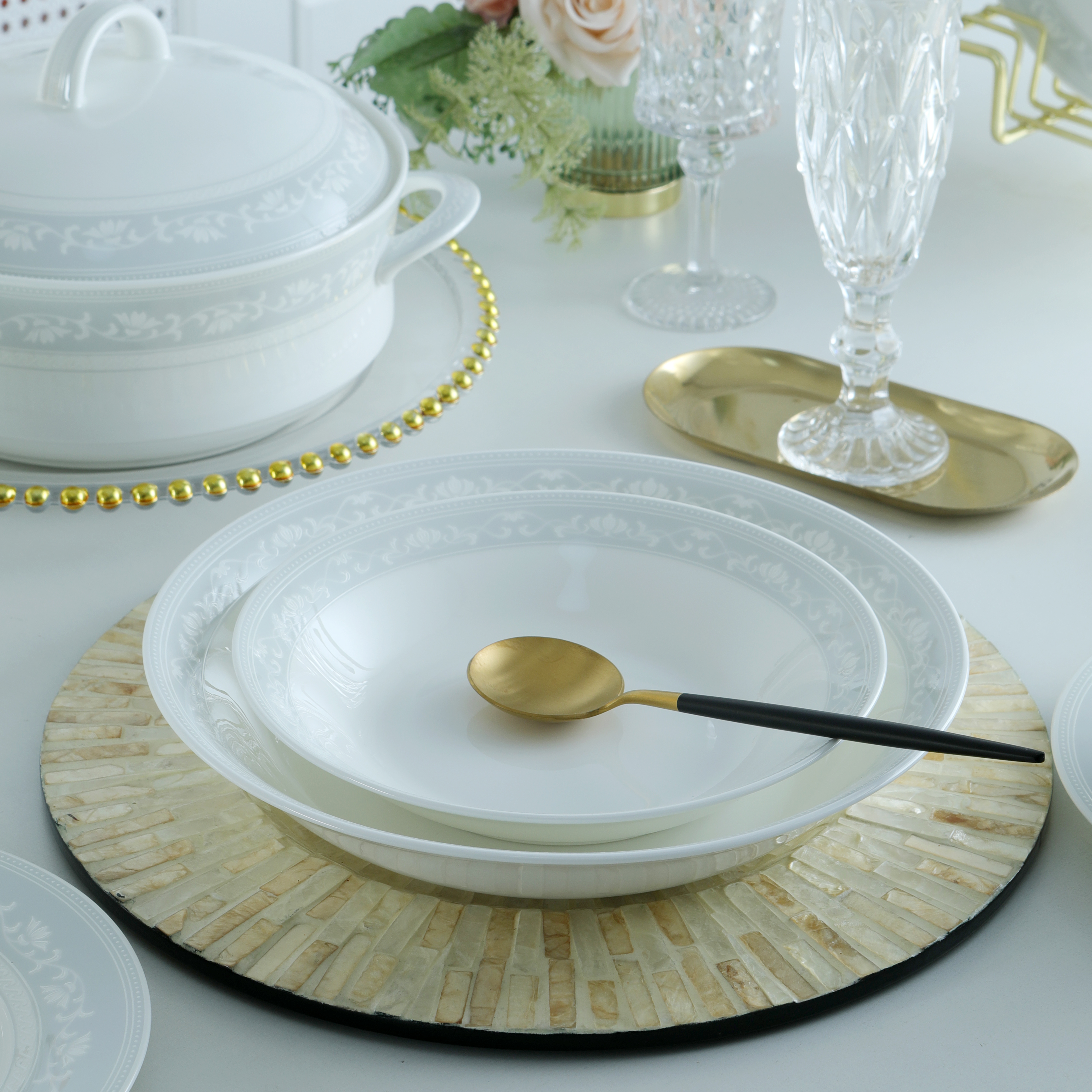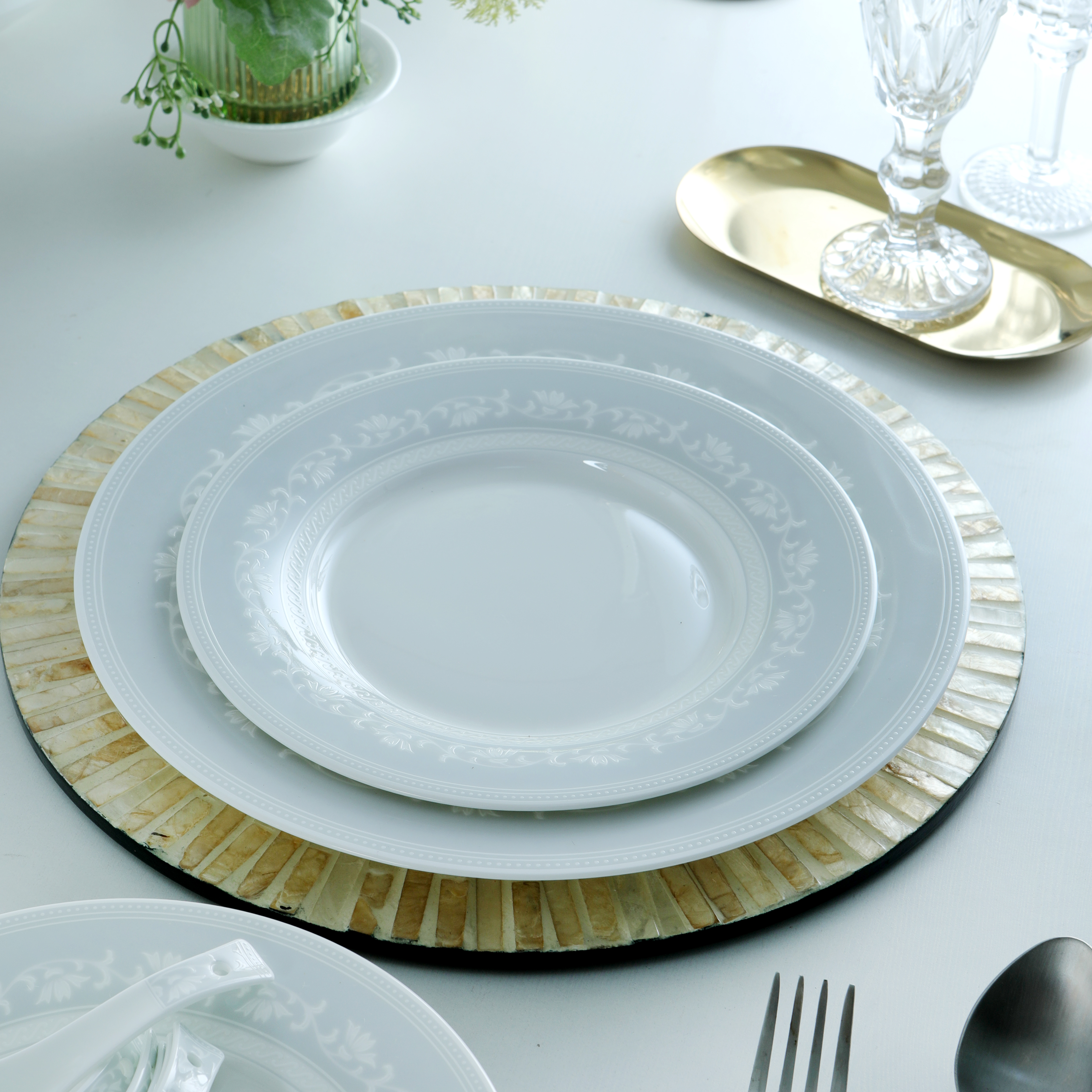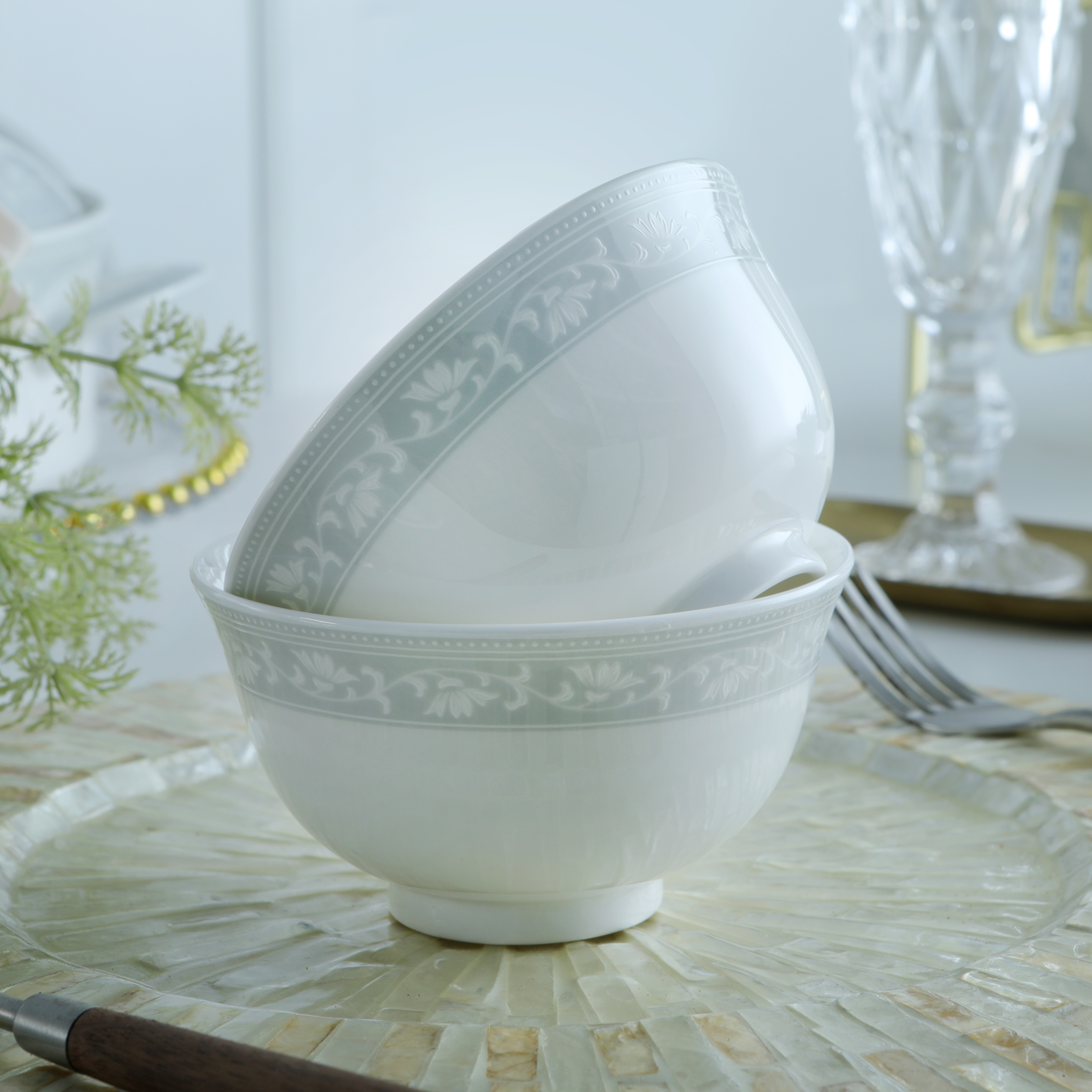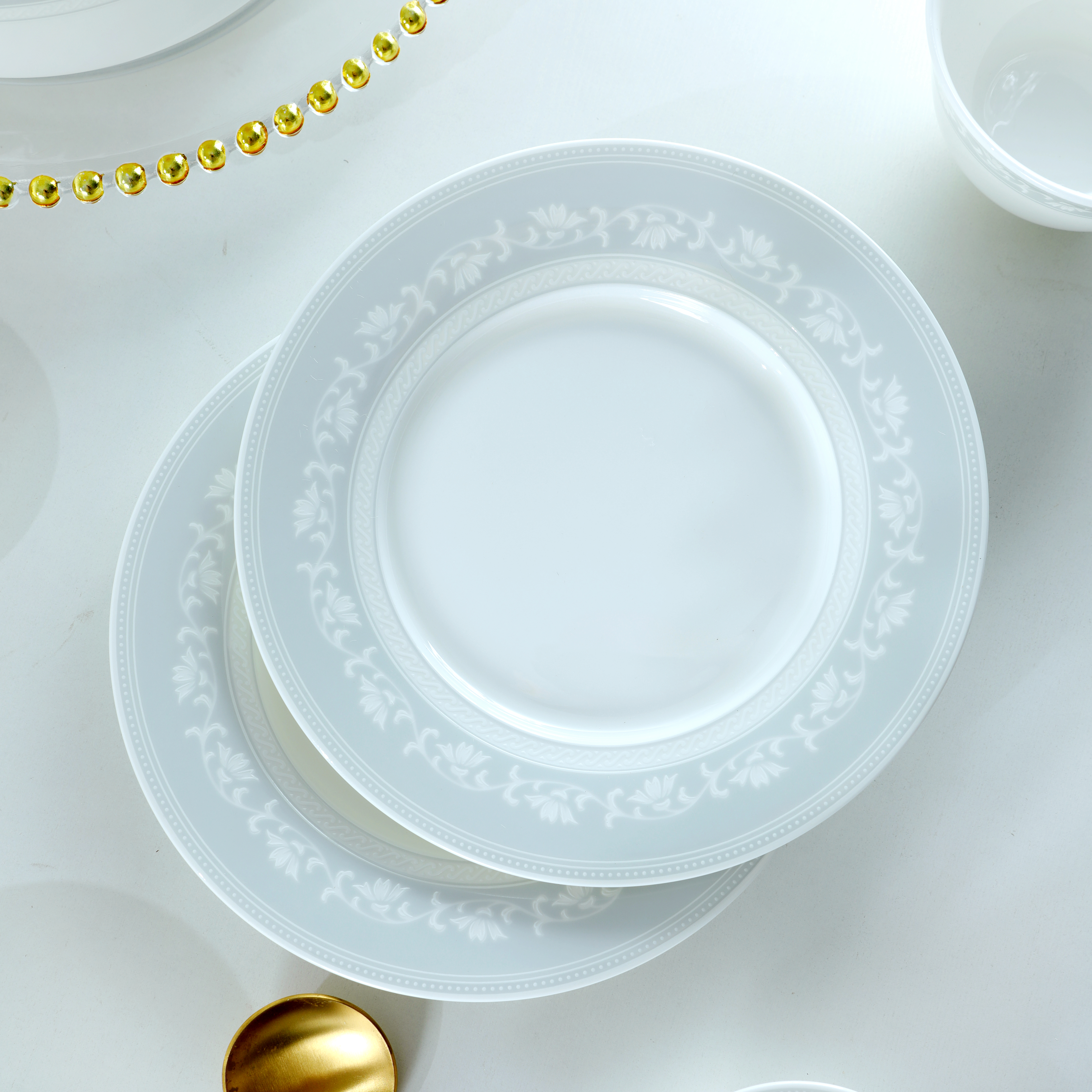 凡瑞斯骨瓷 纯白系列轻奢简约中式散件面碗饭碗平盘菜盘家用碗碟组合自由搭配