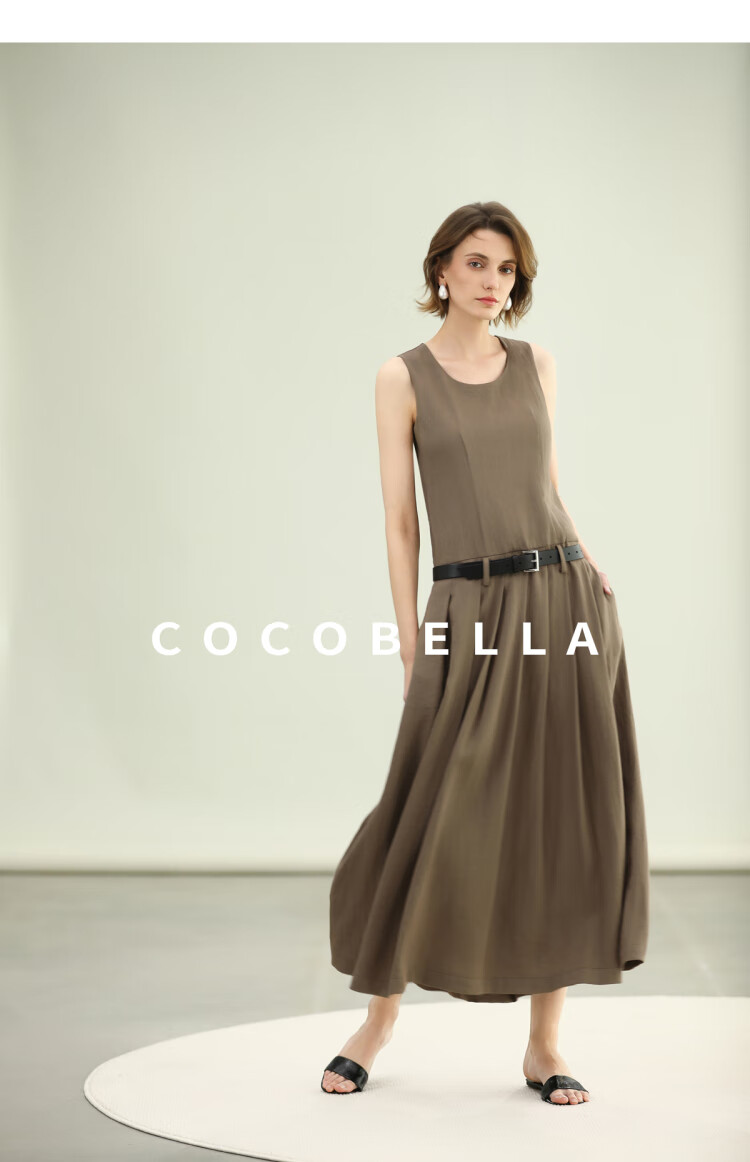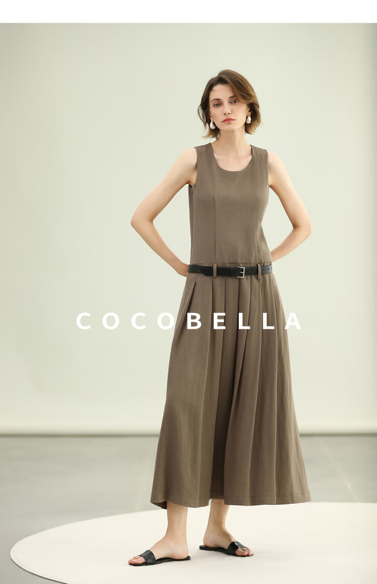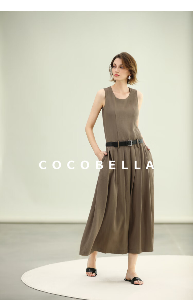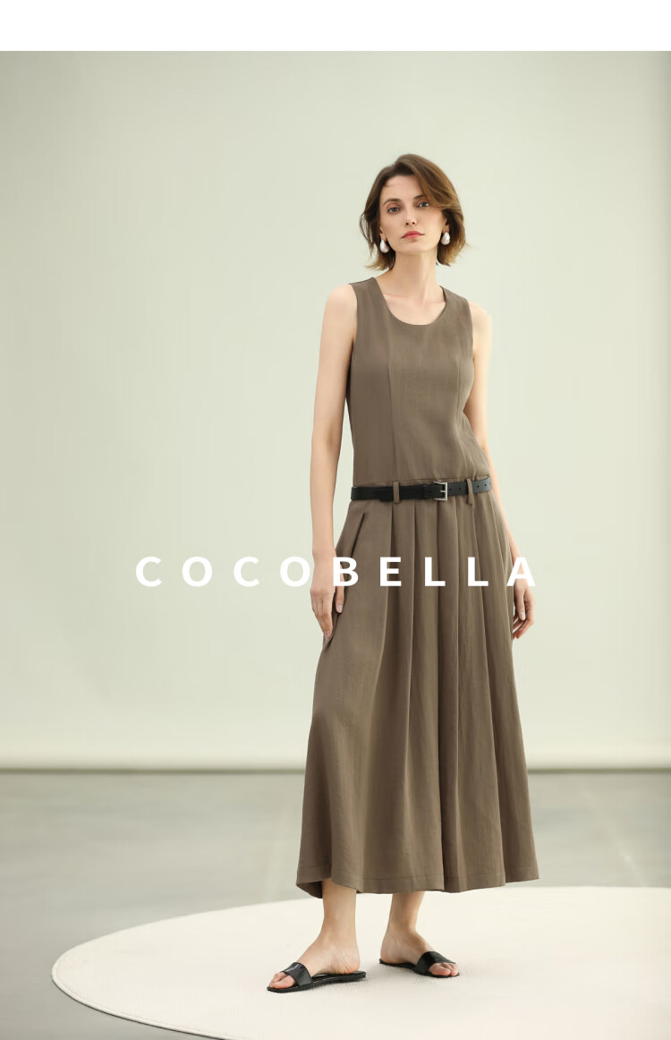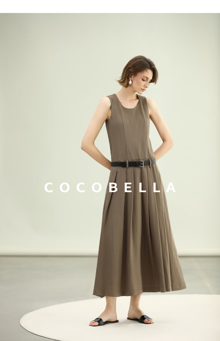 COCOBELLA高智感通勤手工倒褶连衣裙女随性舒适通勤背心裙FR0067