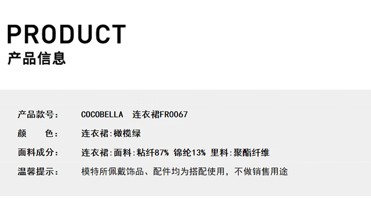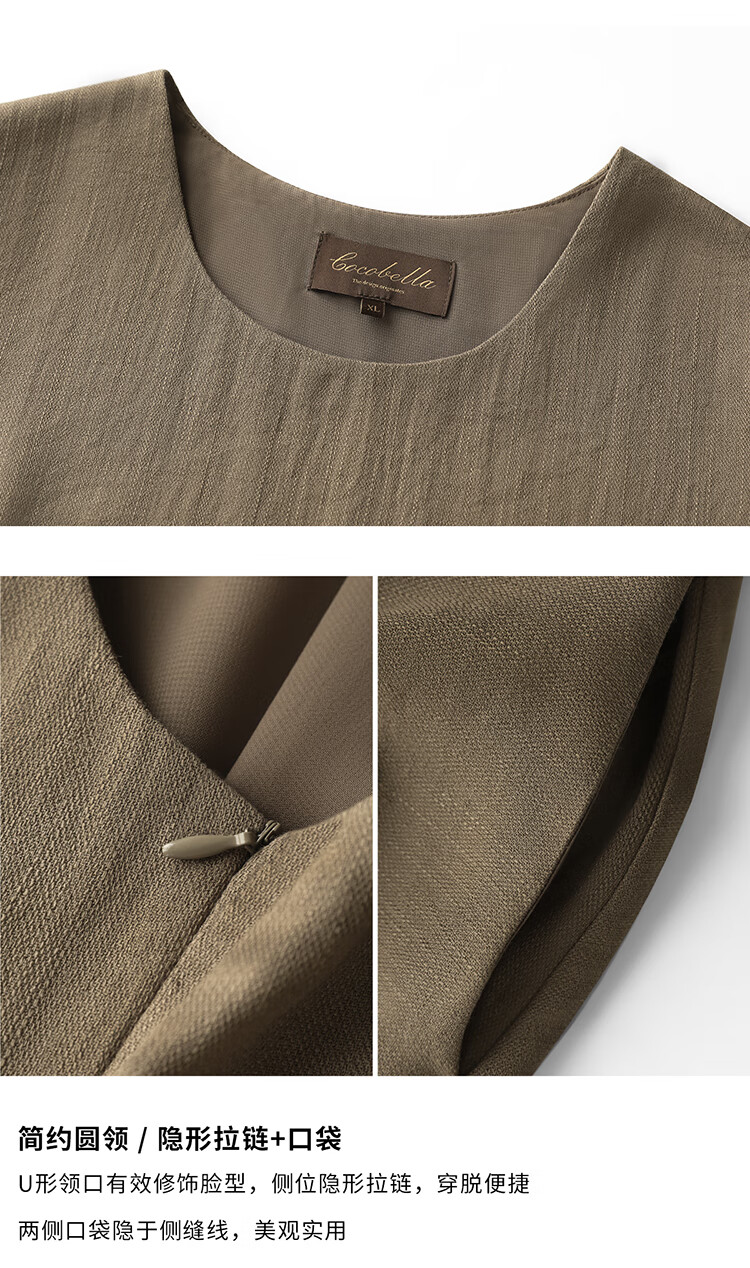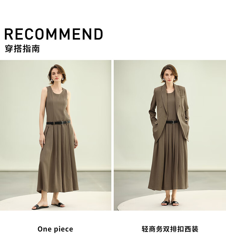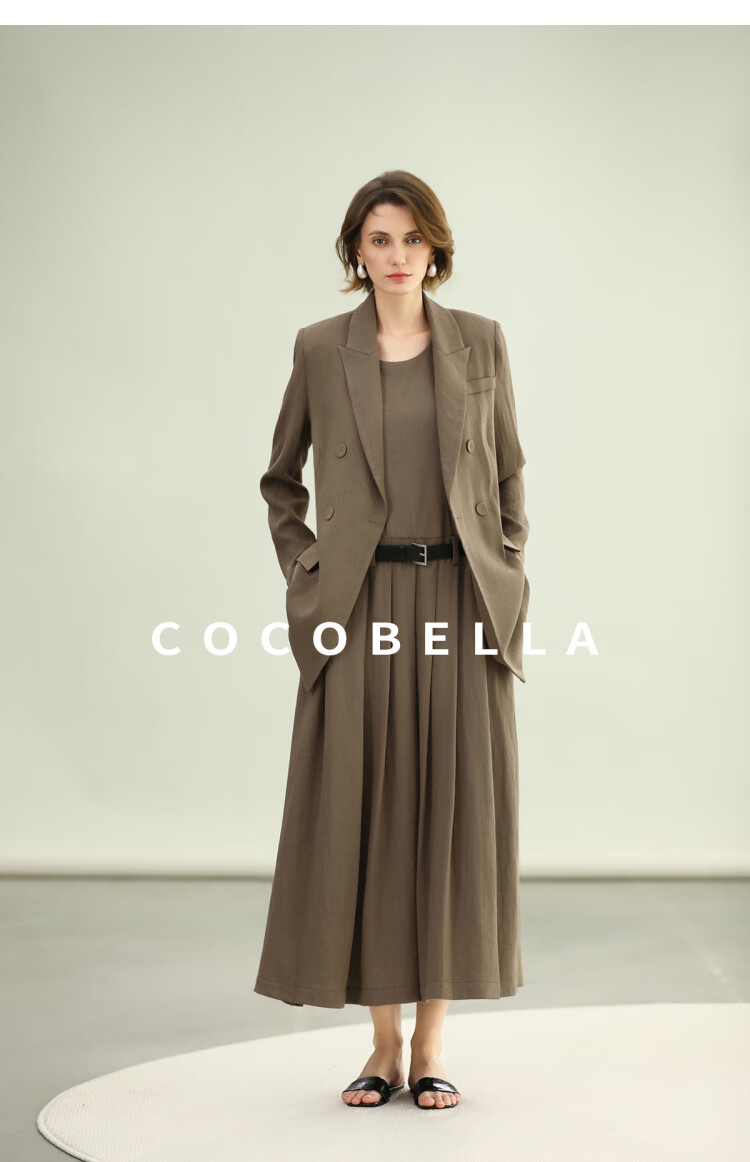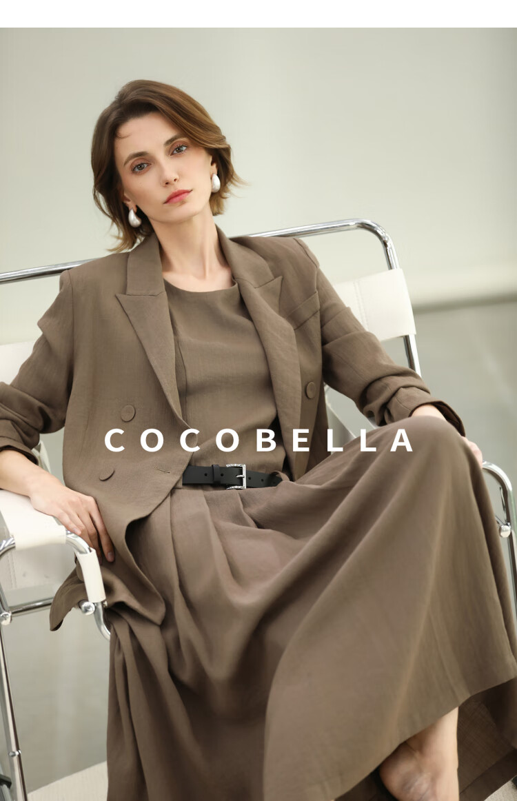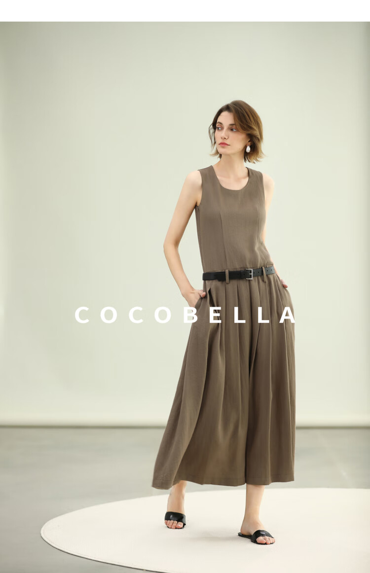 COCOBELLA高智感通勤手工倒褶连衣裙女随性舒适通勤背心裙FR0067
