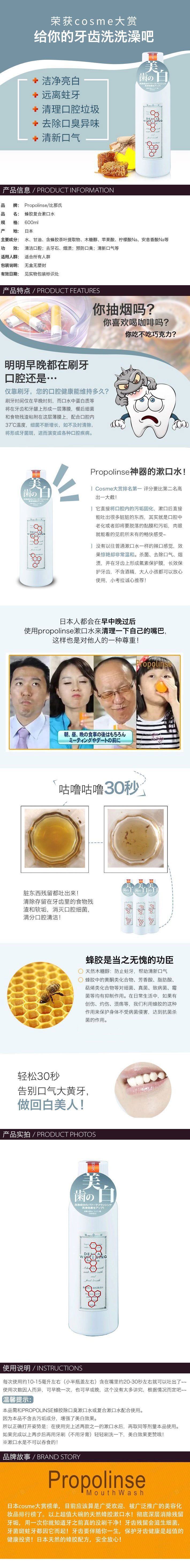 Propolinse 比那氏 蜂胶美白漱口水 600ml 日本