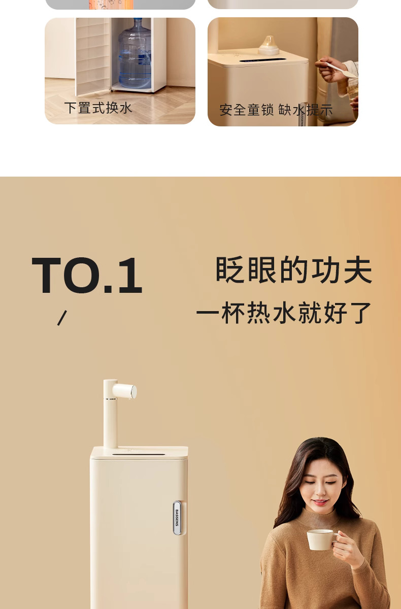 巴森即热式茶吧机高端多功能家用智能下置水桶制冷饮水机2024新款