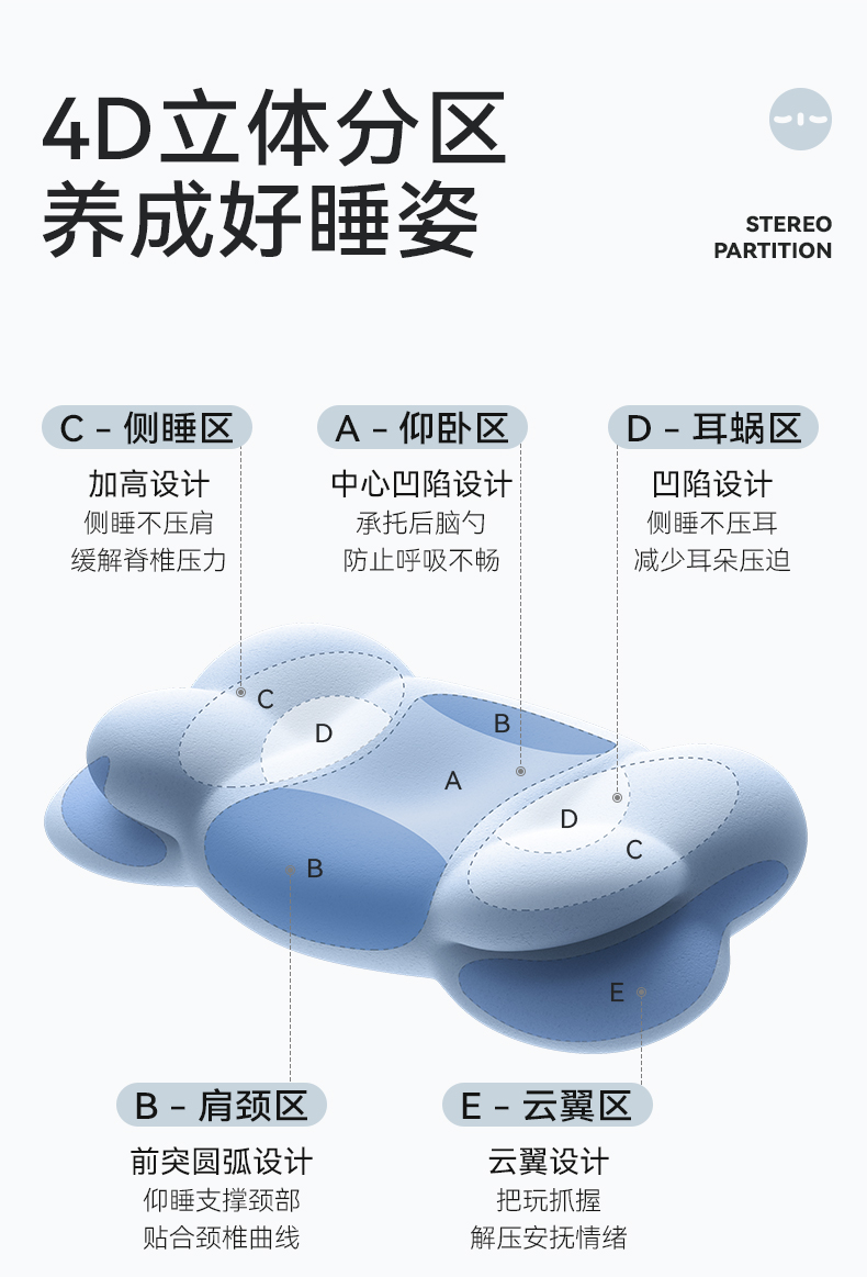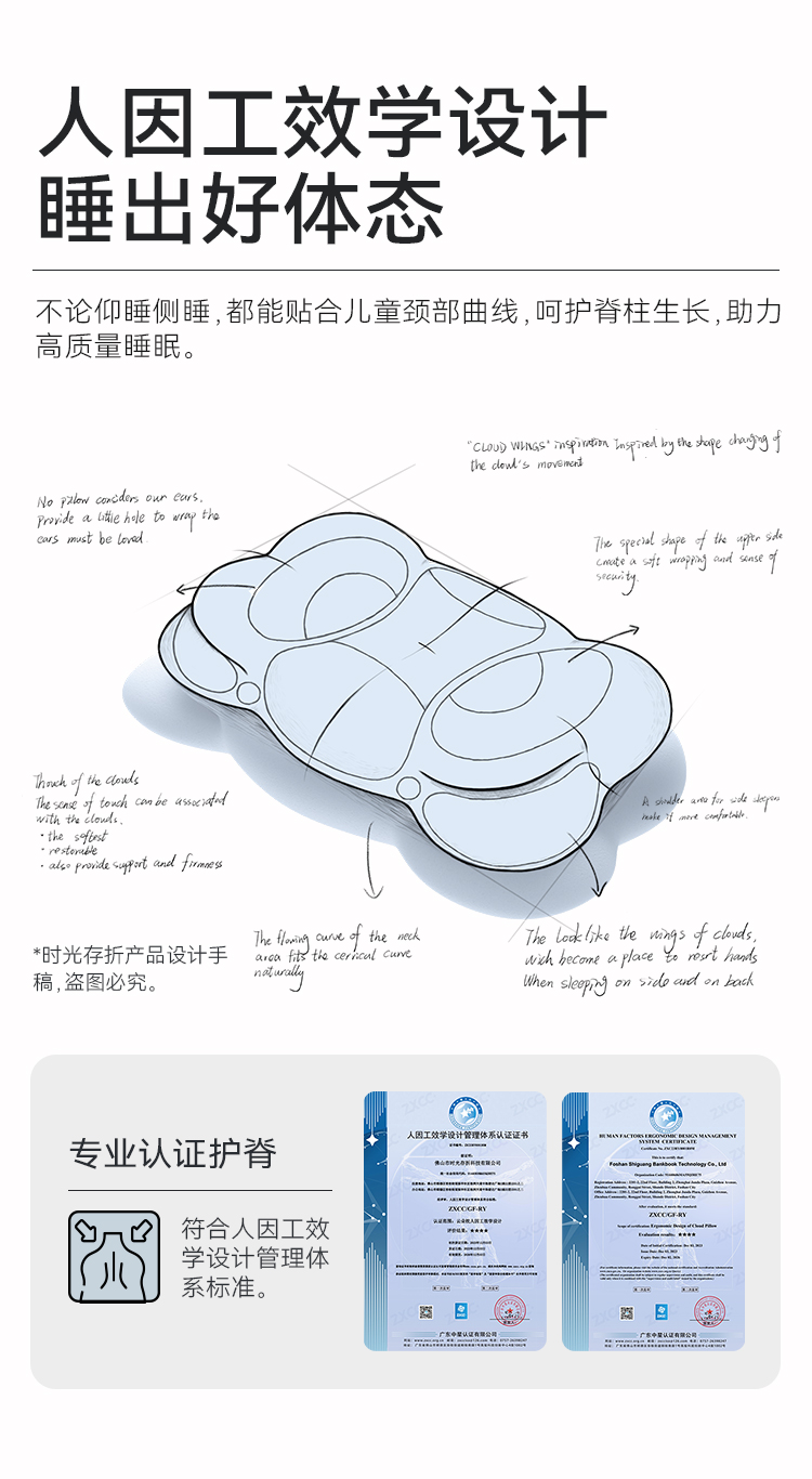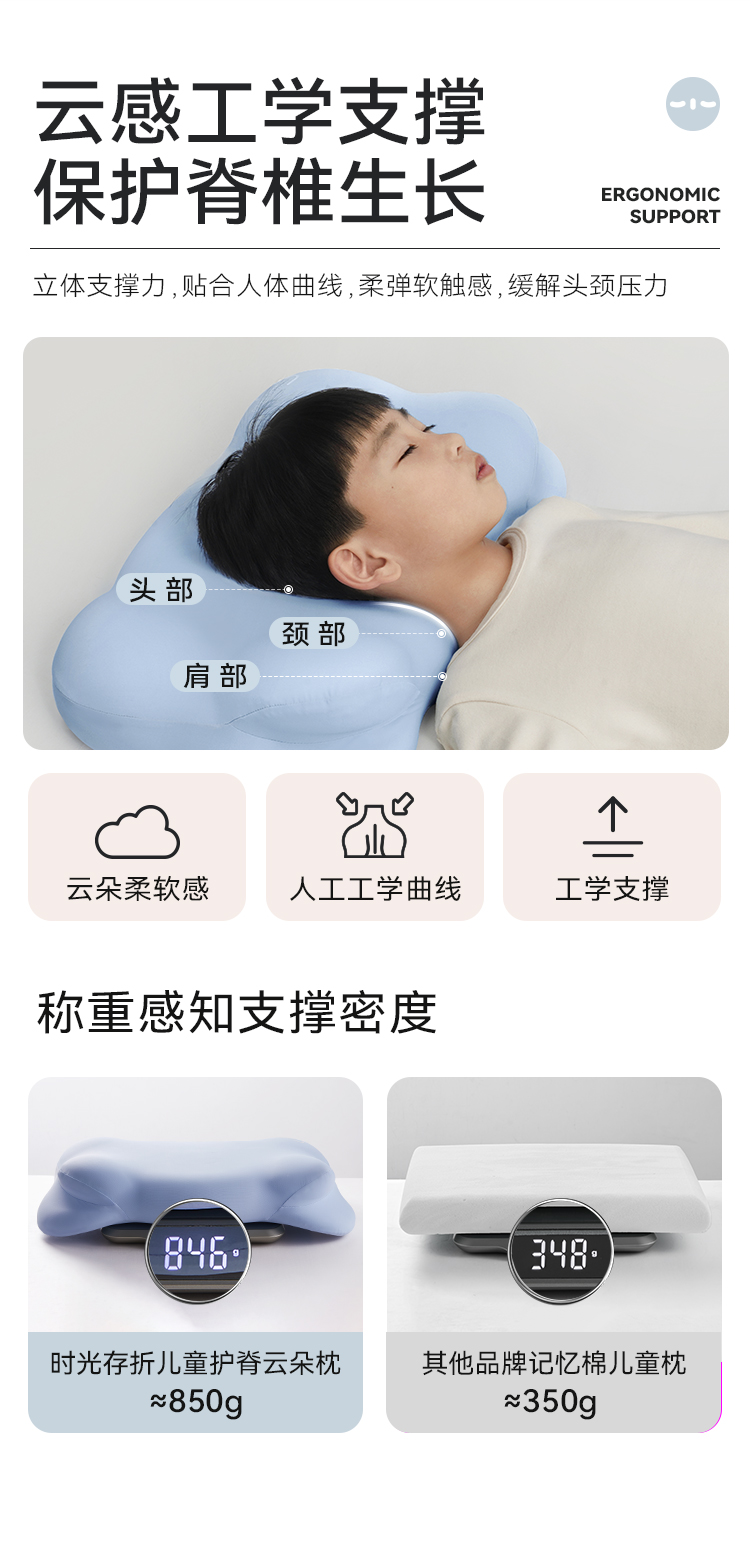 【不接平台单】时光存折儿童枕头云朵枕头护脊透气以上宝宝ZK1