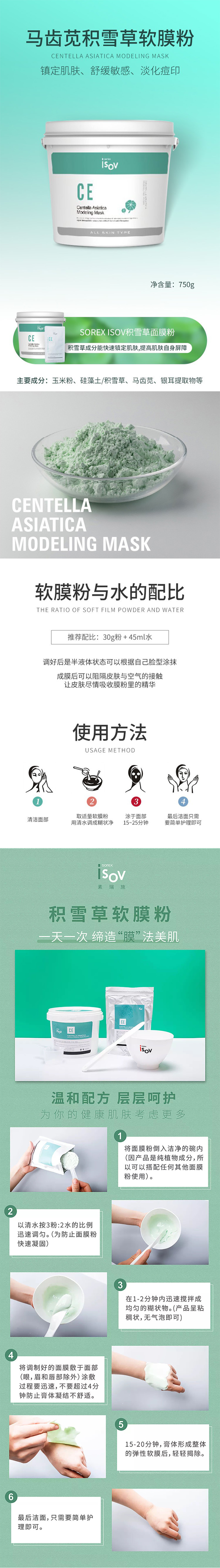 韩国 ISOV积雪草软膜粉750g 平衡补水 修护暗沉