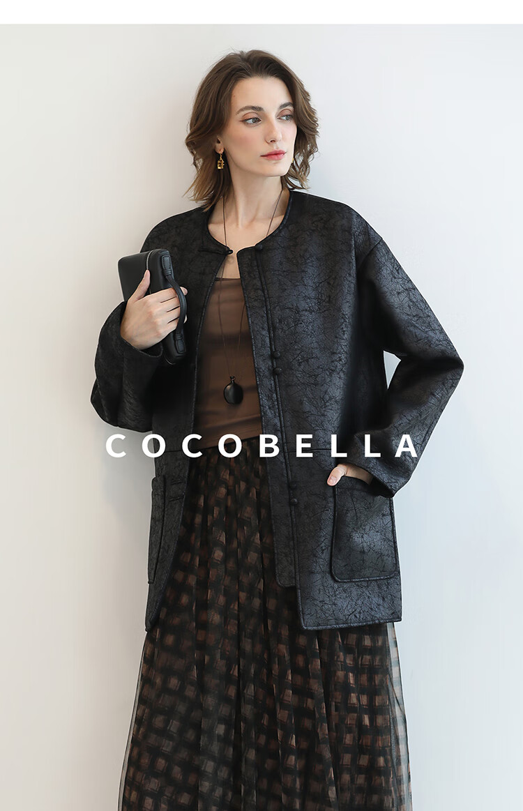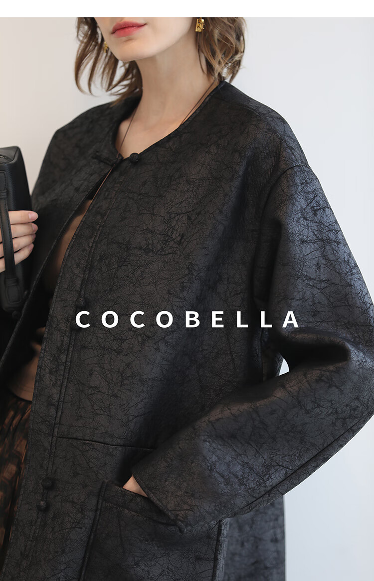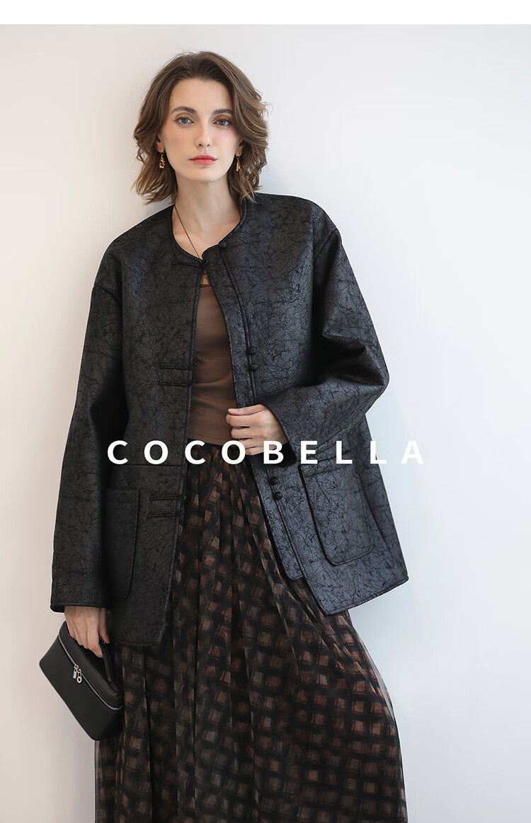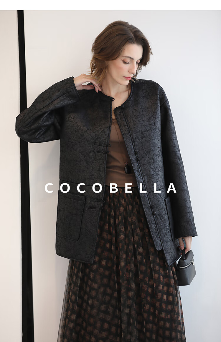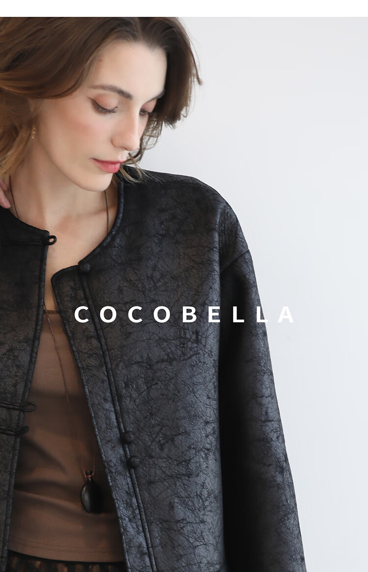 COCOBELLA轻奢爆裂纹PU皮衣外套女25秋新款休闲质感夹克PU3196-2
