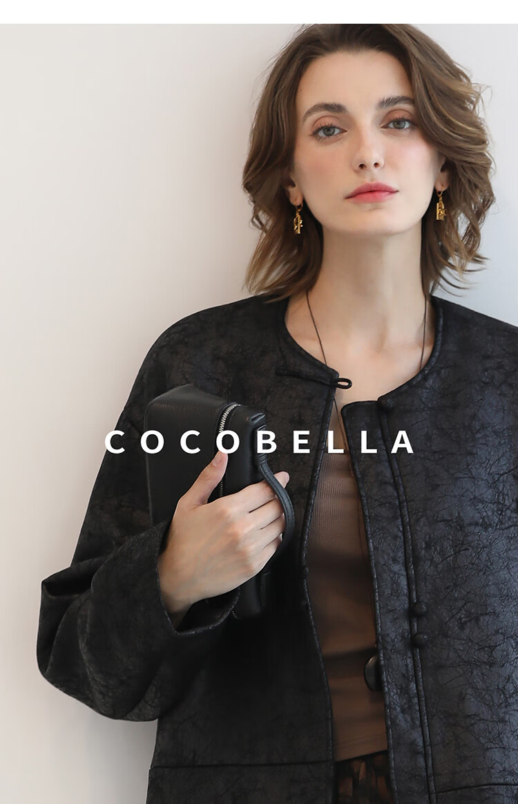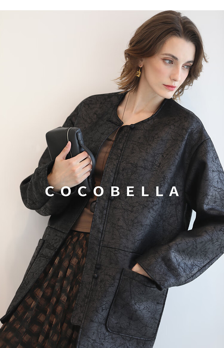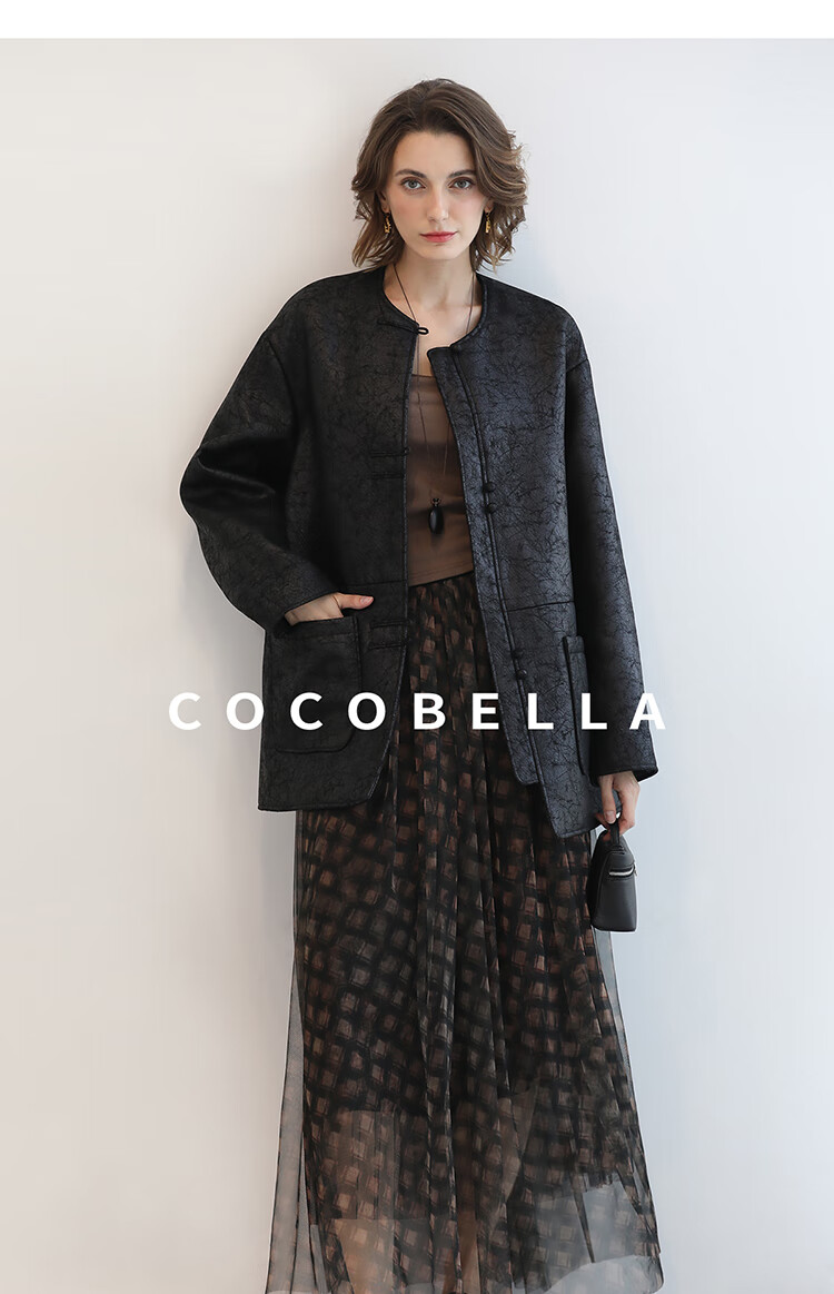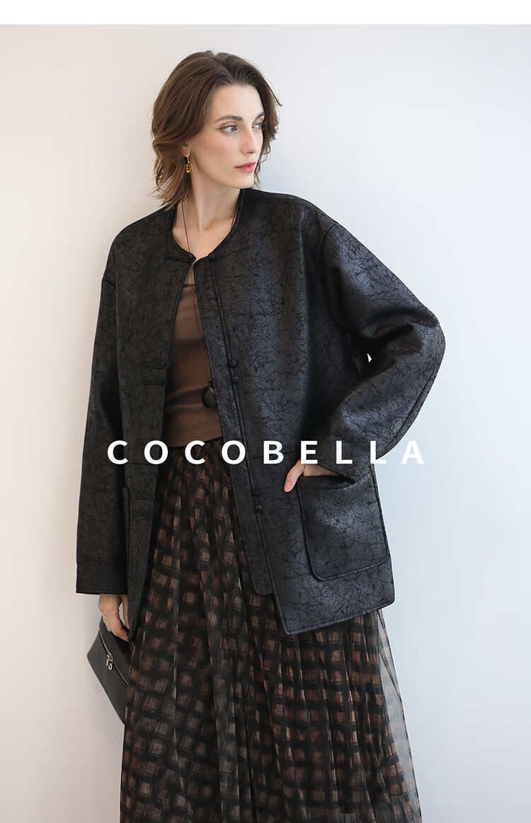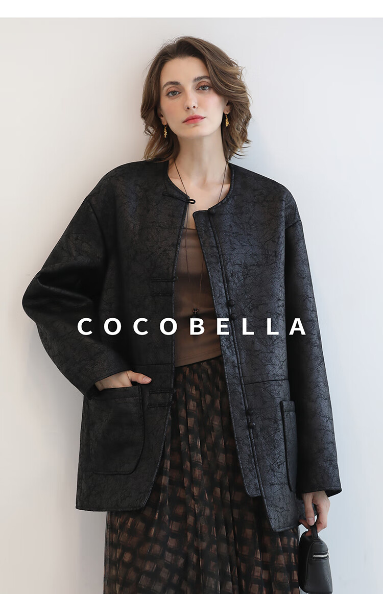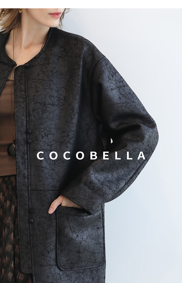 COCOBELLA轻奢爆裂纹PU皮衣外套女25秋新款休闲质感夹克PU3196-2