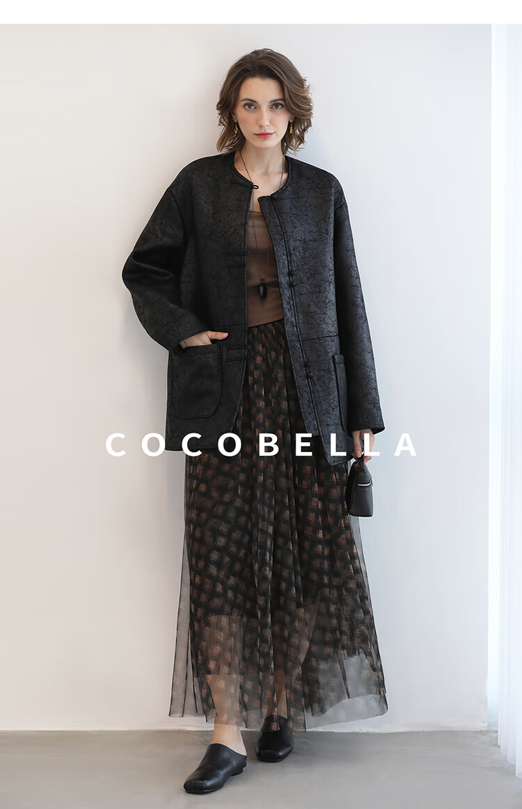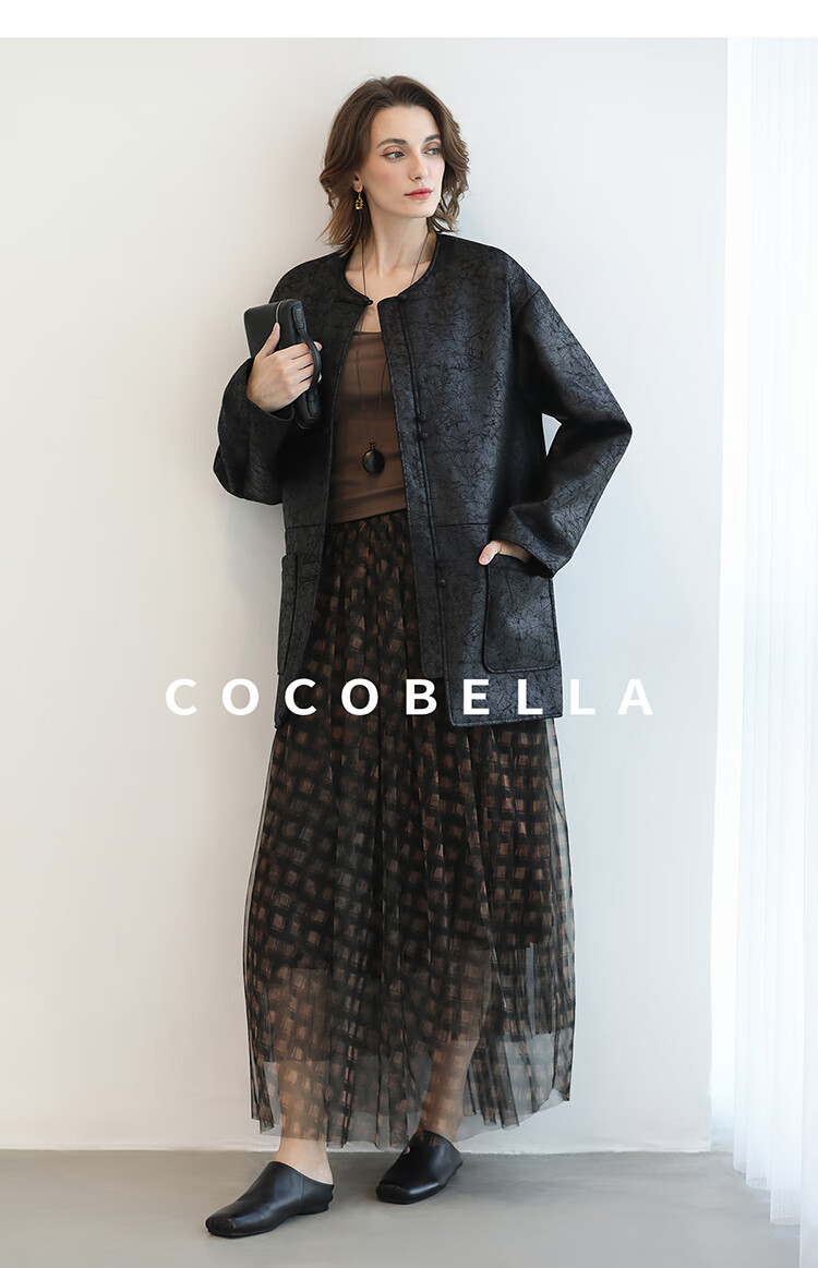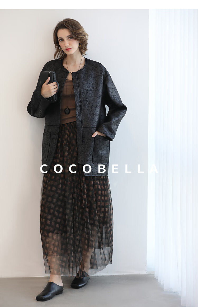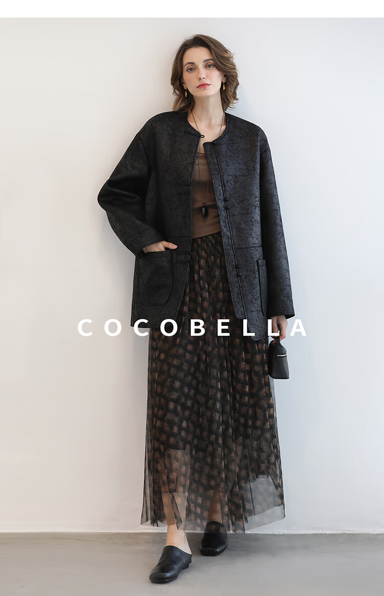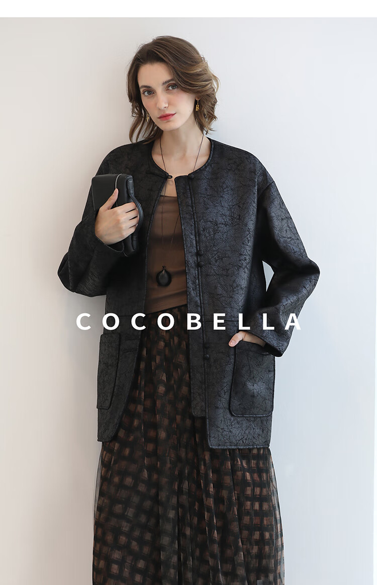 COCOBELLA轻奢爆裂纹PU皮衣外套女25秋新款休闲质感夹克PU3196-2