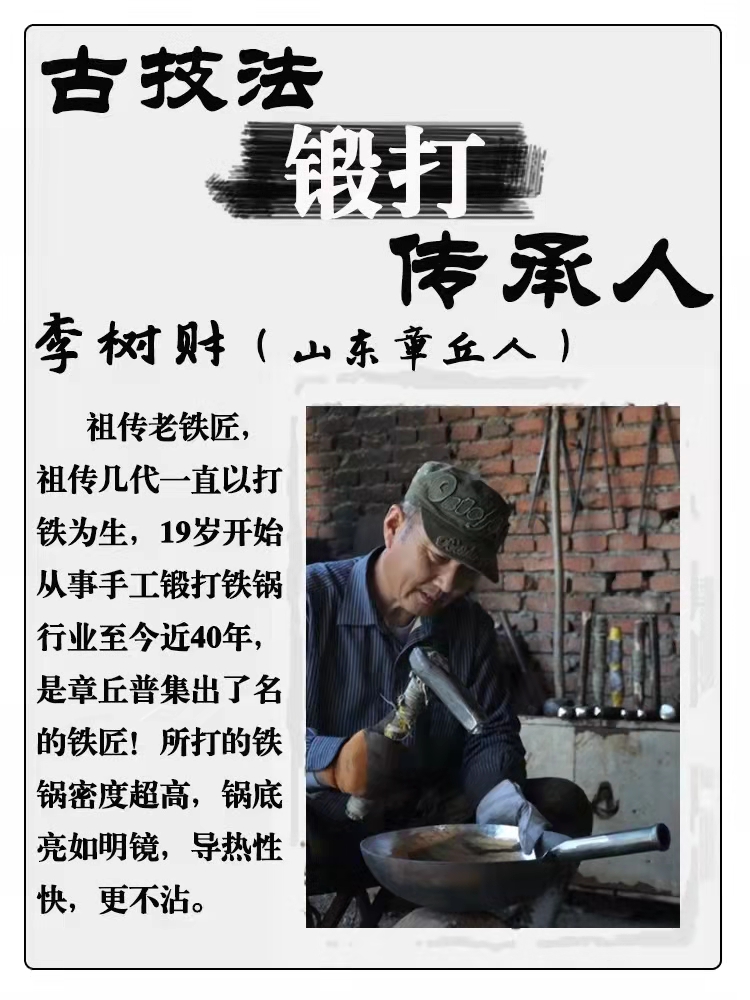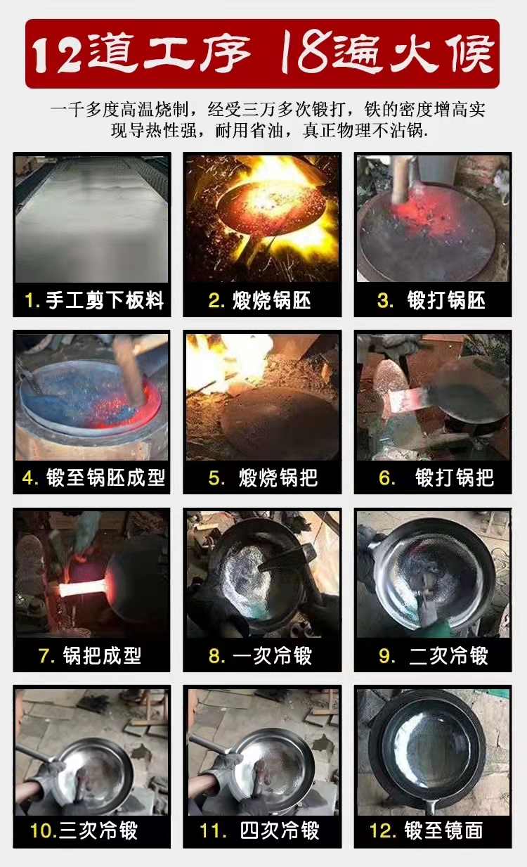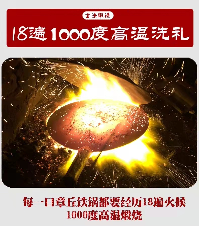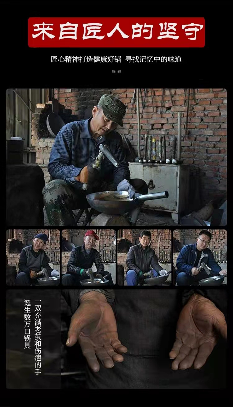 【正宗章丘铁锅-平底煎锅】手工锻打 无涂层 无烟 三种尺寸可加锅盖