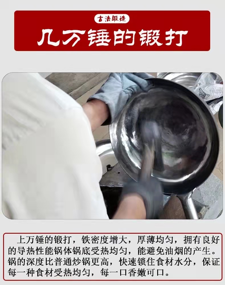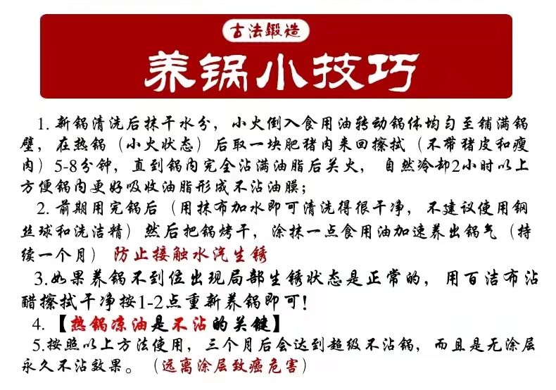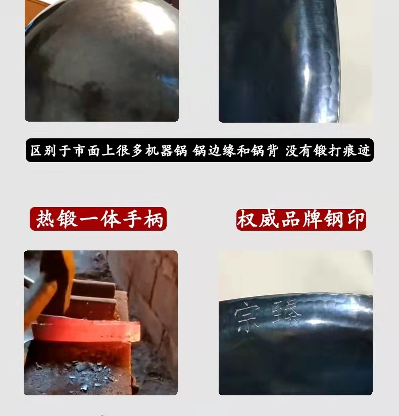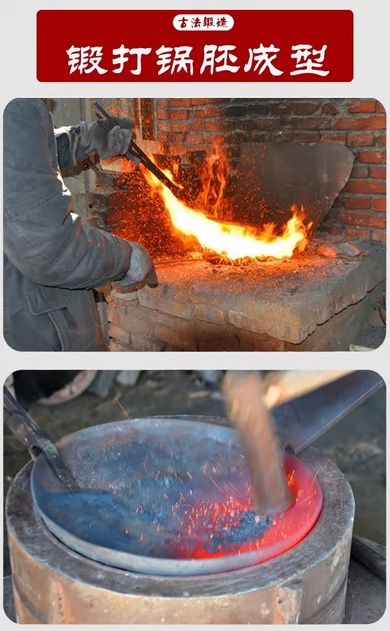 【正宗章丘铁锅-平底煎锅】手工锻打 无涂层 无烟 三种尺寸可加锅盖