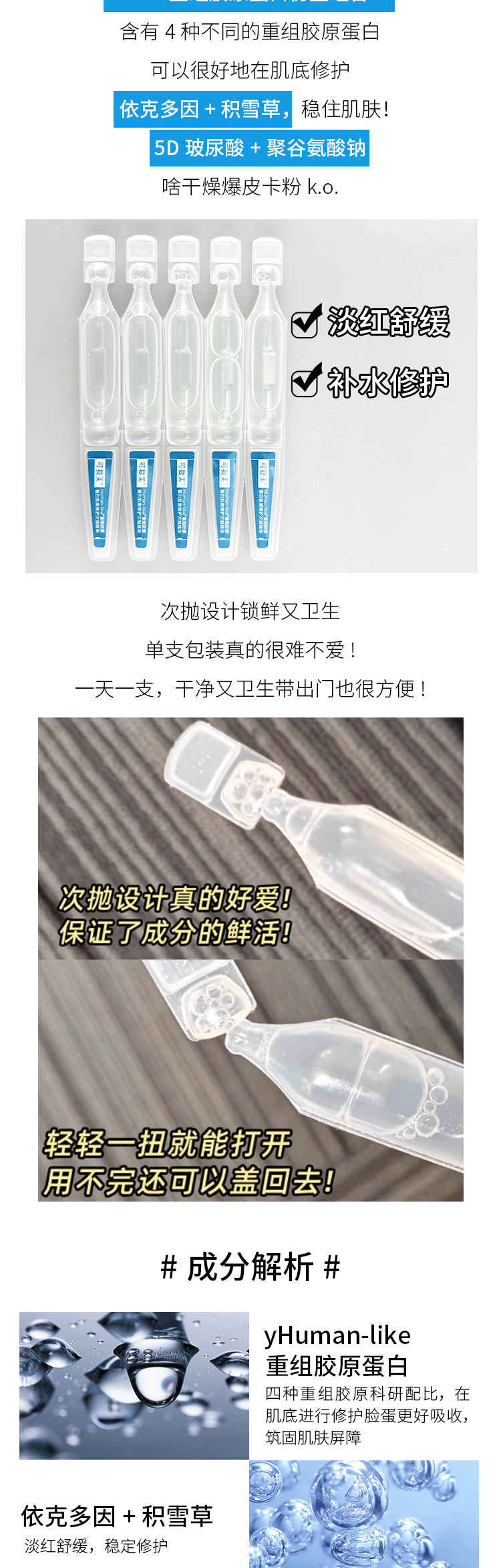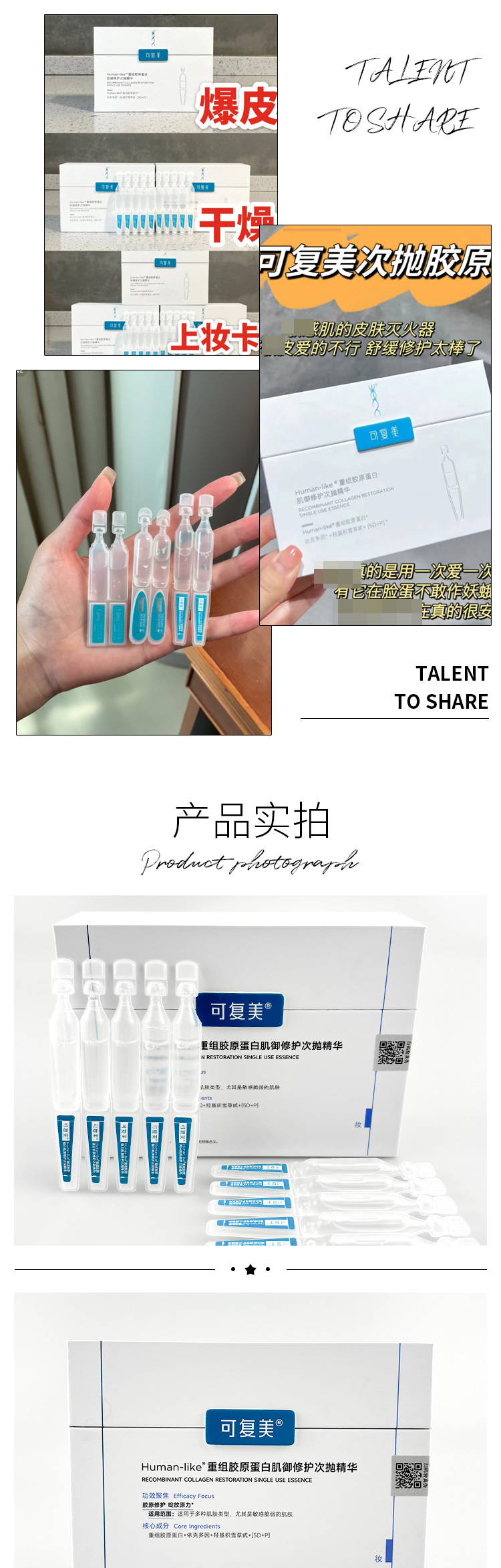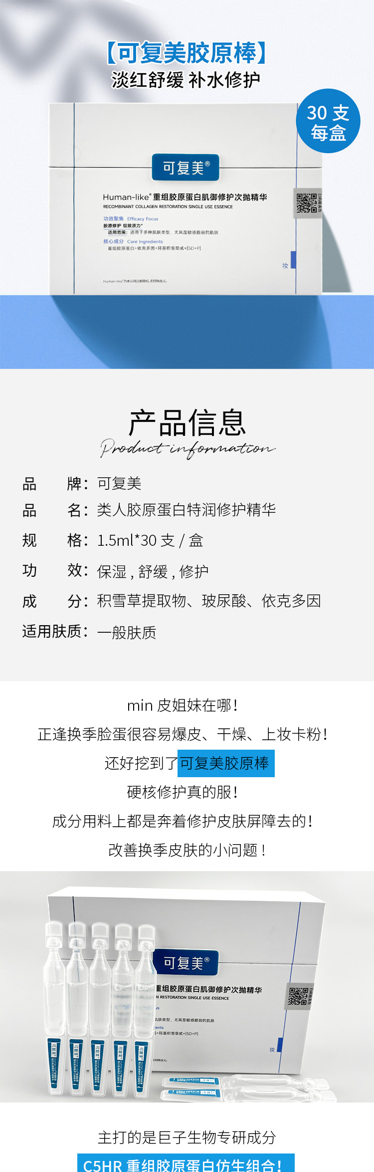 可复美 重组胶原蛋白肌御修护次抛精华30支(胶原大次抛)防伪可查