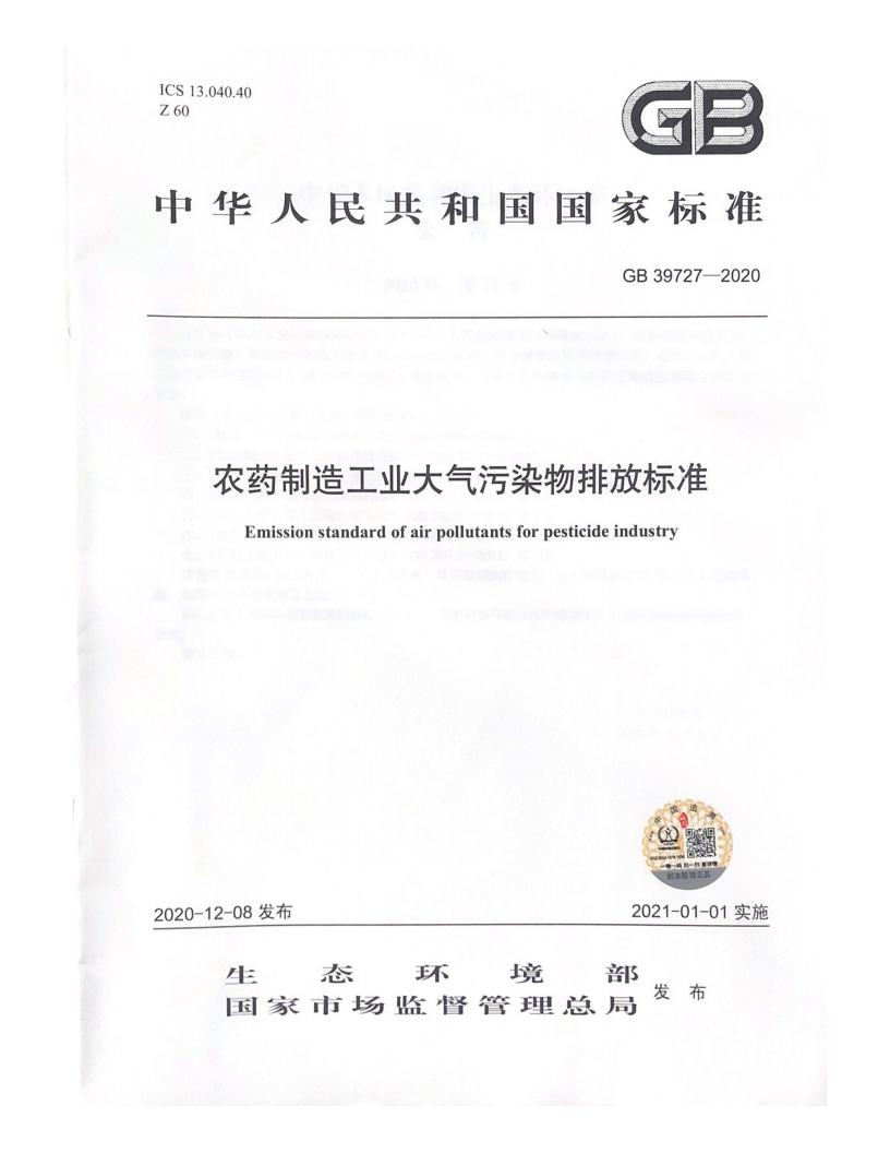 GB 39727—2020 农药制造工业大气污染物排放标准