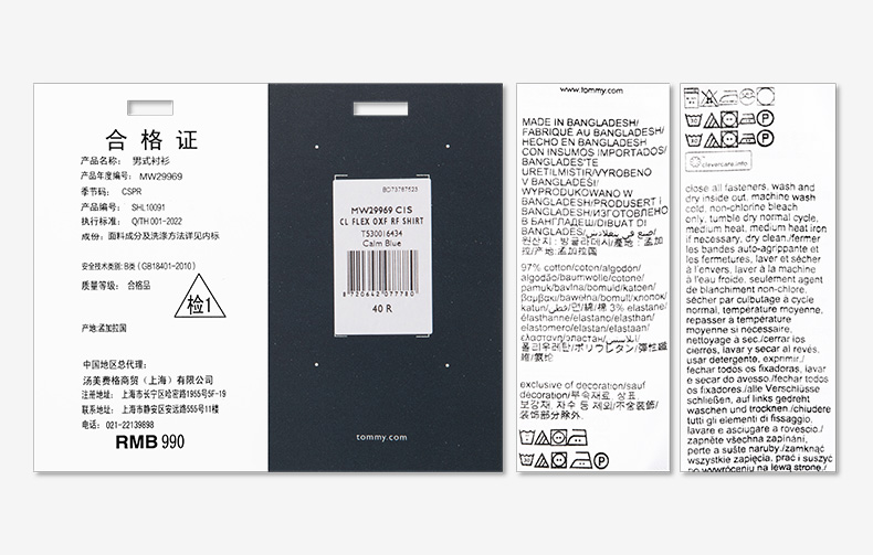 TOMMY 长袖衬衫男 MW29969-0GY .