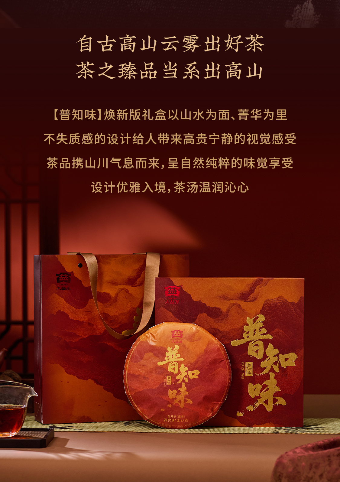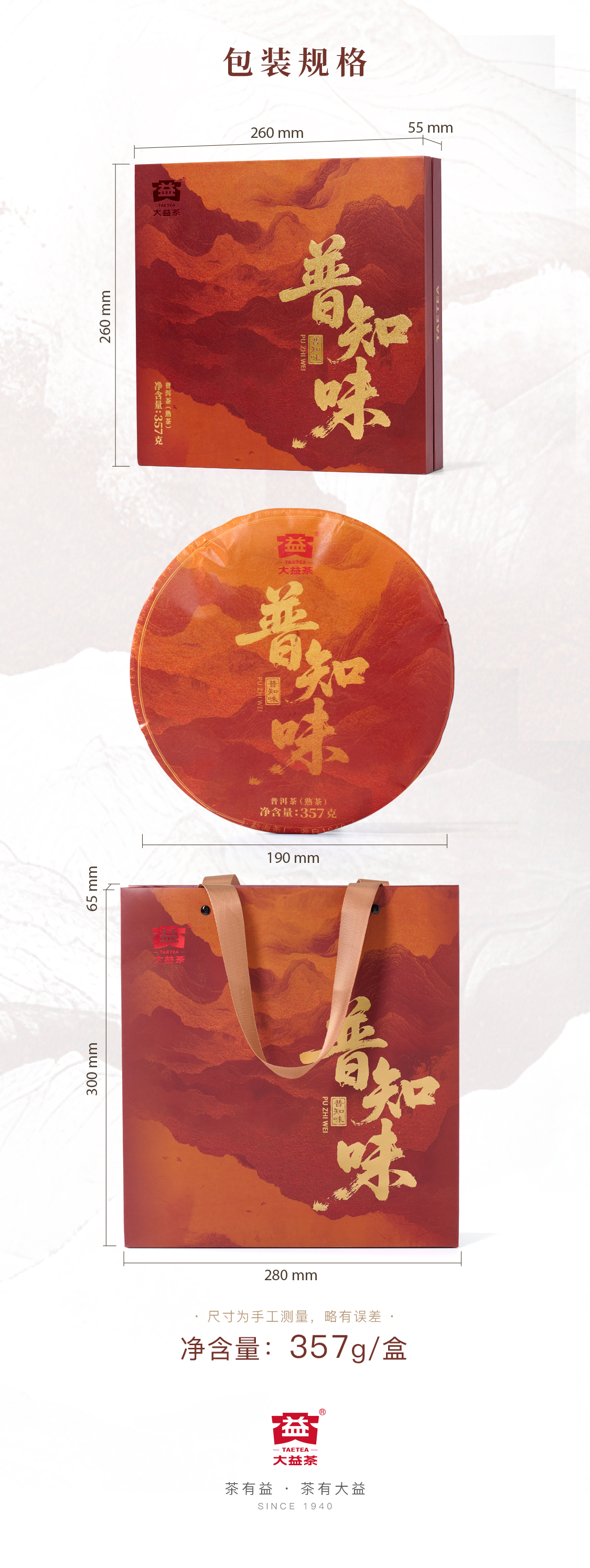 大益普洱茶 普知味礼盒357g (勐海礼盒装)熟茶