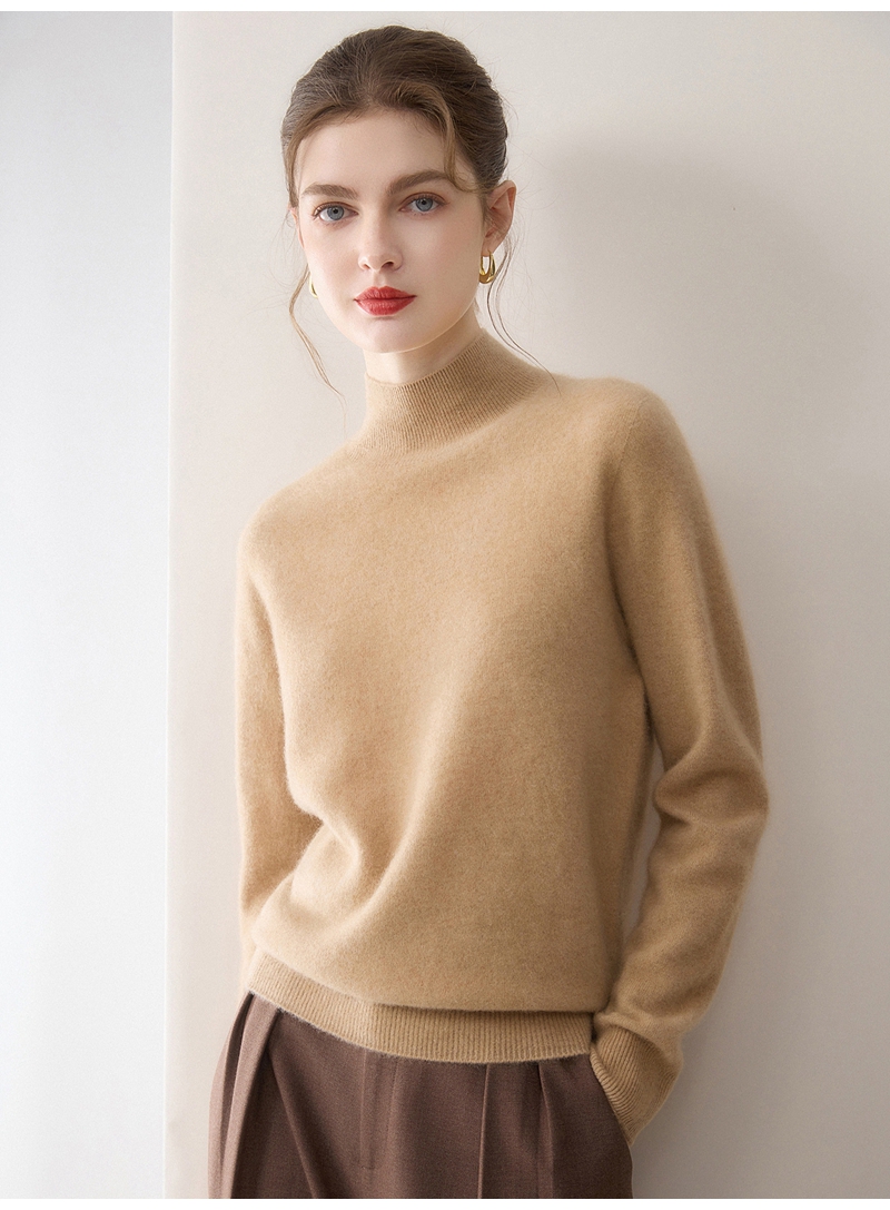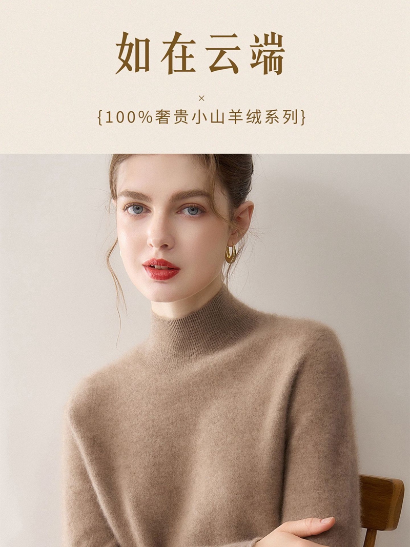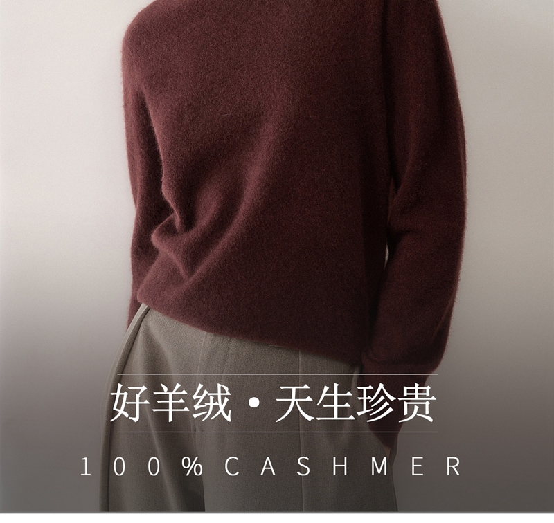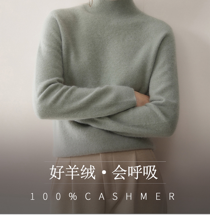 100%羊绒纯山羊绒加厚半高领长袖套头毛衣