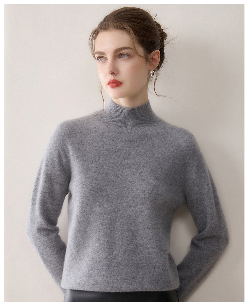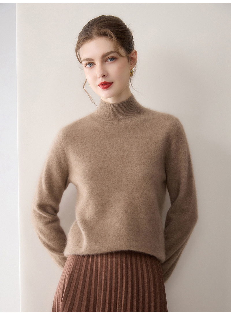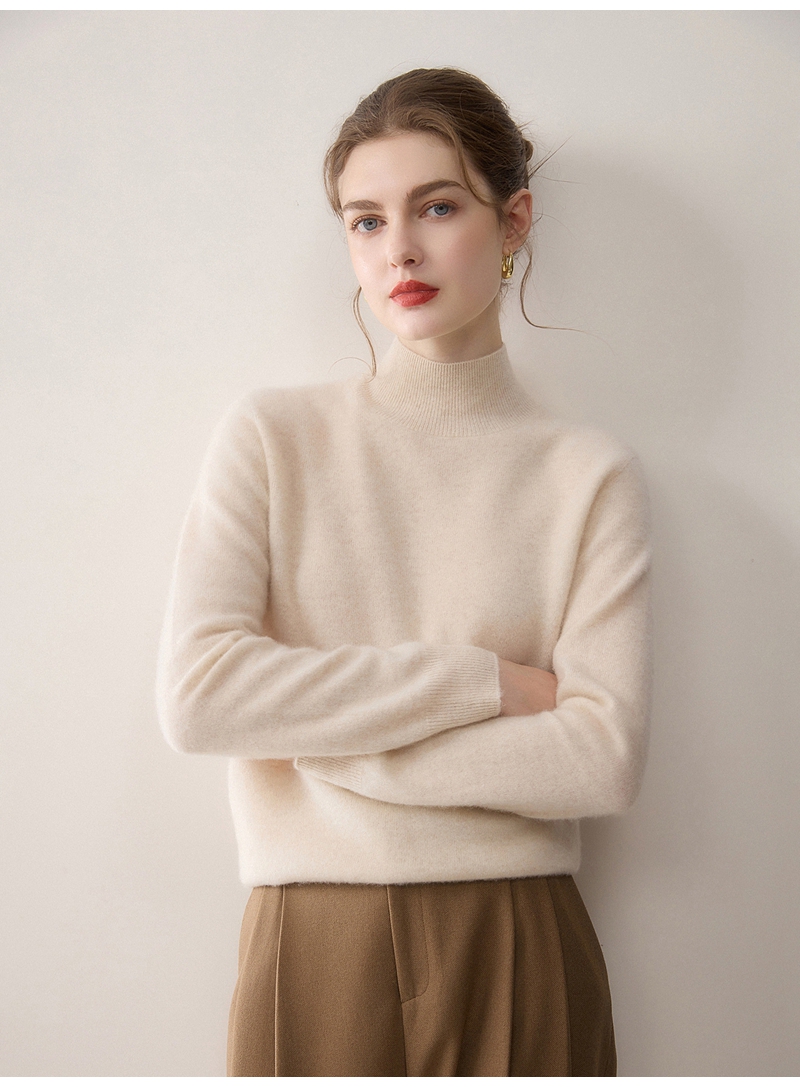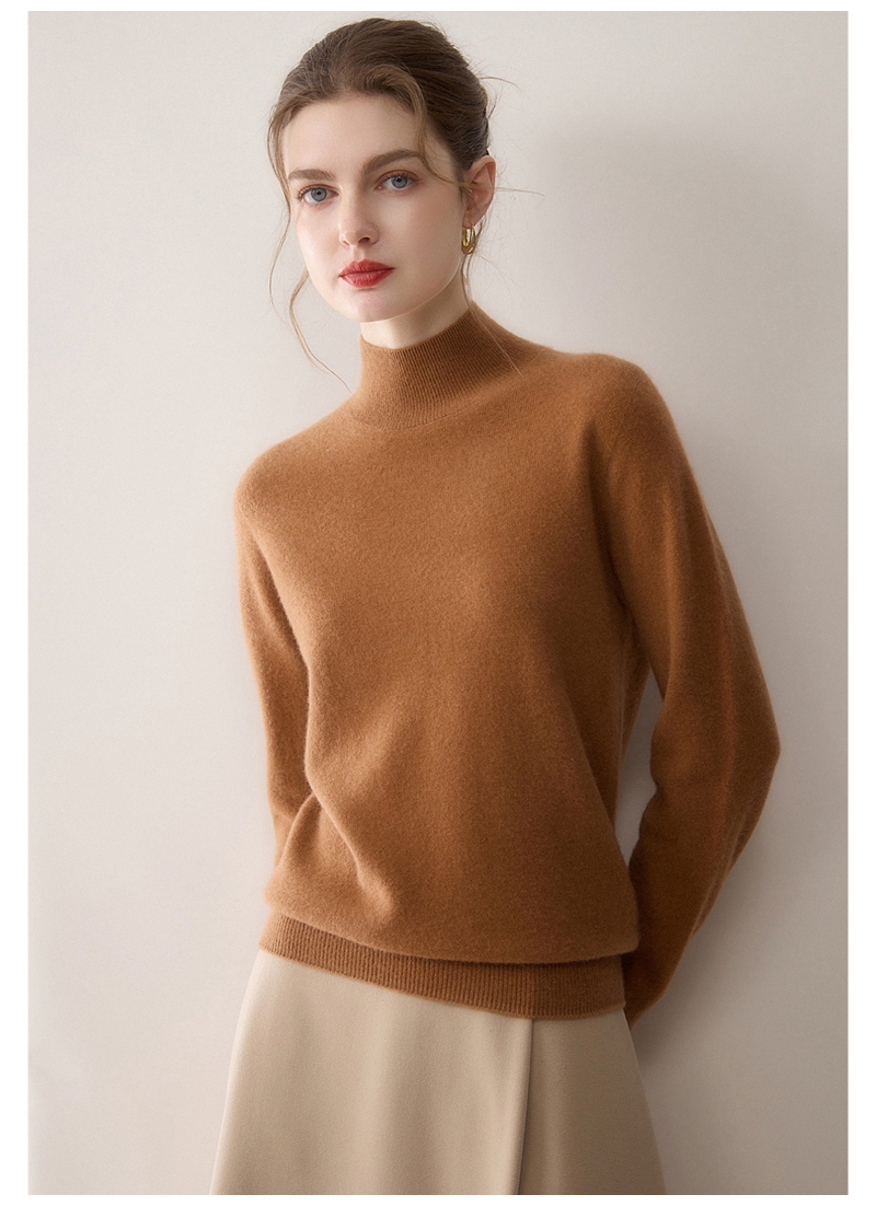 100%羊绒纯山羊绒加厚半高领长袖套头毛衣