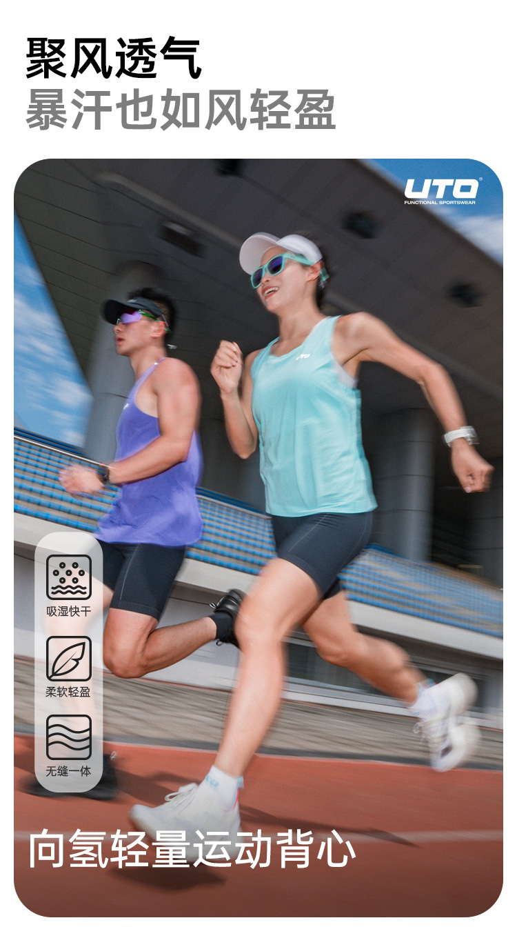 UTO/悠途向氢轻量运动背心男女款夏季无袖圆领马拉松跑步速干背心