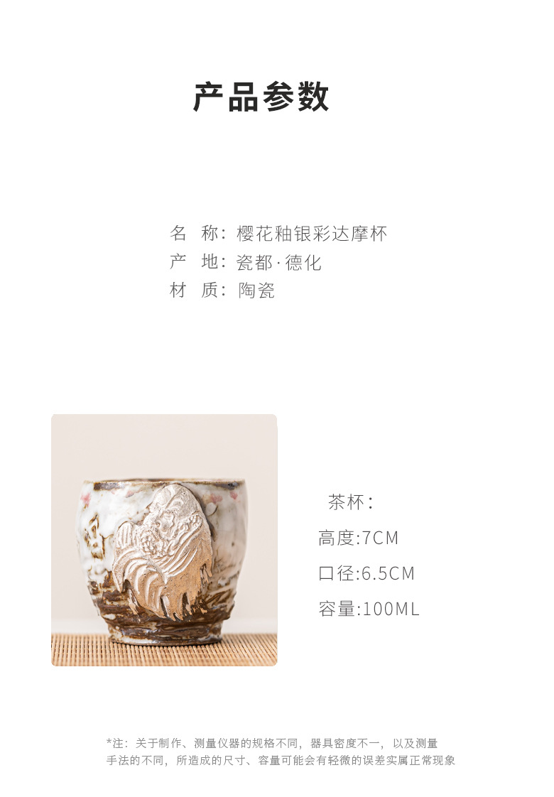 樱花釉银彩达摩杯手工日式志野烧闻香杯茶盏个人主人杯品茗杯单杯