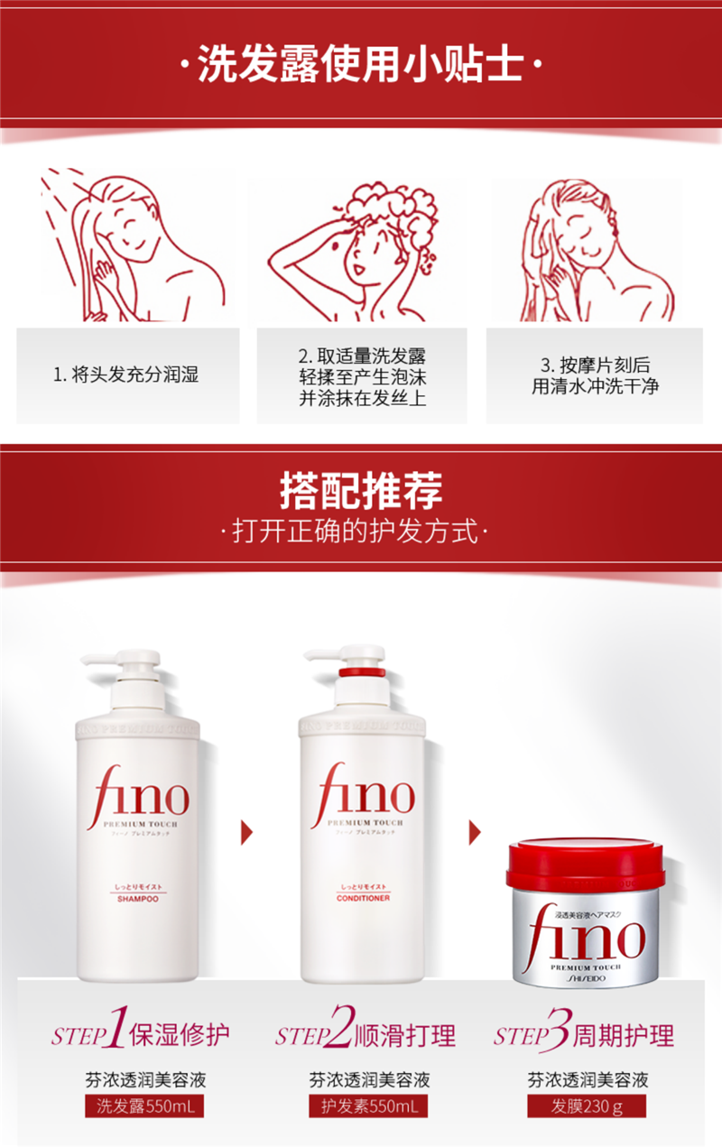 日本Fino芬浓洗发水护发素洗护套装滋润型染烫修护改善毛躁蓬松