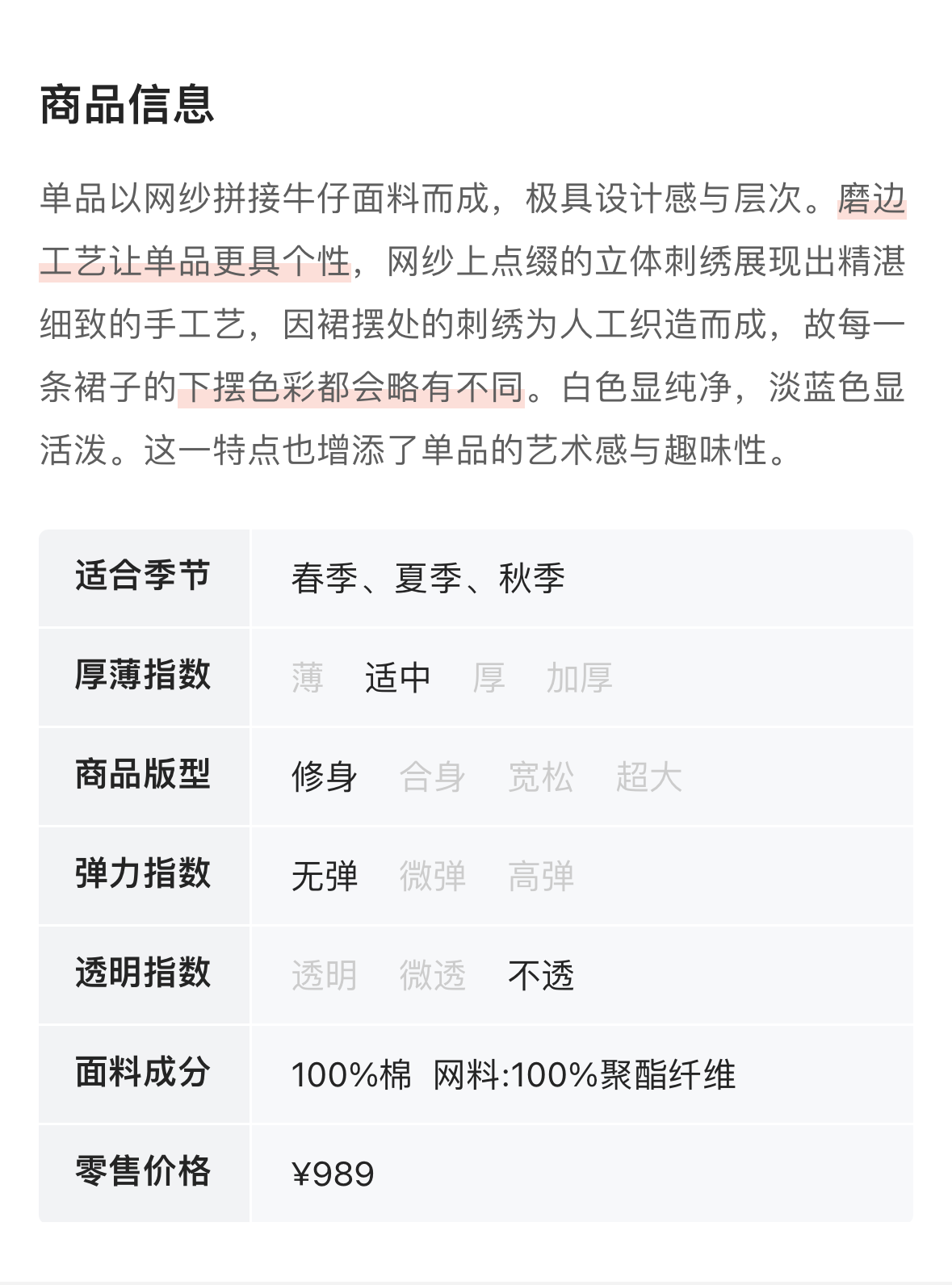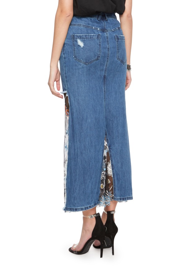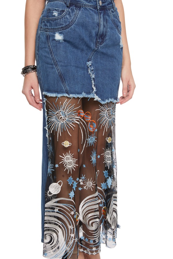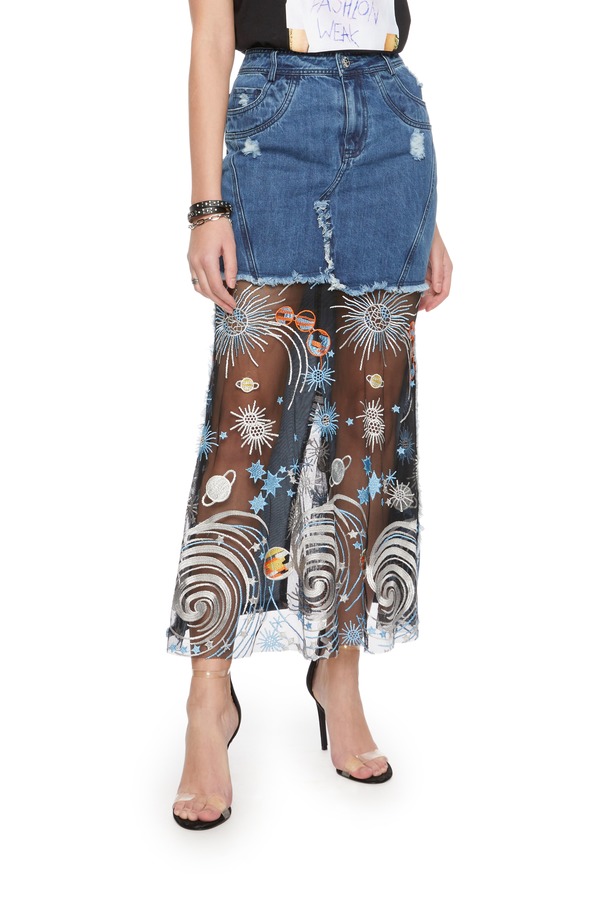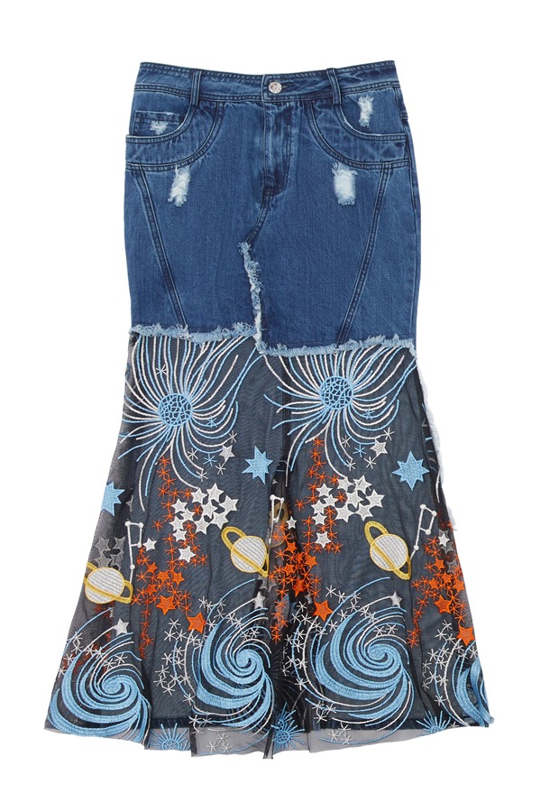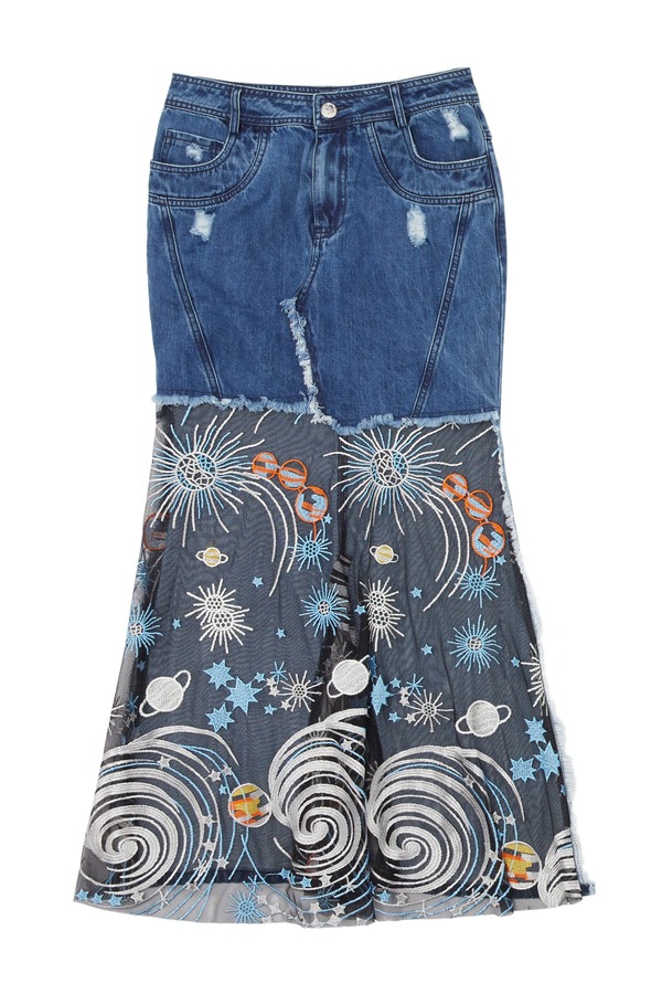 EVA OUXIU伊华欧秀 手工刺绣拼接牛仔半裙 6104