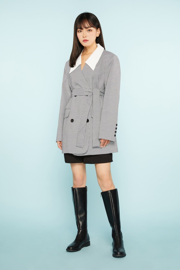 Kai & Kiera 率性利落黑白格纹西装外套 11239