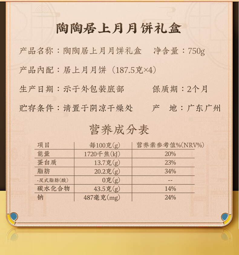 陶陶居陶陶居上月月饼礼盒750g 陶陶居上月月饼礼盒